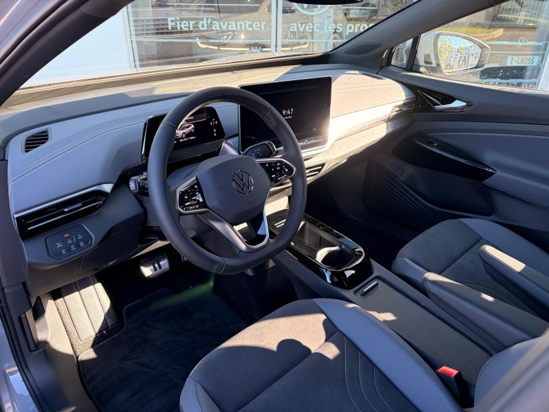 Activation automatique du signal de détresse en cas de freinage d'urgence / Assistant de changement de voie et sortie de stationnement "Side Assist" / Boîte de vitesse automatique / Ceintures de sécurité automatiques AV 3 points à enrouleur avec prétensionneurs et AR 3 points à enrouleur / Climatisation stationnaire: permet de réfrigérer, de ventiler ou de chauffer l'habitacle du véhicule à l'arrêt. Elle permet également de dégivrer le pare-brise, de le désembuer et de le débarrasser d'une fine couche de neige en hiver. La climatisation stationnaire est alimentée par la prise de courant ou par la batterie haute tension du véhicule / Eclairage à LED de la plaque d'immatriculation AR / Frein de stationnement électromécanique avec fonction d'immobilisation "Auto-Hold" / Front Assist - Système de surveillance périmétrique avec fonctions de freinage d'urgence en ville et détection des piétons. L'assistance au freinage d'urgence autonome (Front Assist) peut détecter des collisions frontales imminentes et avertir avant qu'elles ne surviennent. De plus, le système peut fournir au conducteur une assistance pendant le freinage et la manoeuvre d'évitement de l'obstacle, et freiner le véhicule de façon automatique / ID. Display de 5,3'': L'ID. Display est un combiné d'instruments numérique doté d'un afficheur couleur TFT à haute résolution. En plus du tachymètre numérique, il est possible d'afficher des informations supplémentaires provenant des systèmes d'aide à la conduite, par la sélection de divers profils d'information / Intervention de freinage automatique lors des manoeuvres: L'intervention de freinage automatique d'un système de stationnement est utilisée pour réduire le risque de collision si un obstacle est détecté pendant le processus de stationnement / Jantes en alliage 19" "Hamar" bi-colore argent/noir (8J x 19), pneumatiques 235/55 R19 à l'AV et 255/50 R19 à l'AR, avec écrous antivol / Mode "Battery Care" Préserver la batterie et accroitre sa longévité. Si le mode "Battery Care" est activé, la limite supérieure de charge est fixée à 80%. Le mode "Battery Care" paramètre le niveau de recharge cible automatique réglé sur 80% / Park Pilot: Système d'aide au stationnement AV/AR avec signaux sonores et visualisation de la distance des obstacles sur l'écran / Rétroviseur intérieur à réglage jour/nuit automatique / Sign Assist - Système de détection de la signalisation routière Le système de détection de la signalisation routière détecte les panneaux de signalisation standard à l'aide d'une caméra située dans le pied du rétroviseur intérieur et vous informe des limitations de vitesse, interdictions de dépasser et panneaux de danger identifiés / Système d'aide à l'éco-conduite - Eco Assistance / Système de Freinage anti-multi collision Ce dispositif freine automatiquement le véhicule après un premier choc afin de limiter le risque de multi collision / Sélecteur de vitesse situéà droite derrière le volant avec frein de stationnement électronique Il dispose d'une marche AV (D/B), du neutre (N) et d'une marche AR (R). En position (D), la récupération d'énergie au freinage est en mode normal. En position (B), le système d'aide à l'éco-conduite est activé et la récupération d'énergie est plus élevée / 7 Airbags - Airbags frontaux AV conducteur et passager (Airbag passager désactivable par clé) - Airbags latéraux AV, airbags interactif à l'AV et avec airbags de tête AV/AR - Airbag central situé sur le côté droit du siège conducteur, permet la protection des chocs entre les occupants des sièges AV en cas de collision latérale ou de retournement / ACC : Le Régulateur de vitesse adaptatif et prédictif avec limiteur de vitesse (ACC) adapte la vitesse en fonction des limitations de vitesse detectées et du parcours / Accoudoirs pour les 2 sièges AV / App-Connect sans fil (en fonction du téléphone compatible) pour Apple CarPlay, Android Auto et Mirror Link (avec fil) / Avertissement de distance avec le véhicule précédent / Avertisseur sonore 1 ton / Avertisseur sonore et lumineux pour ceintures non attachées AV/AR / Banquette AR 3 places rabattable (2/3 - 1/3) avec accoudoir central et trappe à skis / Capacité de batterie nette - 77 kWh / Capacité de puissance maximale du chargeur embarqué pour prise Type 2 : 11 kW AC / Carrosserie unie et rampes de pavillon noires / Clignotants confort (1 impulsion = 3 clignotements) / Coffre électrique avec fonction Easy Open & Close / Commande vocale intuitive -"Bonjour ID." - Certaines fonctions peuvent être exécutées grâce à la commande vocale / Console centrale avec volet occultant / Correcteur électronique de trajectoire ESP, Amplificateur de freinage d'urgence AFU, Servofrein électromécanique eBKV, Freinage mixte BKU, système d'antiblocage des roues ABS, blocage électronique de différentiel EDS, répartiteur électronique de freinage EBV, antipatinage électronique ASR, régulateur électronique de couple MSR, assistance au contrebraquage, Programme électronique de stabilisation ESC,Système agissant comme un différentiel autobloquant électronique permettant une meilleure motricité en courbe grâce à une répartition optimale de la puissance et du couple sur les roues AR XDS / Câble de recharge Mode 3 - Type 2 pour borne de recharge (32A) / Direction électromécanique à assistance variable en fonction de la vitesse / Dispositif électronique de démarrage sans clé "Keyless-Go": Démarrage possible avec une simple pression sur la pédale de frein / Détection de fatigue Système de détection de fatigue du conducteur qui analyse le comportement du conducteur et recommande un temps de repos par l'apparition d'un message visuel et sonore / E-sound - son spécifique ID: L'e-Sound est un bruit électronique de moteur signalant l'approche de véhicules électriques aux autres usagers de la route. Plus le véhicule roule vite