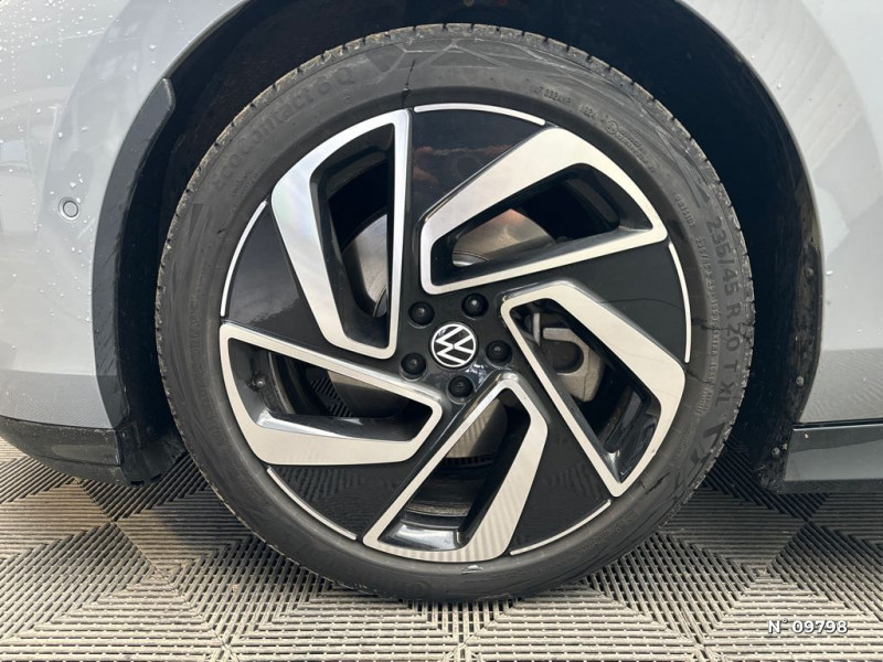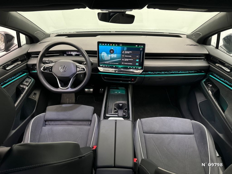 Alarme antivol - Protection volumétrique et anti-soulévement / Allumage automatique des feux, capteurs de pluie avec essuie-glace automatique / App-Connect sans fil (en fonction du téléphone compatible) pour Apple CarPlay, Android Auto et Mirror Link (avec fil) / Appuie-tête à sécurité optimisée AV / Avertisseur sonore et lumineux pour ceintures non attachées AV et AR / Avertisseur sonore 1 ton / Réglages de la charge via le système d'infodivertissement ou l'application "Volkswagen" / Régulation automatique des feux de route "Light Assist" / Rétroviseur intérieur à réglage jour/nuit automatique / Rétroviseurs extérieurs réglables, rabattables et dégivrants électriquement avec abaissement du rétroviseur passager / Sélecteur de vitesse situéà droite derrière le volant avec frein de stationnement électronique Il dispose d'une marche AV (D/B), du neutre (N) et d'une marche AR (R). En position (D), la récupération d'énergie au freinage est en mode normal. En position (B), le système d'aide à l'éco-conduite est activé et la récupération d'énergie est plus élevée / Sélection du profil de conduite / Side Assist (assistance changement de voie et de sortie de stationnement) / Sign Assist - Système de détection de la signalisation routière Le système de détection de la signalisation routière détecte les panneaux de signalisation standard à l'aide d'une caméra située dans le pied du rétroviseur intérieur et vous informe des limitations de vitesse, interdictions de dépasser et panneaux de danger identifiés / Système d'aide à l'éco-conduite - Eco Assistance / Système d'appel d'urgence - eCall Appel d'urgence manuel ou automatique / Système de démarrage sans clé Keyless-Go Démarrage possible avec une simple pression sur la pédale de frein / Système de Freinage anti-multi collision Ce dispositif freine automatiquement le véhicule après un premier choc afin de limiter le risque de multicollision / Système de récupération d'énergie au freinage et à la décélération / Système de son 8+1 HP / Système de verrouillage et de démarrage sans clé "Keyless Access Advanced" / Tapis de sol AV/AR / Triangle de sécurité / Turn Assist : Freinage d'urgence d'intersection - Le freinage d'urgence au braquage peut empêcher votre véhicule d'entrer en collision avec un véhicule arrivant en sens inverse lorsque vous changez de direction / Verrouillage centralisé avec télécommande à fréquence radio / Vitres athermiques teintées vertes / 2 ports USB-C à l'AV (data et recharge) et 2 ports USB-C à l'AR (recharge uniquement) / Banquette AR 2/3 1/3 avec accoudoir central et trappe à skis et 2 porte-gobelets / Boitiers des rétroviseurs peints en noir / Car2X La fonction Car2X utilise les informations des autres véhicules présents dans un périmètre pouvant s'étendre jusqu'à 800 mètres, ainsi que les signaux des infrastructures de transport pour avertir le conducteur et transmettre ces avertissements à d'autres véhicules équipés de la fonction Car2X / Ceintures de sécurité automatiques 3 points à enrouleur avec prétensionneurs pour les sièges AV et les sièges extérieurs AR / Climatisation stationnaire: permet de réfrigérer, de ventiler ou de chauffer l'habitacle du véhicule à l'arrêt. Elle permet également de dégivrer le pare-brise, de le désembuer et de le débarrasser d'une fine couche de neige en hiver. La climatisation stationnaire est alimentée par la prise de courant ou par la batterie haute tension du véhicule / Commande vocale intuitive -"Bonjour ID." - Certaines fonctions peuvent être exécutées grâce à la commande vocale / Détection de fatigue Système de détection de fatigue du conducteur qui analyse le comportement du conducteur et recommande un temps de repos par l'apparition d'un message visuel et sonore / Direction électromécanique à assistance variable en fonction de la vitesse / Eclairage à LED de la plaque d'immatriculation AR / Ecran central tactile de 15'' personnalisable / E-sound - son spécifique ID: L'e-Sound est un bruit électronique de moteur signalant l'approche de véhicules électriques aux autres usagers de la route. Plus le véhicule roule vite, plus le volume sonore de l'e-Sound diminue lentement / Filet à bagages / Frein de stationnement électromécanique avec fonction d'immobilisation "Auto-Hold" / Freins à disques AV et freins à tambours AR / Front Assist - Système de surveillance périmétrique avec fonctions de freinage d'urgence en ville et détection des piétons / Gestion des paramètres de confidentialité liés à la eSIM et à VW Connect / ID. Display de : L'ID. Display est un combiné d'instruments numérique doté d'un afficheur couleur TFT à haute résolution. En plus du tachymètre numérique, il est possible d'afficher des informations supplémentaires provenant des systèmes d'aide à la conduite, par la sélection de divers profils d'information / Indicateur de température extérieure avec avertisseur de gel / Jantes en alliage 19" Hudson (8J x 19 AV, 8,5J x 19 AR), Pneumatiques AirStop 235/50 R19 AV, 255/45 R19 AR avec écrous antivol / Lane Assist - Assistant au maintien dans la voie avec correction de trajectoire / Oeillets d'arrimage ISOFIX:dispositif pour fixation de 2 sièges-enfants sur la banquette AR et 1 siège enfant sur le siège passager AV / Pack Assistance Assistant de conduite semi-autonome 'Travel Assist 2.5' avec changement de voie assistée, assistant de maintien au centre de la voie 'Lane Assist' et assistance en cas d'incapacité du conducteur à réagir 'Emergency Assist,' Caméra 360° 'Area View' et caméra de recul 'Rear View, 'Intelligent Park Assist Pro' avec la fonction mémoire et la fonction remote (commande à distance) / Pack Confort Système de Navigation & Infotainment Discover Pro avec "Services de streaming et radio via Internet, Climatiseur 3-zones Smart Air Vents avec filtre à charbon actif et élément de comm