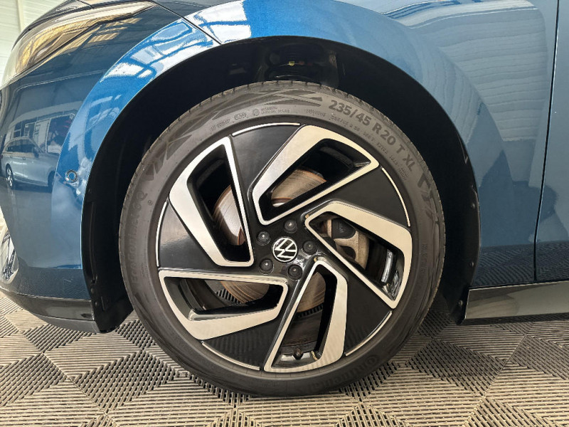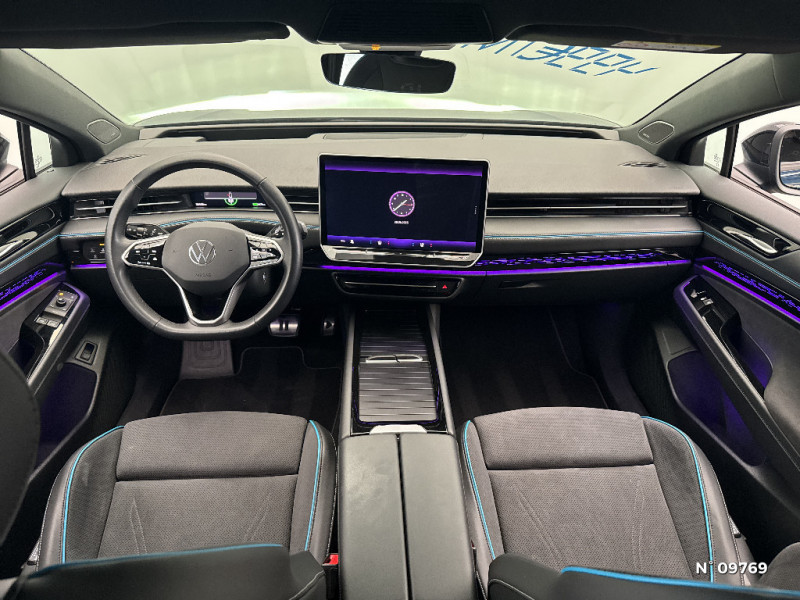 Rétroviseurs extérieurs réglables, rabattables et dégivrants électriquement avec abaissement du rétroviseur passager / Sélecteur de vitesse situéà droite derrière le volant avec frein de stationnement électronique Il dispose d'une marche AV (D/B), du neutre (N) et d'une marche AR (R). En position (D), la récupération d'énergie au freinage est en mode normal. En position (B), le système d'aide à l'éco-conduite est activé et la récupération d'énergie est plus élevée / Sélection du profil de conduite / Sign Assist - Système de détection de la signalisation routière Le système de détection de la signalisation routière détecte les panneaux de signalisation standard à l'aide d'une caméra située dans le pied du rétroviseur intérieur et vous informe des limitations de vitesse, interdictions de dépasser et panneaux de danger identifiés / Système d'aide à l'éco-conduite - Eco Assistance / Système d'appel d'urgence - eCall Appel d'urgence manuel ou automatique / Système de démarrage sans clé Keyless-Go Démarrage possible avec une simple pression sur la pédale de frein / Système de Freinage anti-multi collision Ce dispositif freine automatiquement le véhicule après un premier choc afin de limiter le risque de multi collision / Système de Navigation & Infotainment "Discover Pro" avec "Services de streaming et radio via Internet" et écran tactile 15'' / Système de récupération d'énergie au freinage et à la décélération / Système de son 8+1 HP / Système de verrouillage et de démarrage sans clé "Keyless Access Advanced" / Régulation des feux de route "Light Assist" / Rétroviseur intérieur à réglage jour/nuit automatique / Système d'ouverture et de fermeture sans cléà discance Keyless Access Advanced / Tapis de sol AV/AR / Travel Assist : Assistant de conduite semi-autonome avec assistant en cas d'incapacité du conducteur à réagir (Emergency assist) / Triangle de sécurité / Turn Assist : Freinage d'urgence d'intersection - Le freinage d'urgence au braquage peut empêcher votre véhicule d'entrer en collision avec un véhicule arrivant en sens inverse lorsque vous changez de direction / Affichage tête haute à réalité augmentée / Airbags frontaux AV (Airbag passager désactivable par clé) / Airbags rideaux AV et AR, airbags latéraux AV et airbag central / Alarme antivol - Protection volumétrique et anti-soulévement / Allumage automatique des feux, capteurs de pluie avec essuie-glace automatique / App-Connect sans fil (en fonction du téléphone compatible) pour Apple CarPlay, Android Auto et Mirror Link (avec fil). / Appuie-tête à sécurité optimisée AV / Assistant au changement de voie et sortie de stationnement Side Assist / ACC: Régulateur de vitesse adaptatif avec limiteur de vitesse adapte la vitesse en fonction des limitations de vitesse détectées / Activation automatique du signal de détresse en cas de freinage d'urgence / Assistant de conduite semi autonome "Travel Assist 2.5" avec changement de voie assistée avec Assistant de maintien au centre de la voie Lane Assist et Assistance en cas d'incapacité du conducteur à réagir "Emergency Assist" / Avertisseur sonore et lumineux pour ceintures non attachées AV et AR / Avertisseur sonore 1 ton / Banquette AR 2/3-1/3 avec accoudoir central et trappe à skis et 2 porte-gobelets / Buses à dégivrage automatique à l'AV et indicateur de niveau de lave-glace / Caméra 360° "Area View" et caméra de recul Rear View / Carrosserie bicolore - Toit et rétroviseurs peints en Noir / Car2X La fonction Car2X utilise les informations des autres véhicules présents dans un périmètre pouvant s'étendre jusqu'à 800 mètres, ainsi que les signaux des infrastructures de transport pour avertir le conducteur et transmettre ces avertissements à d'autres véhicules équipés de la fonction Car2X / Ceintures de sécurité automatiques 3 points à enrouleur avec prétensionneurs pour les sièges AV et les sièges extérieurs AR / Climatisation stationnaire: permet de réfrigérer, de ventiler ou de chauffer l'habitacle du véhicule à l'arrêt. Elle permet également de dégivrer le pare-brise, de le désembuer et de le débarrasser d'une fine couche de neige en hiver. La climatisation stationnaire est alimentée par la prise de courant ou par la batterie haute tension du véhicule / Climatiseur 3-zones "Smart Air Vents" avec filtre à charbon actif et élément de commande à AR / Commande vocale intuitive -"Bonjour ID" / Direction électromécanique à assistance variable en fonction de la vitesse / Eclairage à LED de la plaque d'immatriculation AR / Ecran central tactile de 15'' personnalisable / E-sound - son spécifique ID: L'e-Sound est un bruit électronique de moteur signalant l'approche de véhicules électriques aux autres usagers de la route. Plus le véhicule roule vite, plus le volume sonore de l'e-Sound diminue lentement / Filet à bagages / Frein de stationnement électromécanique avec fonction d'immobilisation en pente "Auto Hold" La fonction Auto Hold garantit une immobilisation du véhicule sans déplacement intempestif, la pédale de frein ne devant pour cela pas être maintenue actionnée / Verrouillage centralisé avec télécommande à fréquence radio / Volant capacitif multifonction en similicuir, chauffant, avec commandes tactiles / 2 ports USB-C à l'AV (data et recharge) et 2 ports USB-C à l'AR (recharge uniquement) / Front Assist: système de surveillance périmétrique contribuant à la prévention des collisions avec fonction de détection des piétons et des cyclistes. Ce système freine automatiquement le véhicule en cas de détection d¿obstacle aussi bien en ville que sur autoroute / Gestion des paramètres de confidentialité liés à la eSIM et à VW Connect / ID. Display de : L'ID. Display est un combiné d'instruments numérique doté d'un afficheur couleur TFT à haute résolution. En plus du tachymètre numérique, il est possible