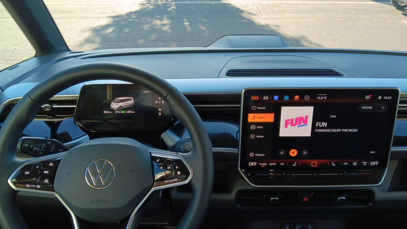 4 jantes en alliage léger "Tilburg" 8J x 19 AV et 9J x 19 AR en Noir surface tournée brillante Pneus AirStop 235/55 R19 105T à AV, pneus AirStop 255/50 R19 107T AR / Activation automatique du signal de détresse en cas de freinage d'urgence / Blocs de feux AR à LED / Caméra multifonction pour aides à la conduite / Ceintures automatiques 3 points AR à l'extérieur avec label ECE / Eclairage du coffre à bagages LED / Frein de stationnement électromécanique avec fonction d'immobilisation "Auto-Hold" / Freins à tambour 13" à l'AR, avec frein de stationnement électrique / Front Assist: système de surveillance périmétrique contribuant à la prévention des collisions avec fonction de détection des piétons et des cyclistes. Ce système freine automatiquement le véhicule en cas de détection d'obstacle aussi bien en ville que sur autoroute / ID. Display de 5,3'' L'ID. Display est un combiné d'instruments numérique doté d'un afficheur couleur TFT à haute résolution. En plus du tachymètre numérique, il est possible d'afficher des informations supplémentaires provenant des systèmes d'aide à la conduite, par la sélection de divers profils d'information / Intervention de freinage automatique lors des manoevres Park Pilot L'intervention de freinage automatique d'un système de stationnement est utilisée pour réduire le risque de collision si un obstacle est détecté pendant le processus de stationnement. Système d'aide au stationnement AV et AR avec signaux sonores et visualisation de la distance des obstacles sur l'écran / Pack 7 places - Banquette/dossier AR divisés, rabattables, plus 2 sièges amovibles dans la 3e rangée de sièges - Climatiseur bizone avec 2 chauffages d'appoint - Freins à disque 19" à l'AV, avec indicateur d'usure des plaquettes de frein - Poids total autorisé en charge 3 340 kg / Pack Confort - 2 interfaces USB-C ds tableau de bord,prises USB-C pr passager AV et sièges AR, puiss. de rech. 45 W, Balayage intermitt. d'essuie-glace, av. capteur de pluie y comp. 1 prise USB-C, puiss. de recharge 15 W, Boîtiers de rétroviseurs extérieurs et poignées de porte, Buses de lave-glace dégivrantes AV, Chauffage pour sièges AV, Couvre-coffre, ID. Buzz Box, console centrale amovible ac plusieurs rangements + points de supp. ds plancher du véhicule entre sièges AV, Parebrise en verre athermique / Pack Visibilité Allumage automatique des feux, capteurs de pluie avec essuie-glace automatique / Protections pour jantes en alliage léger / Préparation pour activation ultérieure: fonction de Navigation "Discover Pro" / Rétroviseur intérieur de sécurité, à réglage jour/nuit automatique / Système d'aide au stationnement - signaux d'avertissement en cas d´obstacles AV et AR / Sélecteur de vitesse situéà droite derrière le volant avec frein de stationnement électronique Il dispose d'une marche AV (D/B), du neutre (N) et d'une marche AR (R). En position (D), la récupération d'énergie au freinage est en mode normal. En position (B), le système d'aide à l'éco-conduite est activé et la récupération d'énergie est plus élevée / 2 Clés du véhicule / 7 sièges / ACC: Régulateur de vitesse adaptatif avec limiteur de vitesse adapte la vitesse en fonction des limitations de vitesse détectées / Accoudoirs pour les sièges AV côté intérieur / Airbags pour conducteur et passager AV, avec désactivation de l'airbag du passager AV / Amortisseurs AR, base 1 / Amortisseurs AV / Antenne à fonction Diversité pour réception FM / App-Connect, compris App-Connect Wireless pour Apple CarPlay et Android Auto et Mirror Link (avec fil) / Assistance d'évitement et assistant de braquage / Assistant de freinage d'urgence Front Assist avec système de détection des piétons et cyclistes / Autoradio "Ready 2 Discover" / Avertisseur sonore 1 ton / Avertisseur sonore et lumineux pour ceintures non attachées AV et AR / Bandes centrales des sièges AV et AR extérieurs en tissu / Batterie 340A/58Ah / Bordure de l'écran d'Infotainment, éléments de commande centraux en Noir / Boulons de roue avec protection antivol étendue / Car2X La fonction Car2X utilise les informations des autres véhicules présents dans un périmètre pouvant s'étendre jusqu'à 800 mètres, ainsi que les signaux des infrastructures de transport pour avertir le conducteur et transmettre ces avertissements à d'autres véhicules équipés de la fonction Car2X / Ceintures de sécurité 3 points AV avec rétracteurs de ceinture et de ceinture sous-abdominale et réglage en hauteur / Chauffage de siège pour les sièges de la cabine à gauche et à droite réglables séparément / Circulation à droite / Clignotants confort (1 impulsion = 3 clignotements) / Convertisseur CC/CC 3,0 kW / Câble de recharge Mode 2 UE Schuko coudé (8 A) / Câble de recharge Mode 3 - Type 2 pour borne de recharge (16A) / Direction assistée électromécanique, réglée en fonction de la vitesse / Dispositif électronique de démarrage sans clé "Keyless-Go" / Détection de fatigue / E-sound - son spécifique ID L'e-Sound est un bruit électronique de moteur signalant l'approche de véhicules électriques aux autres usagers de la route. Plus le véhicule roule vite, plus le volume sonore de l'e-Sound diminue lentement / Eclairage d'ambiance - 10 couleurs / Eclairage intérieur de plancher AV et AR / Ecran tactile couleur de 32,8 cm (12,9") personnalisable / Empattement long / Fenêtre latérale fixe dans le compartiment de charge/passagers à l'AV à gauche / Fenêtre latérale fixe dans le compartiment passager à droite / Fermeture du hayon sans fonction de déverrouillage de l'intérieur / Fixation siège pour enfant ISOFIX et Top Tether pour sièges dans le compartiment passagers (sauf siège central de 2e RS) / Hayon avec baie de fenêtre / ID.Light L'ID. Light est un concept d'éclairage intelligent qui vous fournit des informations complémentaires sur l'état du véhicule et sur la situation 