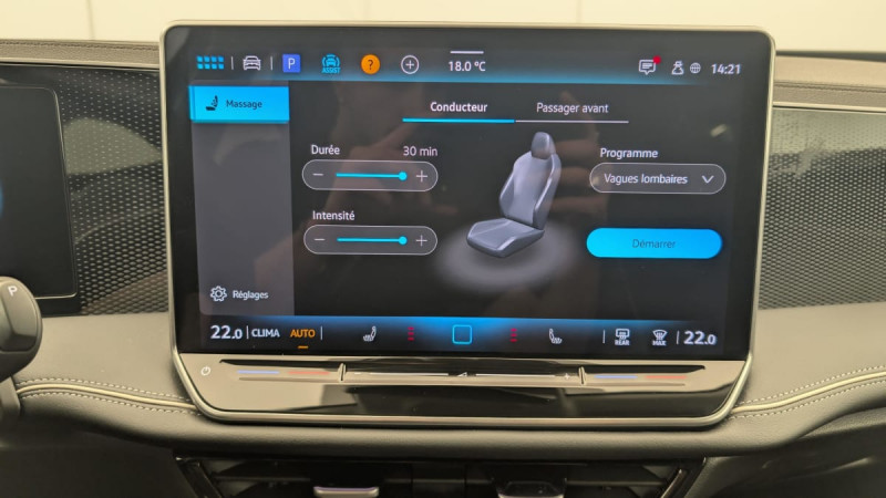 Interface Bluetooth pour téléphone portable / Prise 12V dans la console centrale / Dispositif électronique de démarrage sans clé "Keyless-Go" / Pack Cargo : Filet de coffre Prise 230V dans le coffre Plancher variable pour le compartiment à bagages / Frein de stationnement électrique avec fonction Auto-Hold / Allumage automatique des projecteurs avec feux de jour à LED et fonction "Coming/Leaving Home" / Régulateur de vitesse adaptatif et prédictif ACC avec limiteur de vitesse / Volant multifonction cuir avec palettes au volant / Light Assist: Activation ou désactivation automatique des feux de route en fonction des sources lumineuses en présence (dès 60 km/h) / App-Connect sans fil / Assistant de maintien sur la voie Lane Assist / Assistant de freinage d'urgence Front Assist avec système de détection des piétons et cyclistes / Rampes de pavillon "Argent" anodisées / Dispositif start/stop / Système de détection de la signalisation routière / Eclairage d'ambiance 10 couleurs / Oeillets de retenue ISOFIX pour sièges pour enfants sur sièges AR extérieurs et sur siège passager AV, compatibles i-Size / Prise 12V dans le coffre à bagages / Intelligent Park Assist: système d'assistance aux stationnement en créneau et en bataille, inclus radars de stationnement AV/AR / 2 USB AV/AR avec puissance de charge optimisée / Système Navigation & Infotainment "Discover Media" / Fonction massage pour les sièges AV sur 3 points de pression / Sellerie en Microfleece "ArtVelours" / Airbag central / Détecteur d'angles morts "Side Assist" avec assistance de sortie de stationnement / Climatisation automatique "Pure Air Climatronic" tri-zone avec commande tactile AV/AR / Sièges AV réglables en hauteur et appui lombaire avec réglage pneumatique des 2 côtés / 2 prise USB-C dans la console central / Interface téléphonique avec fonction de chargement à induction pour téléphone / Assistant vocal intelligent "IDA" activable avec l'expression "Hello IDA" / Rétroviseur intérieur jour/nuit automatique / Airbags frontaux AV avec désactivation airbag passager AV /