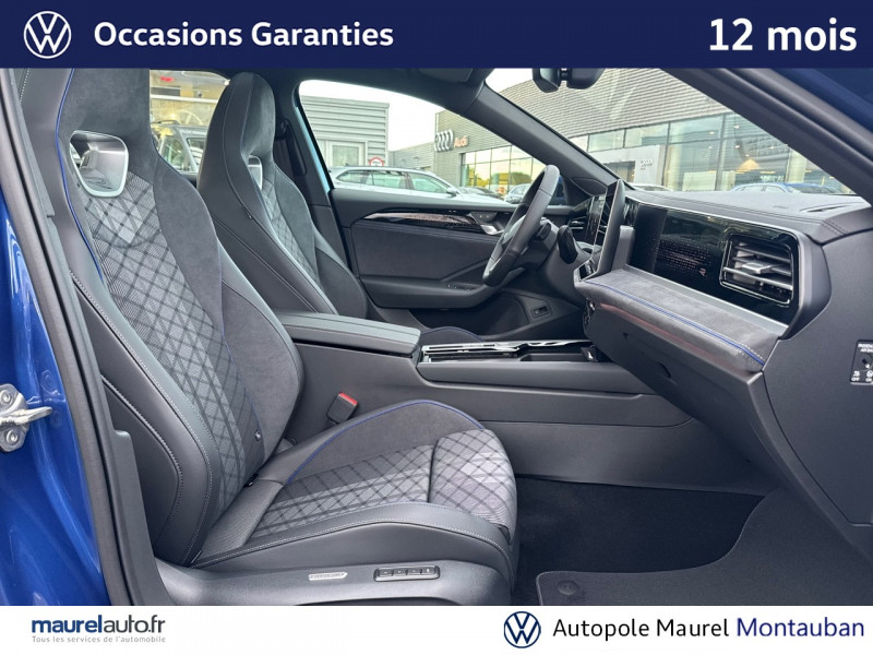 Allumage automatique des projecteurs avec feux de jour à LED et fonction "Coming/Leaving Home" / Climatisation automatique "Pure Air Climatronic" tri-zone avec commande tactile AV/AR / Détecteur d'angles morts "Side Assist" avec assistance de sortie de stationnement / Feux AR à LED avec clignotants AR défilants / Frein de stationnement électrique avec fonction Auto-Hold / Jantes en alliage léger 18" "Coventry" 8Jx18 et pneumatiques 235/45 R18 autocolmatants avec écrous antivol / Pack Cargo - Plancher variable pour le compartiment à bagages - Filet de coffre - Prise 230V dans le coffre / Pack Design Extérieur R-Line / Pack Design Interieur R-Line / Park Assist Pro: Système d'assistance aux stationnement en créneau et en bataille, inclus radars de stationnement AV/AR / Projecteurs AV matriciels à LED avec feux de jour à LED et clignotants défilants / Projecteurs IQ.Light, Matrix LED Éclairage à technologie LED avec adaptation dynamique du faisceau lumineux en fonction des sources lumineuses en présence afin de ne pas éblouir les différents usagers de la route. Les informations de la caméra frontale, les données cartographiques numériques de la navigation, les informations GPS,l'angle du volant et la vitesse de conduite actuelle activent individuellement des LED spécifiques pour un éclairage optimal. / Revêtement de porte en style cuir / Régulateur de vitesse adaptatif et prédictif ACC avec limiteur de vitesse détecte dans les limites du système et à l'aide d'un capteur radar les véhicules qui précèdent et maintient la distance en intervenant sur les freins et l'accélérateur (régulation active, de 0 à 210 km/h ; jusqu'à l'arrêt du véhicule). Le conducteur peut calibrer la distance souhaitée par rapport aux autres automobilistes / Rétroviseur intérieur jour/nuit automatique / Système Navigation & Infotainment "Discover Media" de 12,9" avec Services de streaming et radio via Internet via carte eSIM intégrée / Toit relevable / coulissant panoramique / Volant avec insert aluminium "R" / 2 prise USB-C dans la console central / 2 USB AV/AR avec puissance de charge optimisée / 8 HP / Airbag central / Airbags de tête pour passagers AV y compris airbags latéraux AV / Airbags frontaux AV avec désactivation airbag passager AV / Alarme antivol / App-Connect sans fil / Applications décoratives brillant sur le tableau de bord et les revêtements de portes / Appui-têtes AV (2) à sécurité optimisée / Appui-têtes AV à sécurité optimisée, réglables en hauteur et profondeur sur les sièges conducteur et passager / Appuie-tête à sécurité optimisée AV / Assistant de freinage d'urgence Front Assist avec système de détection des piétons et cyclistes / Assistant de maintien sur la voie Lane Assist / Assistant vocal intelligent "IDA" activable avec l'expression "Hello IDA" / Bandeau lumineux AV/AR avec logo Volkswagen rétroéclairé / Boitiers de rétroviseurs extérieurs et poignées de portes dans la couleur carrosserie / Buses de lave-glaces AV dégivrantes / Chargeur à induction (avec compartiment réfrigéré) / Ciel de pavillon Noir / Dispositif start/stop / Dispositif électronique de démarrage sans clé "Keyless-Go" / Dynamic Light Assist: Régulation du faisceau lumineux permettant un usage permanent des feux de route tout en préservant les zones qui risquent d'éblouir les autres automobilistes (à partir de 60 km/h) / Eclairage d'ambiance 30 couleurs / Ecrous antivol avec protection antivol étendue / Fatigue Détection : système de détection de fatigue du conducteur qui analyse le comportement du conducteur et recommande un temps de repos par l'apparition d'un message visuel et sonore / Feux AR de brouillard des 2 côtés, feux de recul des 2 côtés / Interface Bluetooth pour téléphone portable / Interface téléphonique avec fonction de chargement à induction pour 2 téléphones (compartiment réfrigéré) / Keyless Access: Système de verrouillage/dévérrouillage sans clé et démarrage avec bouton Start/Stop / Kit de crevaison - Compresseur 12V et produit de colmatage des pneus / Light Assist activation ou désactivation des feux de route en fonction des sources lumineuses en présence (dès 60 km/h) / Oeillets de retenue ISOFIX pour sièges pour enfants sur sièges AR extérieurs et sur siège passager AV, compatibles i-Size / Ouverture et fermeture du coffre mains-libres "Easy Open/Easy Close" / Pares-soleil à l'AV avec miroir de courtoisie eclairé / Prise 12V dans la console centrale / Prise 12V dans le coffre à bagages / Préparation pour "VW Connect" pour "Discover Media" / Pédalier en acier inoxydable brossé / Rampes de pavillon "Argent" anodisées / Réglage dynamique du site des phares / Régulation dynamique des feux de route "Dynamic Light Assist" / Selection du mode de profil de conduite / Service d'appel d'urgence e-Call / Seuils de porte AV/AR en acier inoxydable / Sièges AV a réglage lombaire et massants sur 3 points de pression / Sièges AV chauffants et massants sur 10 points de pression / Sièges AV réglables en hauteur et appui lombaire avec réglage pneumatique des 2 côtés / Sièges AV Sport avec appuie-tête intégré / Système de détection de la signalisation routière / Tableau de bord Digital Cockpit 10" / Tapis de sol textile / Verrouillage centralisé, avec radiocommande et 2 clés pliantes