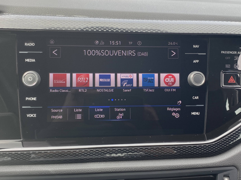 Allumage automatique des projecteurs avec feux de jour à LED et fonction "Coming/Leaving Home" / Climatisation manuelle "Climatic" / Correcteur électronique de trajectoire ESP avec amplificateur de freinage d'urgence, système d'antiblocage des roues ABS, antipatinage électronique ASR, blocage électronique de différentiel EDS, régulateur électronique de couple d'inertie MSR, aide au démarrage en côte ?Hill-Hold' / Front Assist: système de surveillance périmétrique contribuant à la prévention des collisions avec fonction de détection des piétons et des cyclistes. Ce système freine automatiquement le véhicule en cas de détection d'obstacle aussi bien en ville que sur autoroute / Jantes en alliage léger 15" ?Essex' et pneumatiques 185/65 R15 avec écrous antivol / Light Assist : Régulation automatique des feux de route / Pack Chrome Intérieur / Park Pilot : aide au stationnement AV/ AR avec signaux d'avertissement acoustiques en cas d'obstacle / Pommeau de levier de vitesses et poignée de frein à main en cuir / Projecteurs à LED et feux de jour à LED Eco / Rétroviseur intérieur à réglage jour/nuit automatique / Système de freinage anti multicollision: ce dispositif freine automatiquement le véhicule après un premier choc afin de limiter le risque de multicollision / Système Navigation & Infotainment "Discover Media" avec "Services de streaming et radio via Internet Internet via carte eSIM intégrée, Radionavigation 6 HP (4 x 20 W) et écran couleur tactile 8" (1240 x 1080 pixels) reprenant les fonctionnalités du ?Ready 2 Discover', avec en plus : Système de navigation, Affichage de la carte en 2D et 3D, Trois calculs d'itinéraire possible (rapide, court et économique) Sign Assist' : reconnaissance des panneaux de signalisation et affichage sur le ?Digital Cockpit' et l'écran du système de radionavigation.... / 2 interfaces USB-C à l'AV / Accoudoir central AV réglable en longueur avec compartiment de rangement et 2 ports USB-C de recharge AR / Airbags frontaux AV conducteur et passager (Airbag passager désactivable par clé) / Antenne AR de pavillon / App-Connect sans fil affichage et contrôle via l'écran tactile du véhicule, du contenu, des fonctions et des applications compatibles présents sur le Smartphone (compatibilité avec les systèmes Apple CarPlay et Android Auto). Fonction sans fil uniquement disponible avec Apple CarPlay / Applications décoratives "Lava Stone Black" sur le tableau de bord / Appuis lombaires réglables à l'AV / Appuis-tête (3) et ceintures de sécuritéà 3 points (3) sur la banquette AR / Aumônières au dos des sièges AV / Avertisseur sonore et lumineux de non-extinction des phares et de non bouclage des ceintures de sécuritéà l'AV et à l'AR / Bacs de rangement dans toutes les portes, à l'AV avec porte-boisson / Banquette et dossier AR asymétriques, rabattables 1/3 et 2/3 avec plancher de coffre à bagages réglable en 2 hauteurs / Boîtiers de rétroviseurs extérieurs et poignées de porte dans la teinte du véhicule / Cache-bagages / Ciel de pavillon couleur céramique / Câble adaptateur USB-C vers USB-A / Digital Cockpit : combiné d'instruments entièrement digital de 8" / Disques de frein à l'AV et freins à tambour à l'AR / Dossier AR non divisé et rabattable / Déflecteur de toit intégré / Eclairage du coffre à bagages / Essuie-glaces AV/AR avec commande d'intermittence et lave-glace / Fatigue Detection : système de détection de fatigue du conducteur qui analyse le comportement du conducteur et recommande un temps de repos par l'apparition d'un message visuel et sonore / Filtre à charbon actif avec aspiration d'air frais / Grille de calandre avec baguette chromée / Interface Bluetooth pour téléphone mains libres / Lampes de lecture AV/AR / Lane Assist: Assistant de maintien de trajectoire qui corrige, dans la limite du système, le mouvement du volant avant que le véhicule dépasse involontairement la bande de roulement. Système actif à partir de 65 km/h / Miroirs de courtoisie éclairés dans les pare-soleil pour conducteur et passager AV / Oeillets d'arrimage ISOFIX (dispositif pour fixation de 2 sièges enfants sur les places extérieures de la banquette AR et 1 siège enfant sur le siège passager AV) / Pare-chocs peints dans la couleur de carrosserie / Plafonnier à temporisation à l'AV avec contacteur de portière / Porte-boissons (2) à l'AV / Roue de secours acier avec pneus normal 15", outillage de bord et cric / Régulateur de vitesse y compris limiteur de vitesse / Rétroviseur extérieur asphérique côté conducteur / Système "Start-Stop" de coupure-redémarrage du moteur à l'arrêt / Système de récupération de l'énergie en décélération / Tableau de bord avec revêtement moussé en partie supérieure / Tapis de sol AV/AR / Témoin d'alerte pour niveau de liquide lave-glace / Témoins de contrôle et indicateur d'intervalle de révision / Verrouillage centraliséà distance, 2 clés pliantes de radiocommande fournies / Vitres athermiques teintées vertes