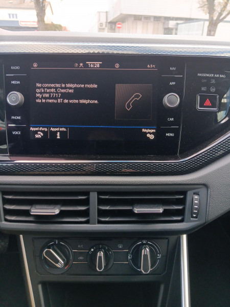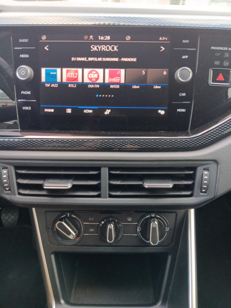 Allumage automatique des projecteurs avec feux de jour à LED et fonction "Coming/Leaving Home" / Caméra de recul Rear view avec visualisation de la zone située à l'AR du véhicule sur l'écran de la radio ou de la radionavigation / Climatisation manuelle "Climatic" / Correcteur électronique de trajectoire ESP avec amplificateur de freinage d'urgence, système d'antiblocage des roues ABS, antipatinage électronique ASR, blocage électronique de différentiel EDS, régulateur électronique de couple d'inertie MSR, aide au démarrage en côte 'Hill-Hold' / Front Assist: système de surveillance périmétrique contribuant à la prévention des collisions avec fonction de détection des piétons et des cyclistes. Ce système freine automatiquement le véhicule en cas de détection d'obstacle aussi bien en ville que sur autoroute / Jantes en alliage léger 15" 'Essex' et pneumatiques 185/65 R15 avec écrous antivol / Light Assist : Régulation automatique des feux de route / Pack Chrome Intérieur / Park Pilot : aide au stationnement AV/ AR avec signaux d'avertissement acoustiques en cas dobstacle / Pommeau de levier de vitesses et poignée de frein à main en cuir / Projecteurs à LED et feux de jour à LED Eco / Rétroviseur intérieur à réglage jour/nuit automatique / Système Audio & Infotainment "Ready 2 Discover" Système Audio & Infotainment 'Ready 2 Discover' radio Internet' via carte eSIM intégrée : - App-Connect sans fil - 6 HP - Préparation pour 'VW Connect' et 'VW Connect Plus' - Préparation pour activation ultérieure de la Navigation 'Discover Media' - Écran tactile 8" / Système de freinage anti multicollision: ce dispositif freine automatiquement le véhicule après un premier choc afin de limiter le risque de multicollision / 2 interfaces USB-C à l'AV / Accoudoir central AV réglable en longueur avec compartiment de rangement et 2 ports USB-C de recharge AR / Airbags frontaux AV conducteur et passager (Airbag passager désactivable par clé) / Antenne AR de pavillon / Applications décoratives "Lava Stone Black" sur le tableau de bord / Appuis lombaires réglables à l'AV / Appuis-tête (3) et ceintures de sécuritéà 3 points (3) sur la banquette AR / Aumônières au dos des sièges AV / Avertisseur sonore et lumineux de non-extinction des phares et de non bouclage des ceintures de sécuritéà l'AV et à l'AR / Bacs de rangement dans toutes les portes, à l'AV avec porte-boisson / Banquette et dossier AR asymétriques, rabattables 1/3 et 2/3 avec plancher de coffre à bagages réglable en 2 hauteurs / Boîte de vitesse manuelle 5 rapports / Boîtiers de rétroviseurs extérieurs et poignées de porte dans la teinte du véhicule / Cache-bagages / Ciel de pavillon couleur céramique / Digital Cockpit : combiné d'instruments entièrement digital de 8" / Disques de frein à l'AV et freins à tambour à l'AR / Dossier AR non divisé et rabattable / Déflecteur de toit intégré / Eclairage du coffre à bagages / Essuie-glaces AV/AR avec commande d'intermittence et lave-glace / Fatigue Detection : système de détection de fatigue du conducteur qui analyse le comportement du conducteur et recommande un temps de repos par l'apparition d'un message visuel et sonore / Filtre à charbon actif avec aspiration d'air frais / Grille de calandre avec baguette chromée / Interface Bluetooth pour téléphone mains libres / Kit de dépannage en cas de crevaison incluant compresseur 12 V et produit colmatant / Lampes de lecture AV/AR / Lane Assist: assistant de maintien dans la voie qui corrige, dans la limite du système, le mouvement du volant AV que le véhicule dépasse involontairement la bande de roulement / Miroirs de courtoisie éclairés dans les pare-soleil pour conducteur et passager AV / Oeillets d'arrimage ISOFIX (dispositif pour fixation de 2 sièges enfants sur les places extérieures de la banquette AR et 1 siège enfant sur le siège passager AV) / Pare-chocs peints dans la couleur de carrosserie / Plafonnier à temporisation à l'AV avec contacteur de portière / Porte-boissons (2) à l'AV / Préparation pour "VW Connect" et "VW Connect Plus" vous permet d'obtenir des informations sur votre véhicule directement sur votre smartphone. Application totalement gratuite et facile à utiliser. Produit 100% compatible avec votre Volkswagen et garantie constructeur préservée. Aperçu de toutes les données de votre véhicule et des prochaines maintenances à effectuer. Sécurité totale des données grâce à un cryptage / Régulateur de vitesse y compris limiteur de vitesse / Rétroviseur extérieur asphérique côté conducteur / Système "Start-Stop" de coupure-redémarrage du moteur à l'arrêt / Système de récupération de l'énergie en décélération / Tableau de bord avec revêtement moussé en partie supérieure / Tapis de sol AV/AR / Témoin d'alerte pour niveau de liquide lave-glace / Témoins de contrôle et indicateur d'intervalle de révision / Verrouillage centraliséà distance, 2 clés pliantes de radiocommande fournies / Vitres athermiques teintées vertes