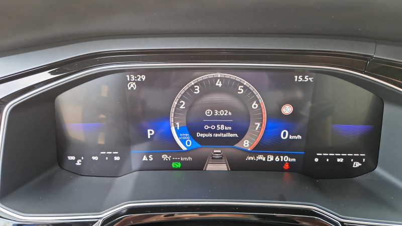 Allumage automatique des projecteurs avec feux de jour à LED et fonction "Coming/Leaving Home" / Caméra de recul Rear View avec visualisation de la zone située à l'AR du véhicule sur l'écran de la radionavigation / Climatisation automatique tactile "Climatronic" bi-zone avec filtre anti-allergène réglable séparément pour le conducteur et le passager AV / Correcteur électronique de trajectoire ESP avec amplificateur de freinage d'urgence, système d'antiblocage des roues ABS, antipatinage électronique ASR, blocage électronique de différentiel EDS, régulateur électronique de couple d'inertie MSR, aide au démarrage en côte 'Hill-Hold' / Front Assist: système de surveillance périmétrique contribuant à la prévention des collisions avec fonction de détection des piétons et des cyclistes. Ce système freine automatiquement le véhicule en cas de détection d'obstacle aussi bien en ville que sur autoroute / Jantes en alliage léger 17" 'York' et pneumatiques 215/45 R17 avec écrous antivol / Pack Chrome Intérieur / Park Pilot : aide au stationnement AV/ AR avec signaux d'avertissement acoustiques en cas dobstacle / Pommeau de levier de vitesses et poignée de frein à main en cuir / Projecteurs antibrouillard AV à LED avec éclairage statique d'intersection / Projecteurs IQ.Light - Matrix LED avec feux de jours à LED, clignotants AR défilants et 'Dynamic Light Assist' / Régulateur de vitesse adaptatif et prédictif ACC avec limiteur de vitesse détecte dans les limites du système et à l'aide d'un capteur radar les véhicules qui précèdent et maintient la distance en intervenant sur les freins et l'accélérateur (régulation active, de 0 à 210 km/h ; jusqu'à l'arrêt du véhicule). Le conducteur peut calibrer la distance souhaitée par rapport aux autres automobilistes / Rétroviseur intérieur à réglage jour/nuit automatique / Sign Assist: Reconnaissance des panneaux de signalisation et affichage sur le 'Digital Cockpit' et l'écran du système de radionavigation / Système de freinage anti multicollision: ce dispositif freine automatiquement le véhicule après un premier choc afin de limiter le risque de multicollision / Système Navigation & Infotainment "Discover Media" avec "Services de streaming et radio via Internet Internet via carte eSIM intégrée, Radionavigation 6 HP (4 x 20 W) et écran couleur tactile 8" (1240 x 1080 pixels) reprenant les fonctionnalités du ?Ready 2 Discover?, avec en plus : Système de navigation, Affichage de la carte en 2D et 3D, Trois calculs d?itinéraire possible (rapide, court et économique) Sign Assist? : reconnaissance des panneaux de signalisation et affichage sur le ?Digital Cockpit? et l?écran du système de radionavigation.... / 2 interfaces USB-C à l'AV / Accoudoir central AV réglable en longueur avec compartiment de rangement et 2 ports USB-C de recharge AR / Airbags frontaux AV conducteur et passager (Airbag passager désactivable par clé) / Antenne AR de pavillon / App-Connect sans fil affichage et contrôle via l'écran tactile du véhicule, du contenu, des fonctions et des applications compatibles présents sur le Smartphone (compatibilité avec les systèmes Apple CarPlay et Android Auto). Fonction sans fil uniquement disponible avec Apple CarPlay / Applications décoratives "Dark Grey" sur le tableau de bord / Appuis lombaires réglables à l'AV / Appuis-tête (3) et ceintures de sécuritéà 3 points (3) sur la banquette AR / Assistant de conduite semi-autonome "Travel Assist" / Aumônières au dos des sièges AV / Avertisseur sonore et lumineux de non-extinction des phares et de non bouclage des ceintures de sécuritéà l'AV et à l'AR / Bacs de rangement dans toutes les portes, à l'AV avec porte-boisson / Baguette lumineuse entre les projecteurs / Baguettes chromées sur le bouclier AV / Banquette et dossier AR asymétriques, rabattables 1/3 et 2/3 avec plancher de coffre à bagages réglable en 2 hauteurs / Bas de caisse et spoiler spécifiques R-Line / Boîtiers de rétroviseurs extérieurs et poignées de porte dans la teinte du véhicule / Cache-bagages / Calandre spécifique R-Line avec monogramme "R" / Ciel de pavillon Noir / Câble adaptateur USB-C vers USB-A / Digital Cockpit : combiné d'instruments entièrement digital de 8" / Dossier AR non divisé et rabattable / Déflecteur de toit spécifique R-Line / Eclairage d'ambiance à l'AV / Eclairage de plancher AV / Eclairage du coffre à bagages / Essuie-glaces AV/AR avec commande d'intermittence et lave-glace / Fatigue Detection : système de détection de fatigue du conducteur qui analyse le comportement du conducteur et recommande un temps de repos par l'apparition d'un message visuel et sonore / Filtre à charbon actif avec aspiration d'air frais / Grille de calandre avec baguette chromée / Interface Bluetooth pour téléphone mains libres / Kit de dépannage en cas de crevaison incluant compresseur 12 V et produit colmatant / Lampes de lecture AV/AR / Lane Assist: Assistant de maintien de trajectoire qui corrige, dans la limite du système, le mouvement du volant avant que le véhicule dépasse involontairement la bande de roulement. Système actif à partir de 65 km/h / Miroirs de courtoisie éclairés dans les pare-soleil pour conducteur et passager AV / Oeillets d'arrimage ISOFIX (dispositif pour fixation de 2 sièges enfants sur les places extérieures de la banquette AR et 1 siège enfant sur le siège passager AV) / Pare-chocs AV/AR spécifiques R-Line avec inserts chromés / Plafonnier à temporisation à l'AV avec contacteur de portière / Porte-boissons (2) à l'AV / Pédalier en acier inoxydable / Rétroviseur extérieur asphérique côté conducteur / Seuils de porte R-Line / Système "Start-Stop" de coupure-redémarrage du moteur à l'arrêt / Système de récupération de l'énergie en décélération / Tableau de bord avec revêtement moussé en partie supérieure / Tapis de sol AV/AR / Témoin d'alerte pour niveau de 