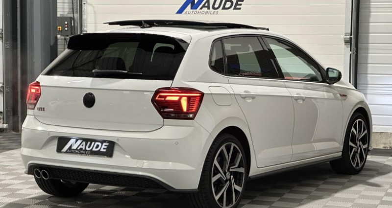VOLKSWAGEN POLO GTI 2.0 TSI 200 DSG6 - Toit ouvrant - Suivi Volkswagen - Véhicule visible uniquement sur rendez-vous, du lundi au vendredi de 9h30 à 18h00 et le samedi de 10h00 à 16h00 - Ce véhicule bénéficie d'une garantie de 3 mois. Possibilité d'extension jusqu'à 48 mois avec notre partenaire leader de la garantie mécanique OPTEVEN (à partir de 35 euros / mois). Prix hors frais de formalités de 390 euros et carte grise en fonction du département. Reprise possible de votre ancien véhicule. - Contactez Christopher de l'agence NAUDE AUTOMOBILES CHAPONOST pour ce véhicule. - Les plus de ce véhicule : ======= OPTIONS ======= Toit ouvrant électrique panoramique ouvrant coulissant en verre Caméra de recul Rear view (lignes statiques) Châssis Sport Select: Système d amortisseurs à réglage électronique Jantes en alliage léger 18 Brescia Peinture unie Blanc Pur ======= EQUIPEMENTS DE SERIE ======= Keyless Access (système de verrouillage déverrouillage sans clé et démarrage avec bouton start stop) Accoudoir central AV avec compartiment de rangement Aide démarrage en côte Allumage automatique des feux Allumage automatique des projecteurs avec feux de jour à LED Android Auto Apple CarPlay Anti-démarrage App-Connect Auto-radio commandé au volant Avertisseur franchissement de ligne Banquette arrière rabattable Bluetooth Capteur de pluie avec essuie-glace automatique Car-Net App-Connect En combinaison avec Discover Media Châssis sport Climatisation automatique Climatronic bi-zone Contrôle pression des pneus Correcteur électronique de trajectoire ESP Détecteur de pluie Digital Cockpit Pro : combiné d'instruments entièrement digital haute résolution couleur Front Assist : système de surveillance périmétrique avec fonction de secours en ville Interface USB également pour iPod iPhone Keyless Access (système de verrouillage déverrouillage sans clé et démarrage avec bouton start stop) Ordinateur de bord Pack phare full LED Palettes au volant pour boîte DSG ParkPilot: Aide au stationnement AV AR avec signaux sonores en cas d'obstacle Phares de jour Prise(s) AUX USB Projecteurs antibrouillard AV avec éclairage statique d'intersection Régulateur de vitesse adaptatif ACC Rétroviseur intérieur à réglage jour nuit automatique Rétroviseur(s) Electrochrome Reconnaissance vocale Sellerie en tissu Clark Noir-Rouge avec surpiqûres rouges Sièges AV chauffants Système Navigation & Infotainment Discover Media Vitres électriques Vitres AR et lunette AR surteintées Volant réglable Volant sport Nb. Vitesses : 6 Conso Mixte : l/100