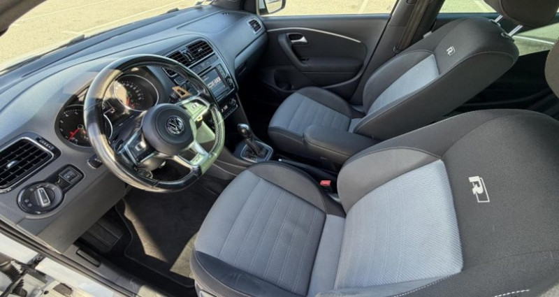 ======= OPTIONS ======= Pack R-line Intérieur Peinture métallisée ======= EQUIPEMENTS DE SERIE ======= Fatigue Detection' : Système de détection de fatigue du conducteur qui analyse le comportement du conducteur et recommande un temps de repos par l'apparition d'un message visuel et sonore 3ème feu stop surélevé 4 jantes en alliage léger 7 J x 18 Aide au démarrage en côte Hill-Hold' Airbags frontaux conducteur et passager (déconnectable côté passager) Airbags latéraux tête avant Alerte de perte de pression des pneus Antenne arrière de pavillon Anti-patinage électronique ASR Applications décoratives Cortina Silver' sur la console centrale Appuis-tête (3) et ceintures de sécurité 3 points (3) sur la banquette arrière Appuis-tête à sécurité optimisée à l'avant (2) Aumônières au dos des sièges avant Avertisseur sonore de non-extinction des phares et de non bouclage des ceintures de sécurité (conducteur et passager) Avertisseur sonore deux tons Bacs de rangement dans toutes les portières, à l'avant avec porte-boisson pour des bouteilles à 1,5L Banquette et dossier arrière asymétriques, rabattables 1 3-2 3, avec double plancher de coffre à bagages Bas de caisse et spoiler spécifiques Blocage électronique de différentiel EDS Boîte à gants réfrigérée Cache-bagages Calandre spécifique R-Line avec monogramme R' Car-Net App-Connect Carrosserie entièrement galvanisée Ceintures de sécurité trois points à l'avant, à enrouleur avec prétensionneurs, réglables en hauteur Clignotant confort (1 impulsion = 3 clignotements) Clignotants latéraux intégrés dans le rétroviseur Climatisation automatique Climatronic' Correcteur électronique de trajectoire ESP avec amplificateur de freinage d'urgence Crochet pour sacs dans le coffre à bagages Déflecteur de toit intégré Direction assistée électro-mécanique asservie à la vitesse Dispositif de fixation pour deux sièges enfants suivant norme ISOFIX aux places extérieures arrière Disques de frein à l'arrière Disques de frein ventilés à l'avant Eclairage blanc sur les instruments réglable en intensité, rouge sur les commandes Eclairage du coffre à bagages Eclairage du plancher aux places avant Essuie-glace arrière avec commande d'intermittence et lave-glace Essuie-glace avant avec commande d'intermittence à 4 positions et lave-glace Feux arrière de brouillard Feux de circulation de jour intégré dans le bouclier avant Filtre à poussière et à pollen Grille de prise d'air avec baguette chromée Habillage complet du coffre à bagages en feutre Instrumentation avec tachymètre électronique, compteur kilométrique, totalisateur kilométrique journalier et compte-tours Kit anticrevaison (compresseur et produit de colmatage) Lampes de lecture à l'avant (2) et à l'arrière (1) Miroir de courtoisie éclairé sur pare-soleil passager et conducteur Motorisations respectant les futures normes européennes d'émission Euro 6' Oeilletons de fixation dans le coffre Ordinateur de bord Plus' Pack City' Pack Visibilité' Pack Chrome intérieur Pack connectivity Pare-chocs avant arrière spécifiques Pare-chocs couleur carrosserie Plafonnier à temporisation à l'avant avec contacteurs de portière Poignée de frein à main en cuir Poignées de maintien amorties Poignées de portes et rétroviseurs extérieur couleurs carrosserie Pommeau de levier de vitesses en cuir Port USB compatible iPod iPhone pour 'Composition Media' et 'Discover Media' Porte-boissons (2) à l'avant Prise 12V à l'avant Projecteurs antibrouillard avec éclairage statique d'intersection Régulateur de vitesse Régulateur électronique de couple d'inertie MSR Répartiteur électronique de freinage EBV Rétroviseur extérieur asphérique côté conducteur Rétroviseurs extérieurs réglables électriquement et dégivrants Sellerie en tissu, dessin Cell' Sièges AV réglables en hauteur Sièges Sport à l'avant Sticker sur la lunette arrière 40 YEARS POLO Support pour trousse de secours et triangle de pré signalisation Système anti-démarrage Système Audio & Infotainment Composition Media' Système d'antiblocage des roues ABS Système de freinage anti multicollision : ce dispositif freine automatiquement le véhicule après un premier choc afin de limiter le risque de multicollision Système de ventilation chauffage 4 vitesses avec commande de fonctionnement en circuit fermé Système Start Stop avec récupération d'énergie de freinage Tableau de bord avec revêtement moussé Tapis de sol avant et arrière Témoins de contrôle et indicateur d'intervalle de révision Tiroirs sous les sièges avant Verrouillage centralisé à distance, 2 clés pliantes de radiocommande fournies Vitres arrière électriques Vitres arrière et lunette arrière surteintées à 65% Vitres athermiques teintées vertes Vitres avant électriques Volant 3 branches Volant multifonction cuir avec placages en chrome mat Volant réglable en hauteur et en profondeur Nb. Vitesses : 7 Conso Mixte : l/100