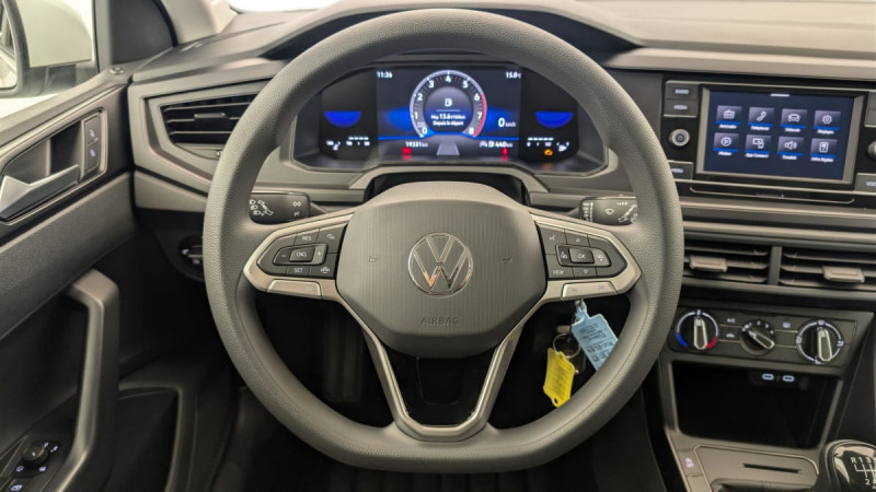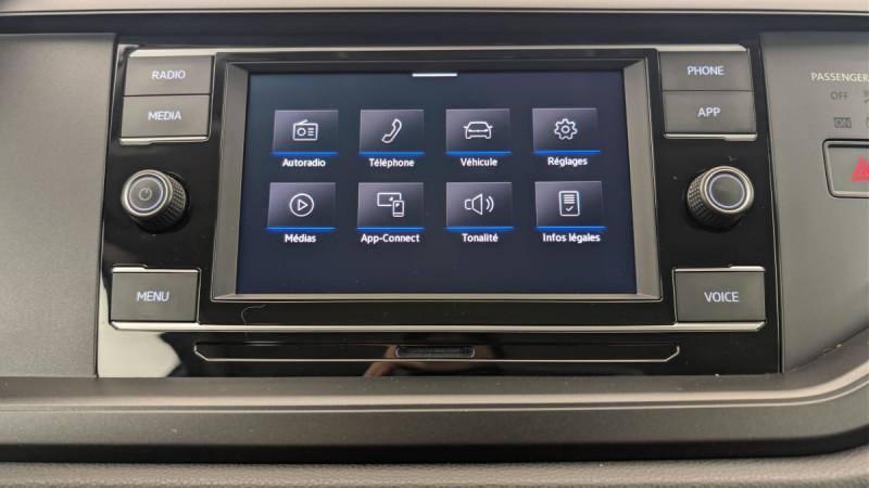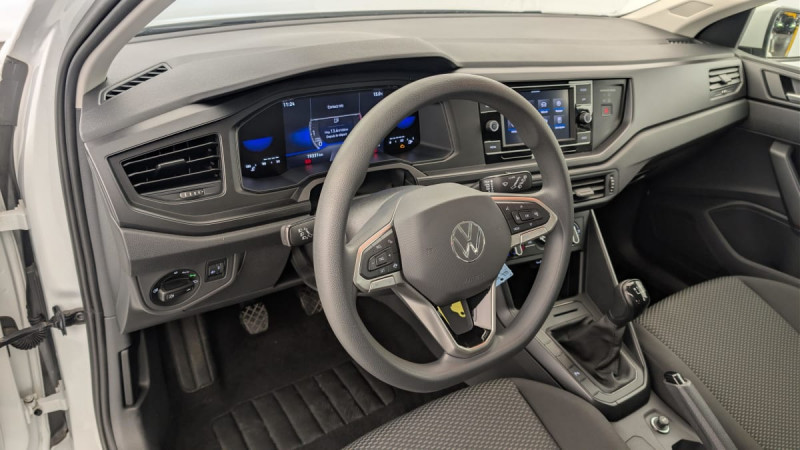 Fatigue Detection : système de détection de fatigue du conducteur qui analyse le comportement du conducteur et recommande un temps de repos par l'apparition d'un message visuel et sonore / Climatisation manuelle "Climatic" / Interface Bluetooth pour téléphone portable / Kit de dépannage en cas de crevaison incluant compresseur 12 V et produit colmatant / Système "Start-Stop" de coupure-redémarrage du moteur à l'arrêt / Rétroviseur intérieur à réglage jour/nuit automatique / Allumage automatique des projecteurs avec feux de jour à LED et fonction "Coming Home/Leaving Home" / Régulateur de vitesse y compris limiteur de vitesse / Park Pilot - Aide au stationnement AV et AR / Front Assist : système de surveillance périmétrique avec fonction de freinage d?urgence en ville et détection des piétons et cyclistes / 2 interfaces USB-C à l'AV / Lane Assist - Assistant au maintien dans la voie avec correction de trajectoire / Projecteurs à LED et feux de jour à LED Eco / Jantes en acier 5,5 J x 15" avec enjoliveurs intégraux, pneumatiques 185/65 R15 / Radio "Composition" avec écran couleur tactile 6,5" et 4 HP / Airbags frontaux AV conducteur et passager (Airbag passager désactivable) / Digital Cockpit : combiné d'instruments entièrement digital de 8" / App-Connect filaire affichage et contrôle via l?écran tactile du véhicule, du contenu, des fonctions et des applications compatibles présents sur le Smartphone (compatibilité avec les systèmes Apple CarPlay et Android Auto) / Sellerie en tissu "Polo" /