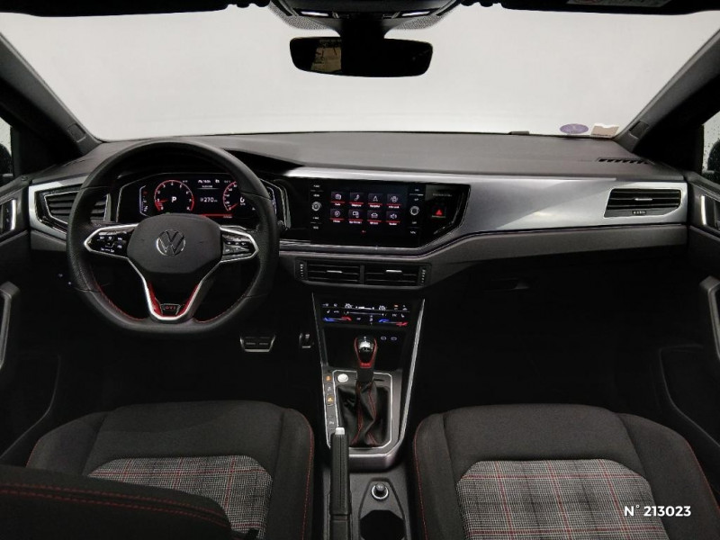 Palettes au volant pour boîte DSG / Pare-chocs AV et AR spécifiques GTI / Park Pilot - Aide au stationnement AV et AR / Pédalier en acier inoxydable / Peinture unie Blanc Pur / Plafonnier à temporisation à l'AV avec contacteur de portière / Pommeau du levier de vitesses spécifique GTI / Projecteurs IQ.Light - Matrix LED avec feux de jours à LED, clignotants AR défilants et Dynamic Light Assist / Régulateur de vitesse adaptatif et prédictif ACC avec limiteur de vitesse / Rétroviseur extérieur asphérique côté conducteur / Rétroviseur intérieur à réglage jour/nuit automatique / Sélection du profil de conduite / Sellerie spécifique "GTI" en tissu ''Clark'' Noir-Rouge avec surpiqûres rouges / Seuils de portes AV siglés GTI / Signature lumineuse spécifique GTI dans les boucliers AV / Système de freinage anti multicollision: ce dispositif freine automatiquement le véhicule après un premier choc afin de limiter le risque de multicollision / Système de récupération de l'énergie en décélération / Système Navigation & Infotainment "Discover Media" / Système Navigation & Infotainment "Discover Media" avec écran couleur tactile 8¿¿ avec «Services de streaming et radio via Internet» via carte eSIM intégrée : Radionavigation 6 HP 4 x 20 W), Écran couleur tactile 8¿¿ (1240 x 1080 pixels), Système de navigation, Affichage de la carte en 2D et 3D, Trois calculs d¿itinéraire possible (rapide, court et économique), Sign Assist¿ et affichage sur le ¿Digital Cockpit¿ et l¿écran du système de radionavigation, Préparation pour ¿We Connect¿ et ¿We Connect Plus / Système "Start-Stop" de coupure-redémarrage du moteur à l'arrêt / Tableau de bord avec revêtement moussé en partie supérieure / Tapis de sol AV/AR / Témoin d'alerte pour niveau de liquide lave-glace / Témoins de contrôle et indicateur d'intervalle de révision / Verrouillage centraliséà distance, 2 clés pliantes de radiocommande fournies / Lampes de lecture AV/AR / Lane Assist - Assistant au maintien dans la voie avec correction de trajectoire / Liseret rouge dans la calandre et les phares / Miroirs de courtoisie éclairés dans les pare-soleil pour conducteur et passager AV / Accoudoir central AV réglable en longueur avec compartiment de rangement et 2 ports USB-C de recharge AR / Airbags frontaux AV conducteur et passager (Airbag passager désactivable) / Airbags frontaux AV conducteur et passager (Airbag passager désactivable par clé) / Allumage automatique des projecteurs avec feux de jour à LED et fonction "Coming Home/Leaving Home" / Antenne AR de pavillon / App-Connect sans fil - affichage et contrôle via l¿écran tactile de la voiture, du contenu, des fonctions et des applications compatibles présents sur le Smartphone (compatibilité avec les systèmes Apple CarPlay, Apple CarPlay sans fil, Android Auto, MirrorLink). Seuls les contenus validés et utilisables en «main libre» peuvent fonctionner. / Applications décoratives Gris "Deep Iron" sur le tableau de bord / Appuis lombaires réglables à l'AV / Aumônières au dos des sièges AV / Avertisseur sonore et lumineux de non-extinction des phares et de non bouclage des ceintures de sécuritéà l'AV et à l'AR / Bacs de rangement dans toutes les portes, à l'AV avec porte-boisson / Baguette lumineuse entre les projecteurs / Baguettes chromées sur le bouclier AV / Banquette et dossier AR asymétriques, rabattables 1/3 et 2/3 avec plancher de coffre à bagages réglable en 2 hauteurs / Bas de caisse et spoiler spécifiques GTI / Boîtiers de rétroviseurs extérieurs et poignées de porte dans la teinte du véhicule / Boucliers AV et AR spécifiques GTI / Câble adaptateur USB-C vers USB-A / Cache-bagages / Calandre spécifique GTI avec grilles en nid d'abeilles, liserés rouges et monogramme GTI sur la partie supérieure / Châssis Sport avec suspension surbaissée de 15 mm environ et amortisseurs raffermis / Ciel de pavillon Noir / Climatisation automatique tactile "Climatronic" bi-zone avec filtre anti-allergène réglable séparément pour le conducteur et le passager AV / Correcteur électronique de trajectoire ESP avec amplificateur de freinage d¿urgence, système d¿antiblocage des roues ABS, antipatinage électronique ASR, blocage électronique de différentiel EDS, régulateur électronique de couple d¿inertie MSR, aide au démarrage en côte ¿Hill-Hold¿ / Déflecteur de toit spécifique GTI / Digital Cockpit Pro : combiné d'instruments entièrement digital haute résolution couleur de 10,25", différents profils d'informations sélectionnables / Disques de frein à l'AV et freins à tambour à l'AR / Double sortie d'échappement chromée à gauche / Eclairage d'ambiance à l'AV / Eclairage de plancher AV / Eclairage du coffre à bagages / Essuie-glaces AV/AR avec commande d'intermittence et lave-glace / Etriers de freins rouge à l'AV et à l'AR / Appuis-tête (3) et ceintures de sécuritéà 3 points (3) sur la banquette AR / Assistant de conduite semi-autonome "Travel Assist" / Fatigue Detection : système de détection de fatigue du conducteur qui analyse le comportement du conducteur et recommande un temps de repos par l'apparition d'un message visuel et sonore / Front Assist : système de surveillance périmétrique avec fonction de freinage d¿urgence en ville et détection des piétons et cyclistes / Grille de calandre avec baguette chromée / Inscription "GTI" à l'AR du véhicule / Interface Bluetooth pour téléphone portable / Jantes en alliage léger 17" 'Milton Keyne' noires et pneumatiques 215/45 R17 avec écrous antivol / Keyless Access: Système de verrouillage/déverrouillage sans clé et démarrage avec bouton start/stop / Kit de dépannage en cas de crevaison incluant compresseur 12 V et produit colmatant / Vitres athermiques teintées vertes / Volant sport multifonction en cuir spécifique "GTI" avec commandes tactiles et palettes au volant / XDS : Système agissant comme un diff