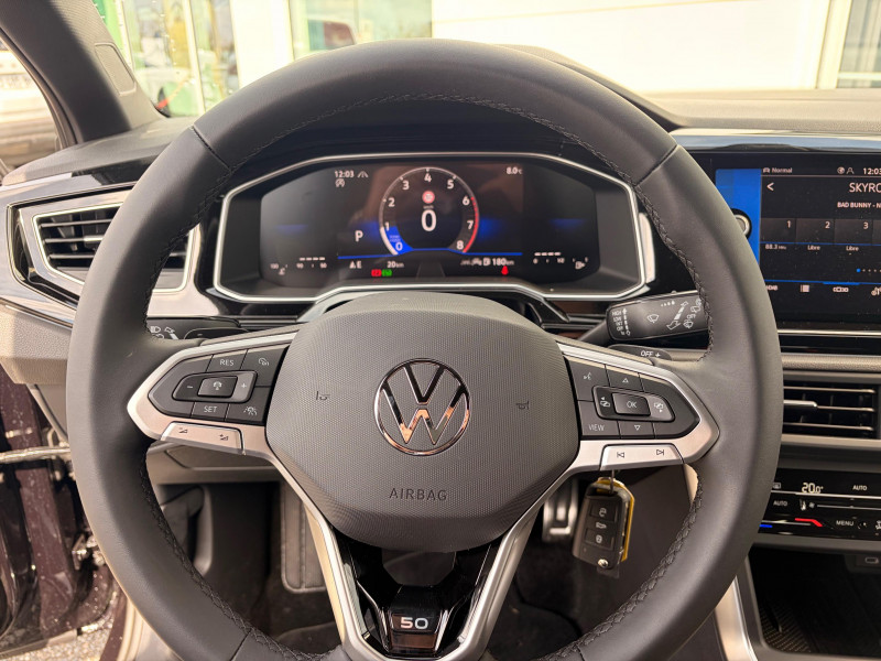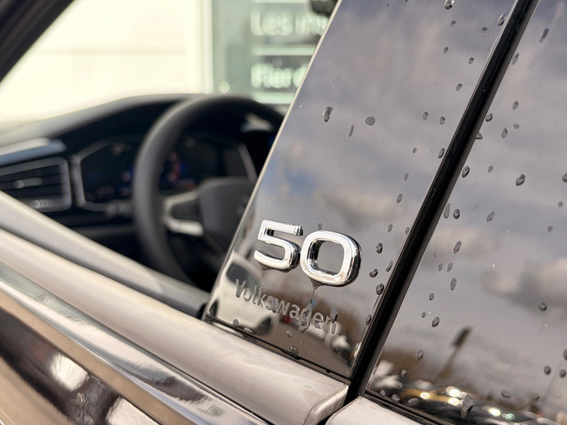 Allumage automatique des projecteurs avec feux de jour à LED et fonction "Coming/Leaving Home" / Boîte de vitesse automatique (DSG7) / Caméra de recul Rear view avec visualisation de la zone située à l'AR du véhicule sur l'écran de la radio ou de la radionavigation / Climatisation automatique tactile "Climatronic" bi-zone avec filtre anti-allergène réglable séparément pour le conducteur et le passager AV / Correcteur électronique de trajectoire ESP avec amplificateur de freinage d'urgence, système d'antiblocage des roues ABS, antipatinage électronique ASR, blocage électronique de différentiel EDS, régulateur électronique de couple d'inertie MSR, aide au démarrage en côte 'Hill-Hold' / Front Assist: système de surveillance périmétrique contribuant à la prévention des collisions avec fonction de détection des piétons et des cyclistes. Ce système freine automatiquement le véhicule en cas de détection d'obstacle aussi bien en ville que sur autoroute / Jantes en alliage léger 16" 'Coventry' et pneumatiques 195/55 R16 91V à résistance au roulement optimisée avec écrous antivol / Pack Chrome Intérieur / Park Pilot : aide au stationnement AV/ AR avec signaux d'avertissement acoustiques en cas dobstacle / Pommeau de levier de vitesses et poignée de frein à main en cuir / Projecteurs antibrouillard AV à LED avec éclairage statique d'intersection / Projecteurs IQ.Light - Matrix LED avec feux de jours à LED, clignotants AR défilants et 'Dynamic Light Assist' / Régulateur de vitesse adaptatif et prédictif ACC avec limiteur de vitesse détecte dans les limites du système et à l'aide d'un capteur radar les véhicules qui précèdent et maintient la distance en intervenant sur les freins et l'accélérateur (régulation active, de 0 à 210 km/h ; jusqu'à l'arrêt du véhicule). Le conducteur peut calibrer la distance souhaitée par rapport aux autres automobilistes / Rétroviseur intérieur à réglage jour/nuit automatique / Système Navigation 'Discover Media' - Écran tactile 8" - 'Sign Assist' : reconnaissance des panneaux de signalisation / 2 interfaces USB-C à l'AV / Accoudoir central AV réglable en longueur avec compartiment de rangement et 2 ports USB-C de recharge AR / Airbags frontaux AV conducteur et passager (Airbag passager désactivable par clé) / Antenne AR de pavillon / App-Connect sans fil affichage et contrôle via l'écran tactile du véhicule, du contenu, des fonctions et des applications compatibles présents sur le Smartphone (compatibilité avec les systèmes Apple CarPlay et Android Auto). Fonction sans fil uniquement disponible avec Apple CarPlay / Applications décoratives 'Noir Brillant' avec sticker 'Edition 50' / Appuis lombaires réglables à l'AV / Appuis-tête (3) et ceintures de sécuritéà 3 points (3) sur la banquette AR / Assistant de conduite semi-autonome "Travel Assist" / Aumônières au dos des sièges AV / Avertisseur sonore et lumineux de non-extinction des phares et de non bouclage des ceintures de sécuritéà l'AV et à l'AR / Bacs de rangement dans toutes les portes, à l'AV avec porte-boisson / Badge '50' sur le volant / Badges '50' sur les montants B / Baguette lumineuse entre les projecteurs / Baguettes chromées sur le bouclier AV / Banquette et dossier AR asymétriques, rabattables 1/3 et 2/3 avec plancher de coffre à bagages réglable en 2 hauteurs / Boîtiers de rétroviseurs extérieurs et poignées de porte dans la teinte du véhicule / Cache-bagages / Ciel de pavillon Noir / Digital Cockpit : combiné d'instruments entièrement digital de 8" / Disques de frein à l'AV et freins à tambour à l'AR / Dossier AR non divisé et rabattable / Déflecteur de toit intégré / Eclairage d'ambiance à l'AV / Eclairage de plancher AV / Eclairage du coffre à bagages / Essuie-glaces AV/AR avec commande d'intermittence et lave-glace / Fatigue Detection : système de détection de fatigue du conducteur qui analyse le comportement du conducteur et recommande un temps de repos par l'apparition d'un message visuel et sonore / Filtre à charbon actif avec aspiration d'air frais / Grille de calandre avec baguette chromée / Interface Bluetooth pour téléphone mains libres / Kit de dépannage en cas de crevaison incluant compresseur 12 V et produit colmatant / Lampes de lecture AV/AR / Lane Assist: assistant de maintien dans la voie qui corrige, dans la limite du système, le mouvement du volant AV que le véhicule dépasse involontairement la bande de roulement / Miroirs de courtoisie éclairés dans les pare-soleil pour conducteur et passager AV / Oeillets d'arrimage ISOFIX (dispositif pour fixation de 2 sièges enfants sur les places extérieures de la banquette AR et 1 siège enfant sur le siège passager AV) / Pare-chocs peints dans la couleur de carrosserie / Plafonnier à temporisation à l'AV avec contacteur de portière / Porte-boissons (2) à l'AV / Préparation pour "VW Connect" et "VW Connect Plus" vous permet d'obtenir des informations sur votre véhicule directement sur votre smartphone. Application totalement gratuite et facile à utiliser. Produit 100% compatible avec votre Volkswagen et garantie constructeur préservée. Aperçu de toutes les données de votre véhicule et des prochaines maintenances à effectuer. Sécurité totale des données grâce à un cryptage / Pédalier en acier inoxydable brossé / Rétroviseur extérieur asphérique côté conducteur / Selection de profil de conduite / Seuils de porte "Edition 50" / Système "Start-Stop" de coupure-redémarrage du moteur à l'arrêt / Système de récupération de l'énergie en décélération / Tableau de bord avec revêtement moussé en partie supérieure / Tapis de sol AV/AR / Témoin d'alerte pour niveau de liquide lave-glace / Témoins de contrôle et indicateur d'intervalle de révision / Verrouillage centraliséà distance, 2 clés pliantes de radiocommande fournies / Vitres athermiques teintées vertes