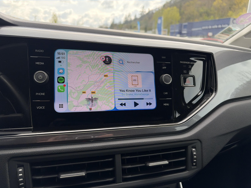 Allumage automatique des projecteurs avec feux de jour à LED et fonction "Coming Home/Leaving Home" / Climatisation automatique tactile "Climatronic" bi-zone avec filtre anti-allergène réglable séparément pour le conducteur et le passager AV / Correcteur électronique de trajectoire ESP avec amplificateur de freinage d'urgence, système d'antiblocage des roues ABS, antipatinage électronique ASR, blocage électronique de différentiel EDS, régulateur électronique de couple d'inertie MSR, aide au démarrage en côte 'Hill-Hold' / Jantes en alliage léger 6,5J x 16" "Palermo" et pneumatiques 195/55 R16 avec écrous antivol / Pack Chrome Intérieur / Park Pilot - Aide au stationnement AV et AR / Pommeau de levier de vitesses et poignée de frein à main en cuir / Projecteurs antibrouillard AV à LED avec éclairage statique d'intersection / Projecteurs IQ.Light - Matrix LED avec feux de jours à LED, clignotants AR défilants et Dynamic Light Assist / Rétroviseur intérieur à réglage jour/nuit automatique / Système de freinage anti multicollision: ce dispositif freine automatiquement le véhicule après un premier choc afin de limiter le risque de multicollision / Système Navigation & Infotainment "Discover Media" avec écran couleur tactile 8?? avec «Services de streaming et radio via Internet» via carte eSIM intégrée : Radionavigation 6 HP 4 x 20 W), Écran couleur tactile 8?? (1240 x 1080 pixels), Système de navigation, Affichage de la carte en 2D et 3D, Trois calculs d?itinéraire possible (rapide, court et économique), Sign Assist? et affichage sur le ?Digital Cockpit? et l?écran du système de radionavigation, Préparation pour ?We Connect? et ?We Connect Plus / 2 interfaces USB-C à l'AV / Accoudoir central AV réglable en longueur avec compartiment de rangement et 2 ports USB-C de recharge AR / Airbags frontaux AV conducteur et passager (Airbag passager désactivable) / Antenne AR de pavillon / App-Connect sans fil - affichage et contrôle via l?écran tactile de la voiture, du contenu, des fonctions et des applications compatibles présents sur le Smartphone (compatibilité avec les systèmes Apple CarPlay, Apple CarPlay sans fil, Android Auto, MirrorLink) / Applications décoratives "Deep Iron" sur le tableau de bord / Appuis lombaires réglables à l'AV / Appuis-tête (3) et ceintures de sécuritéà 3 points (3) sur la banquette AR / Assistant de conduite semi-autonome "Travel Assist" / Aumônières au dos des sièges AV / Avertisseur sonore et lumineux de non-extinction des phares et de non bouclage des ceintures de sécuritéà l'AV et à l'AR / Bacs de rangement dans toutes les portes, à l'AV avec porte-boisson / Baguette lumineuse entre les projecteurs / Baguettes chromées sur le bouclier AV / Banquette et dossier AR asymétriques, rabattables 1/3 et 2/3 avec plancher de coffre à bagages réglable en 2 hauteurs / Boîtiers de rétroviseurs extérieurs et poignées de porte dans la teinte du véhicule / Cache-bagages / Ciel de pavillon couleur céramique / Câble adaptateur USB-C vers USB-A / Digital Cockpit : combiné d'instruments entièrement digital de 8" / Disques de frein à l'AV et freins à tambour à l'AR / Dossier AR non divisé et rabattable / Déflecteur de toit intégré / Eclairage d'ambiance à l'AV / Eclairage de plancher AV / Eclairage du coffre à bagages / Essuie-glaces AV/AR avec commande d'intermittence et lave-glace / Fatigue Detection : système de détection de fatigue du conducteur qui analyse le comportement du conducteur et recommande un temps de repos par l'apparition d'un message visuel et sonore / Filtre à charbon actif avec aspiration d'air frais / Front Assist : système de surveillance périmétrique avec fonction de freinage d?urgence en ville et détection des piétons et cyclistes / Grille de calandre avec baguette chromée / Interface Bluetooth pour téléphone portable / Kit de dépannage en cas de crevaison incluant compresseur 12 V et produit colmatant / Lampes de lecture AV/AR / Lane Assist - Assistant au maintien dans la voie avec correction de trajectoire / Miroirs de courtoisie éclairés dans les pare-soleil pour conducteur et passager AV / Oeillets d'arrimage ISOFIX (dispositif pour fixation de 2 sièges enfants sur les places extérieures de la banquette AR et 1 siège enfant sur le siège passager AV) / Pare-chocs peints dans la couleur de carrosserie / Plafonnier à temporisation à l'AV avec contacteur de portière / Porte-boissons (2) à l'AV / Régulateur de vitesse adaptatif et prédictif ACC avec limiteur de vitesse / Rétroviseur extérieur asphérique côté conducteur / Système "Start-Stop" de coupure-redémarrage du moteur à l'arrêt / Système de récupération de l'énergie en décélération / Tableau de bord avec revêtement moussé en partie supérieure / Tapis de sol AV/AR / Témoin d'alerte pour niveau de liquide lave-glace / Témoins de contrôle et indicateur d'intervalle de révision / Verrouillage centraliséà distance, 2 clés pliantes de radiocommande fournies / Vitres athermiques teintées vertes