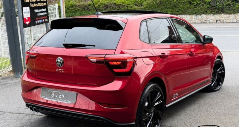Dominique Vivier Automobiles vous propose à la vente cette magnifique Volkswagen Polo GTI Édition 25 : ?? 2.0 TSI 207 ch / 320 Nm ; ?? Boîte automatique DSG ; ? Mise en circulation le 19/05/2025 ; ?? Avec seulement 1 600 km ; ? Édition limitée à 2 500 exemplaires Garantie constructeur jusqu’au 18/05/2029 ou 40 000km et configurée comme suit : Audio - Télécommunications : CarPlay GPS Bluetooth Prise USB Recharge du smartphone à induction Conduite : Châssis surbaissé -15 mm Modes de conduite Drive Select Suspensions pilotées Système d'accès sans clé Démarrage sans clé Limiteur / Régulateur de vitesse adaptatif Pack « Aide à la conduite » Extérieur : Phares IQ Light Matrix Feux arrière à LED Caméra de recul Radar de stationnement AV / AR Toit ouvrant Peinture extérieure Rouge Roi métallisé Jantes 18’’ Adélaïde Intérieur : Sellerie cuir rouge / noir Sièges AV chauffants Digital Cockpit Clim automatique bi-zones Fixations Isofix AV Fixations Isofix AR Véhicule en parfait état, révisé et garanti Véhicule en stock, disponible immédiatement Financement et reprise possible Dominique Vivier Automobiles Mandataire Vente Achat Reprise Crédit Dépôt Vente DVA 127 Rue René Wallard 62700 Bruay-la-Buissière -> À 45 minutes de l’aéroport de Lille-Lesquin -> À 35 minutes de la gare d’Arras -> À 15 minutes de la gare de Béthune Transport assuré par nos soins