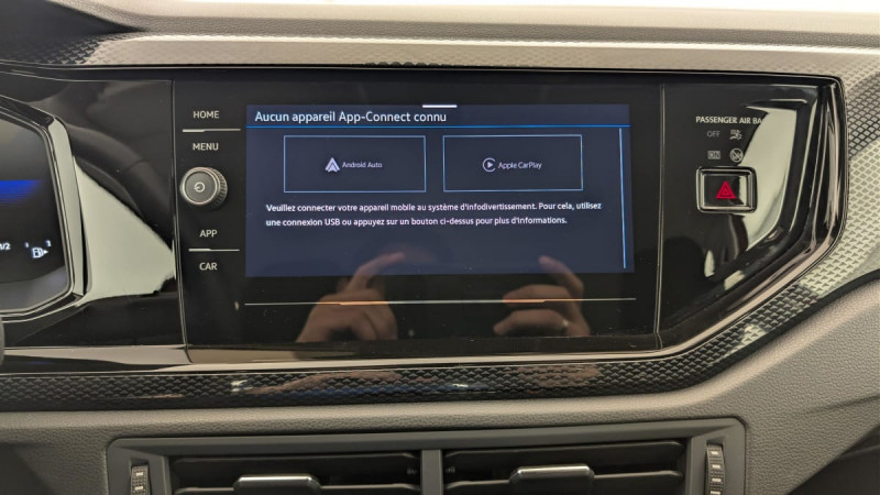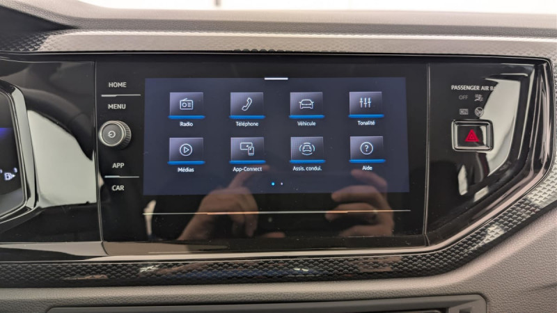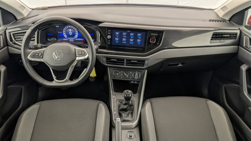 Fatigue Detection : système de détection de fatigue du conducteur qui analyse le comportement du conducteur et recommande un temps de repos par l'apparition d'un message visuel et sonore / Climatisation manuelle "Climatic" / Airbags frontaux AV conducteur et passager (Airbag passager désactivable par clé) / Kit de dépannage en cas de crevaison incluant compresseur 12 V et produit colmatant / Système "Start-Stop" de coupure-redémarrage du moteur à l'arrêt / Allumage automatique des projecteurs avec feux de jour à LED et fonction "Coming Home/Leaving Home" / Oeillets d'arrimage ISOFIX (dispositif pour fixation de 2 sièges enfants sur les places extérieures de la banquette AR et 1 siège enfant sur le siège passager AV) / 2 interfaces USB-C à l'AV / App-Connect sans fil affichage et contrôle via l'écran tactile du véhicule, du contenu, des fonctions et des applications compatibles présents sur le Smartphone (compatibilité avec les systèmes Apple CarPlay et Android Auto). Fonction sans fil uniquement disponible avec Apple CarPlay / Dossier AR non divisé et rabattable / Projecteurs à LED et feux de jour à LED Eco / Jantes en acier 5,5 J x 15" avec enjoliveurs intégraux, pneumatiques 185/65 R15 / Interface Bluetooth pour téléphone mains libres / Front Assist: système de surveillance périmétrique contribuant à la prévention des collisions avec fonction de détection des piétons et des cyclistes. Ce système freine automatiquement le véhicule en cas de détection d'obstacle aussi bien en ville que sur autoroute / Digital Cockpit : combiné d'instruments entièrement digital de 8" / Sellerie en tissu "Polo" / Radio 'Composition' avec écran couleur tactile 8" (définition 400 x 240 pixels) et 4 HP (4 x 20 W) / Park Pilot : aide au stationnement AV/ AR avec signaux d'avertissement acoustiques en cas dobstacle / Lane Assist: assistant de maintien dans la voie qui corrige, dans la limite du système, le mouvement du volant AV que le véhicule dépasse involontairement la bande de roulement / Rétroviseur extérieur asphérique côté conducteur /