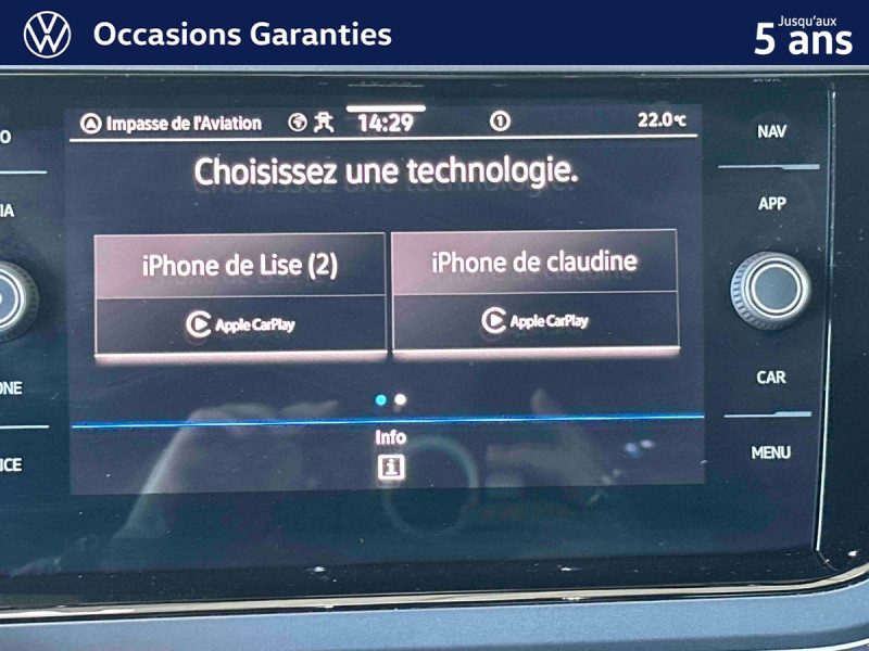 Allumage automatique des projecteurs avec feux de jour à LED et fonction "Coming Home/Leaving Home" / Caméra de recul Rear View avec visualisation de la zone située à l'AR du véhicule sur l'écran de la radionavigation / Climatisation automatique tactile "Climatronic" bi-zone avec filtre anti-allergène réglable séparément pour le conducteur et le passager AV / Correcteur électronique de trajectoire ESP avec amplificateur de freinage d'urgence, système d'antiblocage des roues ABS, antipatinage électronique ASR, blocage électronique de différentiel EDS, régulateur électronique de couple d'inertie MSR, aide au démarrage en côte 'Hill-Hold' / Front Assist: système de surveillance périmétrique contribuant à la prévention des collisions avec fonction de détection des piétons et des cyclistes. Ce système freine automatiquement le véhicule en cas de détection d'obstacle aussi bien en ville que sur autoroute / Jantes en alliage léger 17" 'York' et pneumatiques 215/45 R17 avec écrous antivol / Pack Chrome Intérieur / Park Pilot : aide au stationnement AV/ AR avec signaux d'avertissement acoustiques en cas dobstacle / Pommeau de levier de vitesses et poignée de frein à main en cuir / Projecteurs antibrouillard AV à LED avec éclairage statique d'intersection / Projecteurs IQ.Light - Matrix LED avec feux de jours à LED, clignotants AR défilants et Dynamic Light Assist / Régulateur de vitesse adaptatif et prédictif ACC avec limiteur de vitesse détecte dans les limites du système et à l'aide d'un capteur radar les véhicules qui précèdent et maintient la distance en intervenant sur les freins et l'accélérateur (régulation active, de 0 à 210 km/h ; jusqu'à l'arrêt du véhicule). Le conducteur peut calibrer la distance souhaitée par rapport aux autres automobilistes / Rétroviseur intérieur à réglage jour/nuit automatique / Système de freinage anti multicollision: ce dispositif freine automatiquement le véhicule après un premier choc afin de limiter le risque de multicollision / Système Navigation Discover Media - Écran tactile 8" - Sign Assist : reconnaissance des panneaux de signalisation / 2 interfaces USB-C à l'AV / Accoudoir central AV réglable en longueur avec compartiment de rangement et 2 ports USB-C de recharge AR / Airbags frontaux AV conducteur et passager (Airbag passager désactivable par clé) / Antenne AR de pavillon / App-Connect sans fil affichage et contrôle via l'écran tactile du véhicule, du contenu, des fonctions et des applications compatibles présents sur le Smartphone (compatibilité avec les systèmes Apple CarPlay et Android Auto). Fonction sans fil uniquement disponible avec Apple CarPlay / Applications décoratives "Dark Grey" sur le tableau de bord / Appuis lombaires réglables à l'AV / Appuis-tête (3) et ceintures de sécuritéà 3 points (3) sur la banquette AR / Assistant de conduite semi-autonome "Travel Assist" / Aumônières au dos des sièges AV / Avertisseur sonore et lumineux de non-extinction des phares et de non bouclage des ceintures de sécuritéà l'AV et à l'AR / Bacs de rangement dans toutes les portes, à l'AV avec porte-boisson / Baguette lumineuse entre les projecteurs / Baguettes chromées sur le bouclier AV / Banquette et dossier AR asymétriques, rabattables 1/3 et 2/3 avec plancher de coffre à bagages réglable en 2 hauteurs / Bas de caisse et spoiler spécifiques R-Line / Boîtiers de rétroviseurs extérieurs et poignées de porte dans la teinte du véhicule / Cache-bagages / Calandre spécifique R-Line avec monogramme "R" / Ciel de pavillon Noir / Câble adaptateur USB-C vers USB-A / Digital Cockpit : combiné d'instruments entièrement digital de 8" / Dossier AR non divisé et rabattable / Déflecteur de toit spécifique R-Line / Eclairage d'ambiance à l'AV / Eclairage de plancher AV / Eclairage du coffre à bagages / Essuie-glaces AV/AR avec commande d'intermittence et lave-glace / Fatigue Detection : système de détection de fatigue du conducteur qui analyse le comportement du conducteur et recommande un temps de repos par l'apparition d'un message visuel et sonore / Filtre à charbon actif avec aspiration d'air frais / Grille de calandre avec baguette chromée / Interface Bluetooth pour téléphone mains libres / Kit de dépannage en cas de crevaison incluant compresseur 12 V et produit colmatant / Lampes de lecture AV/AR / Lane Assist: assistant de maintien dans la voie qui corrige, dans la limite du système, le mouvement du volant AV que le véhicule dépasse involontairement la bande de roulement / Miroirs de courtoisie éclairés dans les pare-soleil pour conducteur et passager AV / Oeillets d'arrimage ISOFIX (dispositif pour fixation de 2 sièges enfants sur les places extérieures de la banquette AR et 1 siège enfant sur le siège passager AV) / Pare-chocs AV/AR spécifiques R-Line avec inserts chromés / Plafonnier à temporisation à l'AV avec contacteur de portière / Porte-boissons (2) à l'AV / Préparation pour "VW Connect" et "VW Connect Plus" vous permet d'obtenir des informations sur votre véhicule directement sur votre smartphone. Application totalement gratuite et facile à utiliser. Produit 100% compatible avec votre Volkswagen et garantie constructeur préservée. Aperçu de toutes les données de votre véhicule et des prochaines maintenances à effectuer. Sécurité totale des données grâce à un cryptage / Pédalier en acier inoxydable / Rétroviseur extérieur asphérique côté conducteur / Seuils de porte R-Line / Système "Start-Stop" de coupure-redémarrage du moteur à l'arrêt / Système de récupération de l'énergie en décélération / Tableau de bord avec revêtement moussé en partie supérieure / Tapis de sol AV/AR / Témoin d'alerte pour niveau de liquide lave-glace / Témoins de contrôle et indicateur d'intervalle de révision / Verrouillage centraliséà distance, 2 clés pliantes de radiocommande fournies / Vitres athermiques teint