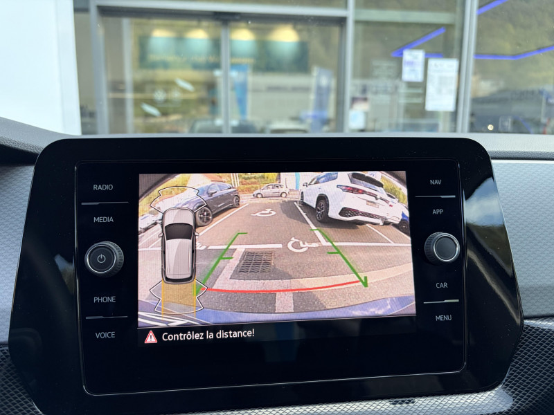 Caméra de recul "Rear view": Plus qu'une caméra de recul, elle affiche des indications visuelles sur l'écran central pour vous faciliter les manoeuvres de recul et de stationnement / Ceintures de sécurité automatiques AV 3 points à enrouleur, réglables en hauteur, avec prétensionneurs / E-call service: Appel d'urgence manuel ou automatique / Jantes alliage léger 6,5Jx17" "Bangalore", pneumatiques 205/55 R17 / Park Pilot: radars d'aide au stationnement AV/AR avec signaux acoustiques en cas d'obstacles / Poignée de frein à main en cuir / Pommeau du levier de vitesse cuir / Projecteurs principaux LED / Rétroviseur intérieur jour/nuit automatique / Système Front Assist avec fonction de secours en ville et détection des piétons: contribuant à la prévention des collisions, ce système freine automatiquement le véhicule en cas de détection d'obstacle aussi bien en ville que sur autoroute / Volant multifonction cuir avec palettes au volant / 2 ports USB-C de recharge à l'AR / 6 HPs / App-Connect sans fil, affichage et contrôle via l'écran tactile de la voiture du contenu, des fonctions et des applications compatibles présents sur le Smartphone (compatibilité avec les systèmes Apple CarPlay et Android Auto). Fonction sans fil uniquement disponible avec Apple CarPlay / Appuis-tête AR (3) et ceintures de sécurité 3 points (3) sur la banquette AR / Assistant de conduite semi-autonome "Travel Assist" / Avertisseur de non bouclage des ceintures de sécurité / Boîte de rangement sous siège passager AV / Correcteur électronique de trajectoire ESP, système d'antiblocage de roues ABS, EDL, EDTC, antipatinage électronique ASR / Câble adaptateur USB-C vers USB-A / Digital Cockpit : combiné d'instruments entièrement digital de 8" / Fatigue Detection : système de détection de fatigue du conducteur qui analyse le comportement du conducteur et recommande un temps de repos par l'apparition d'un message visuel et sonore / Interface téléphone Bluetooth / Keyless Access: Système de verrouillage/déverrouillage sans clé et démarrage avec bouton start/stop / Kit de dépannage : compresseur 12 V et produit d'étanchéité de pneu / Lane Assist: Assistant de maintien de trajectoire qui corrige, dans la limite du système, le mouvement du volant avant que le véhicule dépasse involontairement la bande de roulement. Système actif à partir de 65 km/h / Oeillets d'arrimage ISOFIX (dispositif pour fixation de 2 sièges enfants sur les places extérieures de la banquette AR et 1 siège enfant sur le siège passager AV) / Préparation pour "VW Connect" et "VW Connect Plus" / Rampes de pavillon noires / Siège passager AV rabattable / Système Audio & Infotainment "Ready 2 Discover" avec "Services de streaming et radio via Internet" via carte eSIM intégrée - Ecran couleur tactile 8" et définition 800 x 480 pixels - 6 HP (4x20W) - Affichage de la couverture des albums - Fonction "Intuitive Touch" permettant de faciliter la commande de l'appareil lors de la conduite (zone de sélection élargie) / Système Start/Stop avec dispositif de récupération de l'énergie au freinage / Tapis de sol AV/AR / Témoin d'alerte de niveau de lave glace
