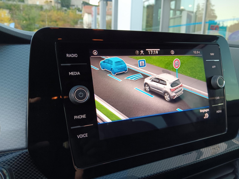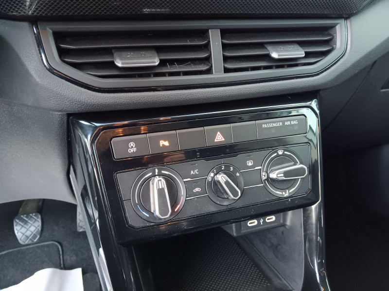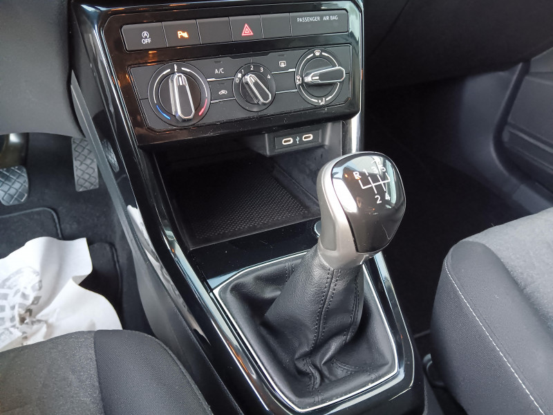 E-call service: Appel d'urgence manuel ou automatique / Jantes en alliage 16" "Nottingham" / Park Pilot: radars d'aide au stationnement AV/AR avec signaux acoustiques en cas d'obstacles / Poignée de frein à main en cuir / Pommeau du levier de vitesse cuir / Projecteurs principaux LED / Rétroviseur intérieur jour/nuit automatique / Système Front Assist avec fonction de secours en ville et détection des piétons: contribuant à la prévention des collisions, ce système freine automatiquement le véhicule en cas de détection d'obstacle aussi bien en ville que sur autoroute - Assistant de changement de voie et de sortie de stationnement avec détecteurs d'angle mort "Side Assist" / 2 interfaces USB-C AV et 2 ports USB-C de recharge AR / 6 HP (4x20W) / App-Connect sans fil, affichage et contrôle via l'écran tactile de la voiture du contenu, des fonctions et des applications compatibles présents sur le Smartphone (compatibilité avec les systèmes Apple CarPlay et Android Auto). Fonction sans fil uniquement disponible avec Apple CarPlay / Appuis-tête AR (3) et ceintures de sécurité 3 points (3) sur la banquette AR / Assistant de conduite semi-autonome "Travel Assist" / Avertisseur de non bouclage des ceintures de sécurité / Boîte de rangement sous siège passager AV / Boîte de vitesse manuelle 5 rapports / Ceintures de sécurité 3 points AV à enrouleur avec prétensionneurs, réglables en hauteur / Correcteur électronique de trajectoire ESP, système d'antiblocage de roues ABS, EDL, EDTC, antipatinage électronique ASR / Digital Cockpit : combiné d'instruments entièrement digital de 8" / Fatigue Detection : système de détection de fatigue du conducteur qui analyse le comportement du conducteur et recommande un temps de repos par l'apparition d'un message visuel et sonore / Interface téléphone Bluetooth / Kit de dépannage : compresseur 12V et produit d'étanchéité de pneu / Lane Assist: Assistant de maintien de trajectoire qui corrige, dans la limite du système, le mouvement du volant avant que le véhicule dépasse involontairement la bande de roulement. Système actif à partir de 65 km/h / Oeillets d'arrimage ISOFIX (dispositif pour fixation de 2 sièges enfants sur les places extérieures de la banquette AR et 1 siège enfant sur le siège passager AV) / Préparation pour "VW Connect" et "VW Connect Plus" / Rampes de pavillon noires / Side Assist (assistance de changement de voie) / Siège passager AV rabattable / Système Audio & Infotainment "Ready 2 Discover" avec "Services de streaming et radio via Internet" via carte eSIM intégrée - Ecran couleur tactile 8" et définition 800 x 480 pixels - 6 HP (4x20W) - Affichage de la couverture des albums - Fonction "Intuitive Touch" permettant de faciliter la commande de l'appareil lors de la conduite (zone de sélection élargie) / Système Start/Stop avec dispositif de récupération de l'énergie au freinage / Tapis de sol AV/AR / Témoin d'alerte de niveau de lave glace