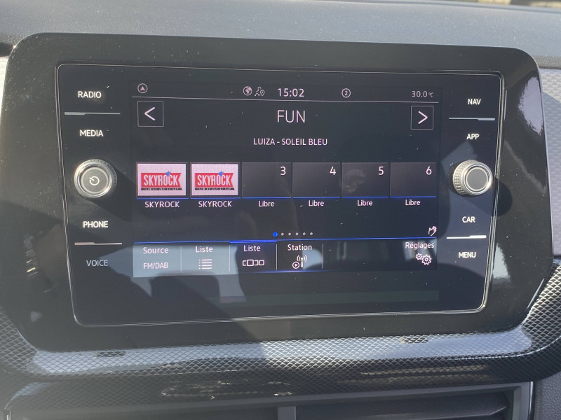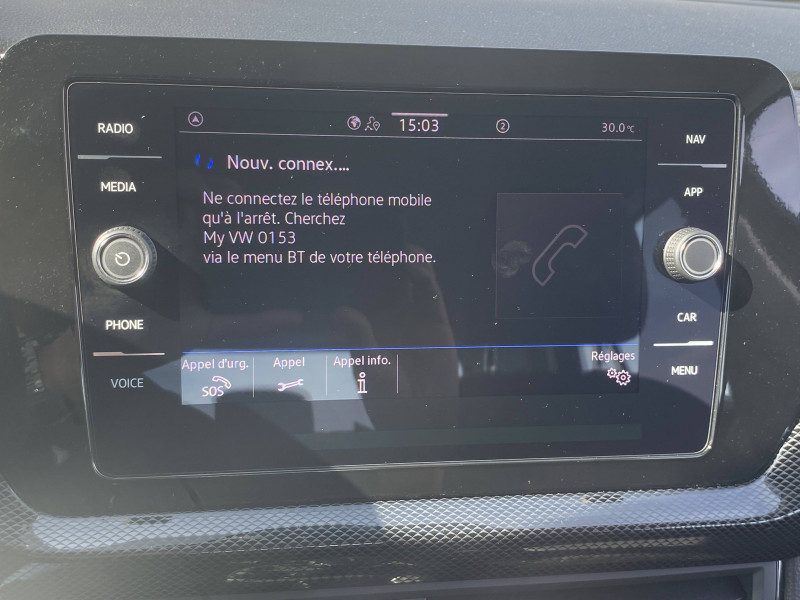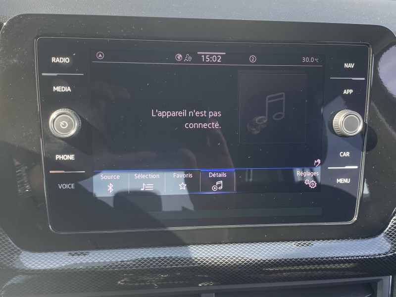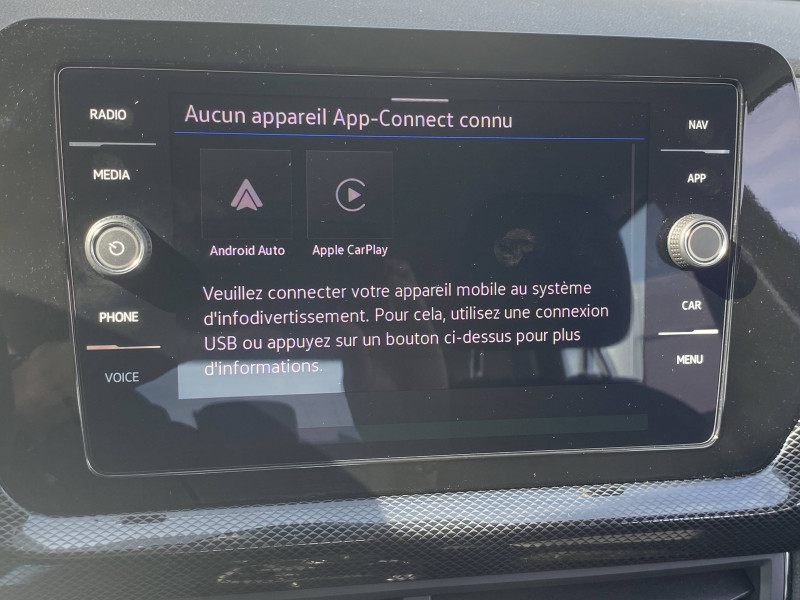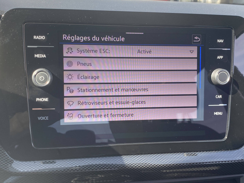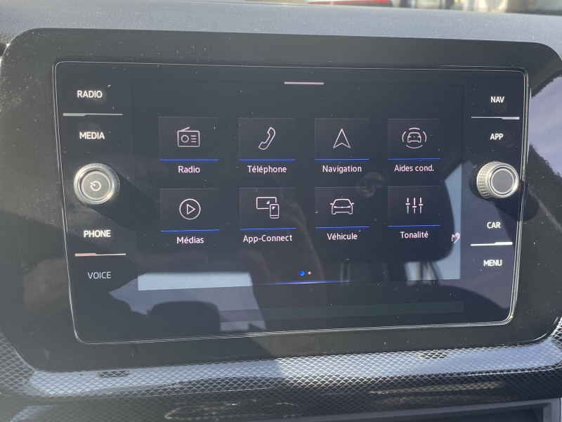 Caméra de recul "Rear view": Plus qu'une caméra de recul, elle affiche des indications visuelles sur l'écran central pour vous faciliter les manoeuvres de recul et de stationnement / Ceintures de sécurité automatiques AV 3 points à enrouleur, réglables en hauteur, avec prétensionneurs / Climatisation automatique tactile "Climatronic" bi-zone avec filtre anti-allergène réglable séparément pour le conducteur et le passager AV / E-call service: Appel d'urgence manuel ou automatique / Jantes alliage léger 6J x 16 "Nottingham" argent, pneumatiques 205/60 R16 / Park Pilot: radars d'aide au stationnement AV/AR avec signaux acoustiques en cas d'obstacles / Poignée de frein à main en cuir / Pommeau du levier de vitesse cuir / Projecteurs principaux LED / Radionavigation 6 HP AV/AR (4x20W) avec: Système Navigation & Infotainment "Discover Media" avec Services de streaming et radio via Internet via carte eSIM intégrée Écran couleur tactile 8" haute résolution (800x480) Double tuner FM Affichage de la plage de lecture, du logo de la station à l'écoute Lecture des formats audio MP3 Port USB-C compatible Apple Affichage de la carte en 2D Affichage des logos des Points d'intéret, des limitations de vitesse, des zones de danger, etc. Interface Bluetooth avec fonction Audio Streaming A2DP Préparation pour "VW Connect" et "VW Connect Plus" / Rétroviseur intérieur jour/nuit automatique / Système Front Assist avec fonction de secours en ville et détection des piétons: contribuant à la prévention des collisions, ce système freine automatiquement le véhicule en cas de détection d'obstacle aussi bien en ville que sur autoroute / Volant multifonction cuir avec palettes au volant / 2 ports USB-C de recharge à l'AR / App-Connect sans fil, affichage et contrôle via l'écran tactile de la voiture du contenu, des fonctions et des applications compatibles présents sur le Smartphone (compatibilité avec les systèmes Apple CarPlay et Android Auto). Fonction sans fil uniquement disponible avec Apple CarPlay / Appuis lombaires réglables AV / Appuis-tête AR (3) et ceintures de sécurité 3 points (3) sur la banquette AR / Assistant de conduite semi-autonome "Travel Assist" / Avertisseur de non bouclage des ceintures de sécurité / Boîte de rangement sous siège passager AV / Correcteur électronique de trajectoire ESP, système d'antiblocage de roues ABS, EDL, EDTC, antipatinage électronique ASR / Câble adaptateur USB-C vers USB-A / Digital Cockpit : combiné d'instruments entièrement digital de 8" / Fatigue Detection : système de détection de fatigue du conducteur qui analyse le comportement du conducteur et recommande un temps de repos par l'apparition d'un message visuel et sonore / Lane Assist: Assistant de maintien de trajectoire qui corrige, dans la limite du système, le mouvement du volant avant que le véhicule dépasse involontairement la bande de roulement. Système actif à partir de 65 km/h / Oeillets d'arrimage ISOFIX (dispositif pour fixation de 2 sièges enfants sur les places extérieures de la banquette AR et 1 siège enfant sur le siège passager AV) / Rampes de pavillon noires / Roue de secours à encombrement réduit, outillage de bord et cric (vitesse limitée à 80 km/h) / Siège passager AV rabattable / Système Start/Stop avec dispositif de récupération de l'énergie au freinage / Tapis de sol AV/AR / Témoin d'alerte de niveau de lave glace