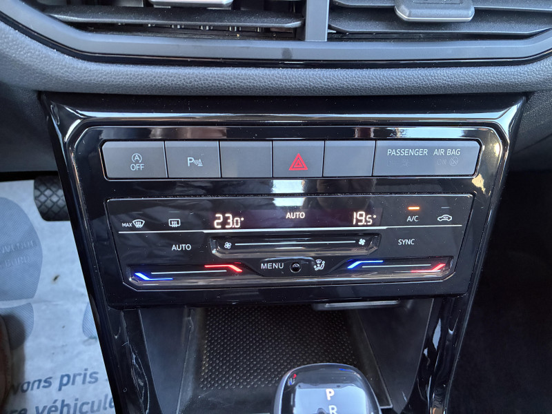 Caméra de recul "Rear view": Plus qu'une caméra de recul, elle affiche des indications visuelles sur l'écran central pour vous faciliter les manoeuvres de recul et de stationnement / Ceintures de sécurité automatiques AV 3 points à enrouleur, réglables en hauteur, avec prétensionneurs / Climatisation automatique tactile "Climatronic" bi-zone avec filtre anti-allergène réglable séparément pour le conducteur et le passager AV / E-call service: Appel d'urgence manuel ou automatique / Jantes alliage léger 6J x 16 "Nottingham" argent, pneumatiques 205/60 R16 / Park Pilot: radars d'aide au stationnement AV/AR avec signaux acoustiques en cas d'obstacles / Poignée de frein à main en cuir / Pommeau du levier de vitesse cuir / Projecteurs principaux LED / Radionavigation 6 HP AV/AR (4x20W) avec: Système Navigation & Infotainment "Discover Media" avec Services de streaming et radio via Internet via carte eSIM intégrée Écran couleur tactile 8" haute résolution (800x480) Double tuner FM Affichage de la plage de lecture, du logo de la station à l'écoute Lecture des formats audio MP3 Port USB-C compatible Apple Affichage de la carte en 2D Affichage des logos des Points d'intéret, des limitations de vitesse, des zones de danger, etc. Interface Bluetooth avec fonction Audio Streaming A2DP Préparation pour "VW Connect" et "VW Connect Plus" / Rétroviseur intérieur jour/nuit automatique / Système Front Assist avec fonction de secours en ville et détection des piétons: contribuant à la prévention des collisions, ce système freine automatiquement le véhicule en cas de détection d'obstacle aussi bien en ville que sur autoroute / Volant multifonction cuir avec palettes au volant / 2 ports USB-C de recharge à l'AR / App-Connect sans fil, affichage et contrôle via l'écran tactile de la voiture du contenu, des fonctions et des applications compatibles présents sur le Smartphone (compatibilité avec les systèmes Apple CarPlay et Android Auto). Fonction sans fil uniquement disponible avec Apple CarPlay / Appuis lombaires réglables AV / Appuis-tête AR (3) et ceintures de sécurité 3 points (3) sur la banquette AR / Assistant de conduite semi-autonome "Travel Assist" / Assistant de maintien sur la voie Lane Assist / Avertisseur de non bouclage des ceintures de sécurité / Boîte de rangement sous siège passager AV / Correcteur électronique de trajectoire ESP, système d'antiblocage de roues ABS, EDL, EDTC, antipatinage électronique ASR / Câble adaptateur USB-C vers USB-A / Digital Cockpit : combiné d'instruments entièrement digital de 8" / Fatigue Detection : système de détection de fatigue du conducteur qui analyse le comportement du conducteur et recommande un temps de repos par l'apparition d'un message visuel et sonore / Lane Assist: Assistant de maintien de trajectoire qui corrige, dans la limite du système, le mouvement du volant avant que le véhicule dépasse involontairement la bande de roulement. Système actif à partir de 65 km/h / Oeillets d'arrimage ISOFIX (dispositif pour fixation de 2 sièges enfants sur les places extérieures de la banquette AR et 1 siège enfant sur le siège passager AV) / Rampes de pavillon noires / Roue de secours à encombrement réduit, outillage de bord et cric (vitesse limitée à 80 km/h) / Siège passager AV rabattable / Système Start/Stop avec dispositif de récupération de l'énergie au freinage / Tapis de sol AV/AR / Témoin d'alerte de niveau de lave glace