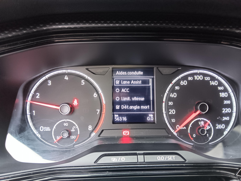 E-call service: Appel d'urgence manuel ou automatique / Jantes alliage léger 6Jx16 "Belmont" 16" et pneumatiques 205/60 R16 / Poignée de frein à main gainée de cuir / Pommeau du levier de vitesse cuir / Régulateur de vitesse adaptatif ACC : détecte dans les limites du systéme et l'aide d'un capteur radar les véhicules qui précèdent et maintient la distance en intervenant sur les freins et l'accélérateur (régulation active de 30 à 160 km/h pour boîte manuelle, de 0 à 160 km/h pour boîte DSG ; jusqu'à l'arrêt du véhicule uniquement avec DSG). Le conducteur peut calibrer la distance souhaitée par rapport aux autres automobilistes selon quatre niveaux / Rétroviseur intérieur jour/nuit automatique / Rétroviseurs extérieurs rabattables électriquement avec abaissement automatique de la glace du rétroviseur extérieur passager lors du passage de la marche arrière. / Système Navigation & Infotainment "Discover Media" Radionavigation 6 haut-parleurs avant/arrière (4 x 20 W) comprenant : Ecran couleur tactile 8 haute résolution (800x480), Double tuner FM pour une réception radio de qualité optimale, affichage de la plage de lecture, du logo de la station à l'écoute, lecture des formats audio MP3, port USB-C compatible Apple®, affichage de la carte en 2D, interface Bluetooth® mains-libres pour téléphone portable. / 2 prise USB (type C) à l'AR de l'accoudoirs AV / 6 HP / Accès au concessionnaire Volkswagen le plus proche / Aperçu de toutes les données de votre véhicule et des prochaines maintenances à effectuer / Application Volkswagen Connect / Appuis lombaire aux sièges AV / Appuis-tête (3) et ceintures de sécuritéà 3 points (3) sur la banquette AR / Aumônières au dos des sièges AV / Avertisseur de non bouclage des ceintures de sécurité AV et AR / Boîte de rangement sous le siège passager AV / Ceintures de sécurité AV 3 points à enrouleur réglables en hauteur avec prétensionneurs / Correcteur électronique de trajectoire ESP, système d'antiblocage de roues ABS, EDL, EDTC, antipatinage électronique ASR et stabilisation de la remorque / Câble adaptateur USB-C vers USB-A / Détecteur d'angle mort Blind Spot Pour vous guider dans les changements de voie, il signale par des indications visuelles dans les rétroviseurs extérieurs lorsqu'un véhicule se trouve dans votre angle mort ou à moins de 50 mètres derrière vous. / Fatigue Detection : système de détection de fatigue du conducteur qui analyse le comportement du conducteur et recommande un temps de repos par l'apparition d'un message visuel et sonore / Freins à disque à l'AV / Freins à tambour à l' AR / Hill-Hold : Assistant au démarrage en côte grâce à une fonction anti-recul / Insert décoratif de tableau de bord Pineapple / Interface Bluetooth pour téléphone portable / Liseré chromé sur le bas de la calandre / Miroirs de courtoisie dans les pare-soleils / Oeillets d'arrimage ISOFIX (dispositif pour fixation de 2 sièges enfants sur les places extérieures de la banquette AR et 1 siège enfant sur le siège passager AV) / Pare-chocs peints dans la couleur de carrosserie / Plancher de chargement variable en 2 positions / Pre Safe Assist / Projecteurs antibrouillard AV avec éclairage statique d'intersection / Rampes de pavillon noires / Roue de secours à encombrement réduit avec cric / Rétroviseurs extérieurs et poignées de porte couleur carrosserie / Siège passager AV rabattable / Système "Start-Stop" avec dispositif de récupération de l'énergie au freinage / Système Front Assist avec fonction de secours en ville et détection des piétons / Sécurité totale des données grâce à un cryptage / Tapis de sol textile AV et AR / Verrouillage centraliséà distance, 2 clés pliantes de radiocommande fournies