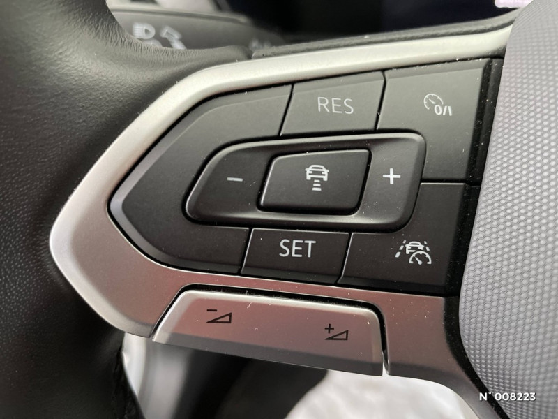 Rampes de pavillon noires / Rétroviseur intérieur jour/nuit automatique / Siège passager AV rabattable / Système Front Assist avec fonction de secours en ville et détection des piétons: contribuant à la prévention des collisions, ce système freine automatiquement le véhicule en cas de détection d'obstacle aussi bien en ville que sur autoroute / Système Audio & Infotainment "Ready 2 Discover" avec "Services de streaming et radio via Internet" via carte eSIM intégrée - Ecran couleur tactile 8" et définition 800 x 480 pixels - 6 HP (4x20W) - Affichage de la couverture des albums - Fonction "Intuitive Touch" permettant de faciliter la commande de l'appareil lors de la conduite (zone de sélection élargie) / Système Start/Stop avec dispositif de récupération de l'énergie au freinage / Témoin d'alerte de niveau de lave glace / Tapis de sol AV/AR / Correcteur électronique de trajectoire ESP, système d'antiblocage de roues ABS, EDL, EDTC, antipatinage électronique ASR / E-call service: Appel d'urgence manuel ou automatique / Digital Cockpit : combiné d'instruments entièrement digital de 8" / Interface téléphone Bluetooth / Fatigue Detection : système de détection de fatigue du conducteur qui analyse le comportement du conducteur et recommande un temps de repos par l'apparition d'un message visuel et sonore / Keyless Access: Système de verrouillage/déverrouillage sans clé et démarrage avec bouton start/stop / Jantes alliage léger 6,5Jx17" "Bangalore", pneumatiques 205/55 R17 / Lane Assist: Assistant de maintien de trajectoire qui corrige, dans la limite du système, le mouvement du volant avant que le véhicule dépasse involontairement la bande de roulement. Système actif à partir de 65 km/h / Kit de dépannage : compresseur 12 V et produit d'étanchéité de pneu / Oeillets d'arrimage ISOFIX (dispositif pour fixation de 2 sièges enfants sur les places extérieures de la banquette AR et 1 siège enfant sur le siège passager AV) / Park Pilot: radars d'aide au stationnement AV/AR avec signaux acoustiques en cas d'obstacles / Projecteurs principaux LED / Pommeau du levier de vitesse cuir / Poignée de frein à main en cuir / Peinture unie / Préparation pour "VW Connect" et "VW Connect Plus" / 2 ports USB-C de recharge à l'AR / 6 HPs / Appuis-tête AR (3) et ceintures de sécurité 3 points (3) sur la banquette AR / App-Connect sans fil, affichage et contrôle via l'écran tactile de la voiture du contenu, des fonctions et des applications compatibles présents sur le Smartphone (compatibilité avec les systèmes Apple CarPlay et Android Auto). Fonction sans fil uniquement disponible avec Apple CarPlay / Avertisseur de non bouclage des ceintures de sécurité / Assistant de conduite semi-autonome "Travel Assist" / Câble adaptateur USB-C vers USB-A / Boîte de rangement sous siège passager AV / Caméra de recul "Rear view": Plus qu'une caméra de recul, elle affiche des indications visuelles sur l'écran central pour vous faciliter les manoeuvres de recul et de stationnement / Ceintures de sécurité automatiques AV 3 points à enrouleur, réglables en hauteur, avec prétensionneurs