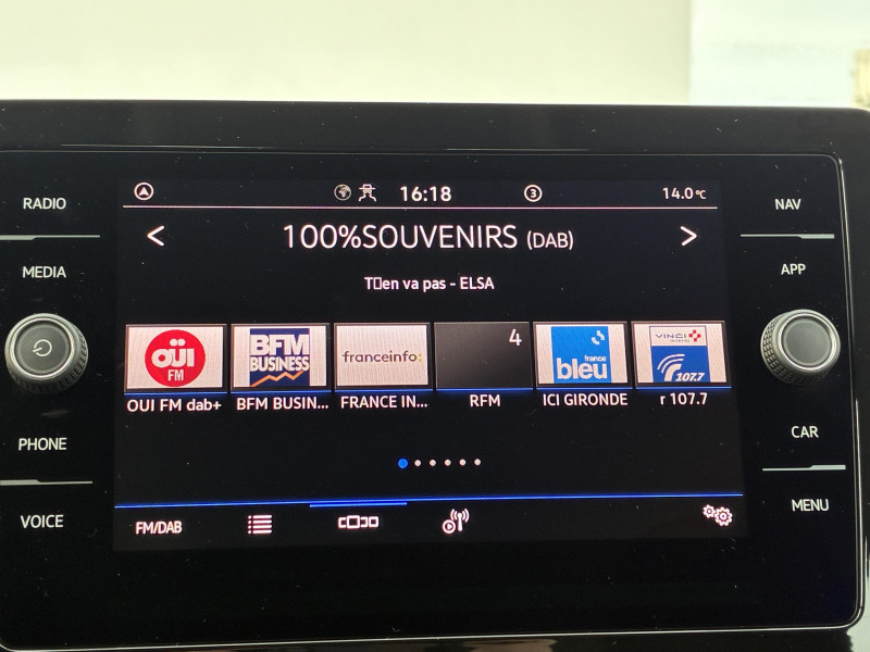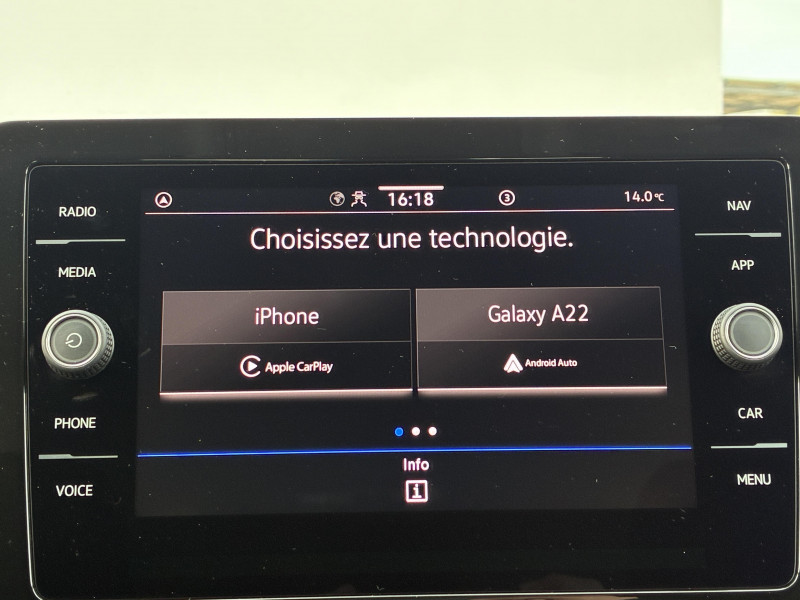 Caméra de recul "Rear view": Plus qu'une caméra de recul, elle affiche des indications visuelles sur l'écran central pour vous faciliter les manoeuvres de recul et de stationnement / Ceintures de sécurité automatiques AV 3 points à enrouleur, réglables en hauteur, avec prétensionneurs / Climatisation automatique tactile "Climatronic" bi-zone avec filtre anti-allergène réglable séparément pour le conducteur et le passager AV / E-call service: Appel d'urgence manuel ou automatique / Jantes alliage léger 6J x 16 "Nottingham" argent, pneumatiques 205/60 R16 / Park Pilot: radars d'aide au stationnement AV/AR avec signaux acoustiques en cas d'obstacles / Poignée de frein à main en cuir / Pommeau du levier de vitesse cuir / Projecteurs principaux LED / Radionavigation 6 HP AV/AR (4x20W) avec: Système Navigation & Infotainment "Discover Media" avec Services de streaming et radio via Internet via carte eSIM intégrée Écran couleur tactile 8" haute résolution (800x480) Double tuner FM Affichage de la plage de lecture, du logo de la station à l'écoute Lecture des formats audio MP3 Port USB-C compatible Apple Affichage de la carte en 2D Affichage des logos des Points d'intéret, des limitations de vitesse, des zones de danger, etc. Interface Bluetooth avec fonction Audio Streaming A2DP Préparation pour "VW Connect" et "VW Connect Plus" / Rétroviseur intérieur jour/nuit automatique / Système Front Assist avec fonction de secours en ville et détection des piétons: contribuant à la prévention des collisions, ce système freine automatiquement le véhicule en cas de détection d'obstacle aussi bien en ville que sur autoroute / Volant multifonction cuir avec palettes au volant / 2 ports USB-C de recharge à l'AR / App-Connect sans fil, affichage et contrôle via l'écran tactile de la voiture du contenu, des fonctions et des applications compatibles présents sur le Smartphone (compatibilité avec les systèmes Apple CarPlay et Android Auto). Fonction sans fil uniquement disponible avec Apple CarPlay / Appuis lombaires réglables AV / Appuis-tête AR (3) et ceintures de sécurité 3 points (3) sur la banquette AR / Assistant de conduite semi-autonome "Travel Assist" / Avertisseur de non bouclage des ceintures de sécurité / Boîte de rangement sous siège passager AV / Correcteur électronique de trajectoire ESP, système d'antiblocage de roues ABS, EDL, EDTC, antipatinage électronique ASR / Câble adaptateur USB-C vers USB-A / Digital Cockpit : combiné d'instruments entièrement digital de 8" / Fatigue Detection : système de détection de fatigue du conducteur qui analyse le comportement du conducteur et recommande un temps de repos par l'apparition d'un message visuel et sonore / Lane Assist: Assistant de maintien de trajectoire qui corrige, dans la limite du système, le mouvement du volant avant que le véhicule dépasse involontairement la bande de roulement. Système actif à partir de 65 km/h / Oeillets d'arrimage ISOFIX (dispositif pour fixation de 2 sièges enfants sur les places extérieures de la banquette AR et 1 siège enfant sur le siège passager AV) / Rampes de pavillon noires / Roue de secours à encombrement réduit, outillage de bord et cric (vitesse limitée à 80 km/h) / Siège passager AV rabattable / Système Start/Stop avec dispositif de récupération de l'énergie au freinage / Tapis de sol AV/AR / Témoin d'alerte de niveau de lave glace