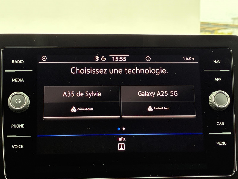 Caméra de recul "Rear view": Plus qu'une caméra de recul, elle affiche des indications visuelles sur l'écran central pour vous faciliter les manoeuvres de recul et de stationnement / Ceintures de sécurité automatiques AV 3 points à enrouleur, réglables en hauteur, avec prétensionneurs / E-call service: Appel d'urgence manuel ou automatique / Jantes alliage léger 6,5Jx17" "Bangalore", pneumatiques 205/55 R17 / Park Pilot: radars d'aide au stationnement AV/AR avec signaux acoustiques en cas d'obstacles / Poignée de frein à main en cuir / Pommeau du levier de vitesse cuir / Projecteurs principaux LED / Rétroviseur intérieur jour/nuit automatique / Système Front Assist avec fonction de secours en ville et détection des piétons: contribuant à la prévention des collisions, ce système freine automatiquement le véhicule en cas de détection d'obstacle aussi bien en ville que sur autoroute / Volant multifonction cuir avec palettes au volant / 2 ports USB-C de recharge à l'AR / 6 HPs / App-Connect sans fil: affichage et contrôle via l'écran tactile de la voiture, du contenu, des fonctions et des applications compatibles présents sur le Smartphone (compatibilité avec les systèmes Apple CarPlay et Android Auto). Fonction sans fil uniquement disponible avec Apple CarPlay / Appuis-tête AR (3) et ceintures de sécurité 3 points (3) sur la banquette AR / Assistant de conduite semi-autonome "Travel Assist" / Avertisseur de non bouclage des ceintures de sécurité / Boîte de rangement sous siège passager AV / Correcteur électronique de trajectoire ESP, système d'antiblocage de roues ABS, EDL, EDTC, antipatinage électronique ASR / Câble adaptateur USB-C vers USB-A / Digital Cockpit : combiné d'instruments entièrement digital de 8" / Fatigue Detection : système de détection de fatigue du conducteur qui analyse le comportement du conducteur et recommande un temps de repos par l'apparition d'un message visuel et sonore / Interface téléphone Bluetooth / Keyless Access: Système de verrouillage/déverrouillage sans clé et démarrage avec bouton start/stop / Kit de dépannage : compresseur 12 V et produit d'étanchéité de pneu / Lane Assist: Assistant de maintien de trajectoire qui corrige, dans la limite du système, le mouvement du volant avant que le véhicule dépasse involontairement la bande de roulement. Système actif à partir de 65 km/h / Oeillets d'arrimage ISOFIX (dispositif pour fixation de 2 sièges enfants sur les places extérieures de la banquette AR et 1 siège enfant sur le siège passager AV) / Préparation pour "VW Connect" et "VW Connect Plus" / Rampes de pavillon noires / Siège passager AV rabattable / Système Audio & Infotainment "Ready 2 Discover" avec "Services de streaming et radio via Internet" via carte eSIM intégrée - Ecran couleur tactile 8" et définition 800 x 480 pixels - 6 HP (4x20W) - Affichage de la couverture des albums - Fonction "Intuitive Touch" permettant de faciliter la commande de l'appareil lors de la conduite (zone de sélection élargie) / Système Start/Stop avec dispositif de récupération de l'énergie au freinage / Tapis de sol AV/AR / Témoin d'alerte de niveau de lave glace