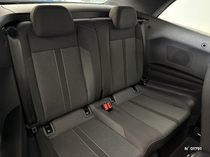 App-Connect sans fil affichage et contrôle via l'écran tactile du véhicule, du contenu, des fonctions et des applications compatibles présents sur le Smartphone (compatibilité avec les systèmes Apple CarPlay et Android Auto). / Application décorative Gris Etain métallisé pour tableau de bord / Tapis de sol AV/AR / Travel Assist : Assistant de conduite semi-autonome / Préparation pour "VW Connect" vous permet d¿obtenir des informations sur votre véhicule directement sur votre smartphone. Accès au concessionnaire Volkswagen le plus proche, Aperçu de toutes les données de votre véhicule et des prochaines maintenances à effectuer, Application totalement gratuite et facile à utiliser, Produit 100% compatible avec votre Volkswagen et garantie constructeur préservée, Sécurité totale des données grâce à un cryptage / Projecteurs AV LED et feux de jour circulaires à LED / Rétroviseurs extérieurs à réglage, rabattement et dégivrage électriques, avec fonction mémoire / Sellerie en tissu Tracks 2 / Système de détection de la signalisation routière / Système de freinage automatique en cas de détection d'obstacle Front Assist + Freinage d'urgence en ville / Système de protection proactive des occupants avertisseur de non bouclage des ceintures de sécuritéà l'AV et à l'AR / Système Navigation & Infotainment "Discover Media" avec Services de streaming et radio via Internet, via carte eSIM intégrée / Tableau de bord moussé / 2 interfaces USB C à l'AV, 2 prises de chargement USB C dans la console centrale AR / 6 HPs / Volant multifonction capacitif permet de vérifier que le conducteur a les mains sur le volant / Poignées de portes et rétroviseurs extérieurs dans la teinte de la carrosserie / Pare-chocs AV avec sabot argent / Park Assist - Assistance au stationnement / Partie inférieure de porte en noire avec baguette chromée / Peinture unie avec capote noire en tissu / Applications en chrome sur commandes rotative d'éclairage, de réglage des rétroviseurs et des lève-glaces / Appuis lombaires réglable électriquement AV / Appuis-tête AR (3) et ceintures de sécurité 3 points (3) sur la banquette AR / Assistant changement voie Side Assist / Assistant de maintien de voie Lane Assist Pour prévenir tout risque liéà d'inattention ou de l'endormissement, il peut détecter, à partir de 60 km/h, si votre véhicule quitte involontairement sa propre voie et corrige la trajectoire par une action sur la direction. / Avertisseur de non bouclage des ceintures de sécurité / Blind Spot Detection: Aide au changement de file par détection dans l'angle mort / Blocs de feux AR à LED / Boîte de vitesse automatique (DSG7) / Câble adaptateur USB-C vers USB-A / Capote électrohydraulique / Capote tissu / Ceintures de sécurité AV 3 points, à enrouleur avec prétensionneurs, réglables en hauteur / Correcteur électronique de trajectoire ESP, système d'antiblocage de roues ABS, EDL, EDTC, antipatinage électronique ASR et stabilisation de la remorque / Détecteur d¿angle mort Blind Spot Pour vous guider dans les changements de voie, il signale par des indications visuelles dans les rétroviseurs extérieurs lorsqu¿un véhicule se trouve dans votre angle mort ou à moins de 50 mètres derrière vous. / Diffuseur AR avec insert argent / Digital Cockpit : combiné d'instruments digital entièrement digital / Dispositif start/stop de mise en veille avec récupération de l'énergie au freinage / Eclairage intérieur d'ambiance blanc / Emergency Assist / Fatigue Detection : système de détection de fatigue du conducteur qui analyse le comportement du conducteur et recommande un temps de repos par l'apparition d'un message visuel et sonore / Filet anti-remous / Frein de stationnement électromécanique avec fonction d'immobilisation en pente "Auto Hold" et assistant de démarrage en côte / Interface téléphone Bluetooth / Jantes en alliage léger 17" Johannesburg et pneumatiques 215/55 R17 / Keyless Access sans SAFELOCK: système de fermeture et de démarrage sans clé / Kit de dépannage : compresseur 12 V et produit d'étanchéité de pneu / Light Assist - Activation ou désactivation automatique des feux de route / Miroirs de courtoisie éclairés dans les pare-soleils / Oeillets d'arrimage ISOFIX (dispositif pour fixation de 2 sièges-enfants sur la banquette AR) / Pack Hiver Volant chauffant, Sièges AV chauffants, Témoin d'alerte pour niveau de liquide de lave-glace / Pack Visibilité Allumage automatique des feux avec fonction 'Coming home / Leaving home', Rétroviseur intérieur jour/nuit automatique, Capteur de pluie avec essuie-glace automatique