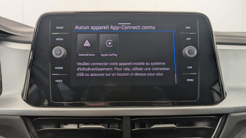 Projecteurs à LED pour feux de croisement et de route / Fatigue Detection : système de détection de fatigue du conducteur qui analyse le comportement du conducteur et recommande un temps de repos par l'apparition d'un message visuel et sonore / Kit de dépannage : compresseur 12 V et produit d'étanchéité de pneu / Système Start/Stop avec récupération d'énergie au freinage / Oeillets d'arrimage ISOFIX (dispositif pour fixation de 2 sièges-enfants sur la banquette AR) / Front Assist avec fonction de secours en ville et détecteur de piéton / Frein de stationnement électromécanique avec fonction d'immobilisation en pente "Auto Hold" et assistant de démarrage en côte / Light Assist : Régulation automatique des feux de route / Lane Assist - Assistant au maintien dans la voie avec correction de trajectoire / App-Connect sans fil - affichage et contrôle via l?écran tactile de la voiture, du contenu, des fonctions et des applications compatibles présents sur le Smartphone (compatibilité avec les systèmes Apple CarPlay, Apple CarPlay sans fil, Android Auto, MirrorLink). Seuls les contenus validés et utilisables en «main libre» peuvent fonctionner. / Essuie-glaces AV/AR avec commande d'intermittence et lave-glace / Digital Cockpit : combiné d'instruments digital 8" / Système de détection de la signalisation routière / Climatisation automatique tactile Climatronic bi-zone avec filtre anti-allergène, réglable séparément pour le conducteur et le passager AV / Interface Bluetooth pour téléphone mains libres / Keyless Access: Système de verrouillage/dévérrouillage sans clé et démarrage avec bouton Start/Stop / Système d'aide au stationnement - signaux d?avertissement en cas d´obstacles AV et AR / 2 interfaces USB-C AV et 2 ports USB-C de recharge AR / ACC : Le Régulateur de vitesse adaptatif avec limiteur de vitesse (ACC) / Accoudoir central à l'AV réglable en longueur, avec compartiment de rangement / Sellerie en tissu "Tracks Uni new" Noir Titane / Gris / Insert argent sur le haut des vitres, allant des portières AV jusqu'à l'AR du véhicule / Système Audio & Infotainment Ready 2 Discover avec Services de streaming et radio via Internet, via carte eSIM intégrée avec écran tactile 8 / Park Assist - assistant aux manoeuvres de stationnement y compris système d?aide au stationnement avec signaux d?avertissement en cas d?obstacles à l?AV et à l?AR / Pack Visibilité : Rétroviseur intérieur jour/nuit automatique Allumage automatique des feux avec fonctions "Coming Home - Leaving Home" Capteur de pluie avec essuie-glace automatique / Rampes de pavillon noires /