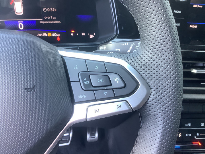 2 interfaces USB-C AV et 2 ports USB-C de recharge AR / 2 lampes de lecture a l'AV / ACC : Le Regulateur de vitesse adaptatif avec limiteur de vitesse (ACC) / Accoudoir central a l'AV reglable en longueur, avec compartiment de rangement / App-Connect sans fil / Application decorative de tableau de bord ""Piano Noir"" brillante / Appuis-tête AR (3) et ceintures de sécurité 3 points (3) sur la banquette AR / Avertisseur de non bouclage des ceintures de securite AV et AR / Boîte de rangement sous le siège passager AV / Camera de recul Rear view avec visualisation de la zone situee a l'AR du vehicule / Chassis Sport: Direction progressive / Ciel de pavillon noir / Climatisation automatique tactile Climatronic bi-zone avec filtre anti-allergene, reglable / Combiné d'instrumentalisation entièrement digital 'Digital Cockpit' / Compartiment de rangement pour manuel d'utilisation sous siege conducteur / Correcteur electronique de trajectoire ESP, systeme d'antiblocage de roues ABS, EDL, EDTC, / Emergency Assist / Essuie-glaces AV/AR avec commande d'intermittence et lave-glace / Fatigue Detection : systeme de detection de fatigue du conducteur qui analyse le comportement du / Feux AR de brouillard des 2 cotes, feux de recul des 2 cotes / Frein de stationnement electromecanique avec fonction d'immobilisation en pente ""Auto Hold"" et / Front Assist avec fonction de secours en ville et detecteur de pieton / Insert argent sur le haut des vitres / Insert argent sur le haut des vitres, allant des portieres AV jusqu'a l'AR du vehicule / Interface Bluetooth pour telephone mains libres / Keyless Access: Système de verrouillage/déverrouillage sans clé et démarrage avec bouton start/stop / Lampes de lecture AV/AR / Lane Assist - Assistant au maintien dans la voie avec correction de trajectoire / Light Assist : Regulation automatique des feux de route / Logo R-Line brode sur les sieges AV / Logo R-Line sur la calandre et sur les ailes / Pack ""Aide a la conduite IQ.DRIVE"" / Pack Aide a la Conduite / Pack Visibilité / Pack ?Aide a la conduite IQ.DRIVE / Pare chocs AR spécifiques R-Line dans la couleur carrosserie / Pare chocs AV spécifique R-Line dans la couleur carrosserie / Park Assist - Assistance au stationnement / Park Assist - assistant aux manoeuvres de stationnement / Partie exterieure et appuie-tete bi-matiere ArtVelours et surpiques en Gris / Partie exterieure et appuie-tete en similicuir et surpiques en Gris / Pedalier en acier inoxydable brosse / Plancher de coffre a bagages reglable en hauteur et amovible / Poignées de portes et rétroviseurs extérieurs dans la teinte de la carrosserie / Preparation pour ""VW Connect"" / Projecteurs a LED Plus : projecteurs LED haute performance avec feux de jour a LED / Projecteurs antibrouillard AV avec éclairage statique d'intersection / Selection du profil de conduite / Sellerie specifique avec partie centrale en tissu ""Karoso"", interieur des bourrelets lateraux / Seuils de porte avec logo R-Line / Siège passager AV rabattable / Système d'infotainment avec écran d'accueil R-Line / Système Start/Stop avec récupération d'énergie au freinage / Systeme d'aide au stationnement - signaux davertissement en cas d´obstacles AV et AR / Systeme d'aide au stationnement AV et AR / Systeme Navigation & Infotainment ""Discover Media"" / Témoin d'alerte pour niveau de liquide lave-glace
