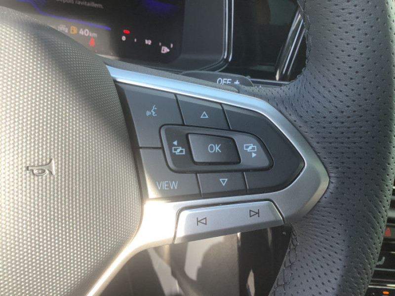 2 interfaces USB-C AV et 2 ports USB-C de recharge AR / 2 lampes de lecture a l'AV / ACC : Le Regulateur de vitesse adaptatif avec limiteur de vitesse (ACC) / Accoudoir central a l'AV reglable en longueur, avec compartiment de rangement / App-Connect sans fil / Application decorative de tableau de bord ""Piano Noir"" brillante / Appuis-tête AR (3) et ceintures de sécurité 3 points (3) sur la banquette AR / Avertisseur de non bouclage des ceintures de securite AV et AR / Boîte de rangement sous le siège passager AV / Camera de recul Rear view avec visualisation de la zone situee a l'AR du vehicule / Chassis Sport: Direction progressive / Ciel de pavillon noir / Climatisation automatique tactile Climatronic bi-zone avec filtre anti-allergene, reglable / Combiné d'instrumentalisation entièrement digital 'Digital Cockpit' / Compartiment de rangement pour manuel d'utilisation sous siege conducteur / Correcteur electronique de trajectoire ESP, systeme d'antiblocage de roues ABS, EDL, EDTC, / Emergency Assist / Essuie-glaces AV/AR avec commande d'intermittence et lave-glace / Fatigue Detection : systeme de detection de fatigue du conducteur qui analyse le comportement du / Feux AR de brouillard des 2 cotes, feux de recul des 2 cotes / Frein de stationnement electromecanique avec fonction d'immobilisation en pente ""Auto Hold"" et / Front Assist avec fonction de secours en ville et detecteur de pieton / Insert argent sur le haut des vitres / Insert argent sur le haut des vitres, allant des portieres AV jusqu'a l'AR du vehicule / Interface Bluetooth pour telephone mains libres / Keyless Access: Système de verrouillage/déverrouillage sans clé et démarrage avec bouton start/stop / Lampes de lecture AV/AR / Lane Assist - Assistant au maintien dans la voie avec correction de trajectoire / Light Assist : Regulation automatique des feux de route / Logo R-Line brode sur les sieges AV / Logo R-Line sur la calandre et sur les ailes / Pack ""Aide a la conduite IQ.DRIVE"" / Pack Aide a la Conduite / Pack Visibilité / Pack ?Aide a la conduite IQ.DRIVE / Pare chocs AR spécifiques R-Line dans la couleur carrosserie / Pare chocs AV spécifique R-Line dans la couleur carrosserie / Park Assist - Assistance au stationnement / Park Assist - assistant aux manoeuvres de stationnement / Partie exterieure et appuie-tete bi-matiere ArtVelours et surpiques en Gris / Partie exterieure et appuie-tete en similicuir et surpiques en Gris / Pedalier en acier inoxydable brosse / Plancher de coffre a bagages reglable en hauteur et amovible / Poignées de portes et rétroviseurs extérieurs dans la teinte de la carrosserie / Preparation pour ""VW Connect"" / Projecteurs a LED Plus : projecteurs LED haute performance avec feux de jour a LED / Projecteurs antibrouillard AV avec éclairage statique d'intersection / Selection du profil de conduite / Sellerie specifique avec partie centrale en tissu ""Karoso"", interieur des bourrelets lateraux / Seuils de porte avec logo R-Line / Siège passager AV rabattable / Système d'infotainment avec écran d'accueil R-Line / Système Start/Stop avec récupération d'énergie au freinage / Systeme d'aide au stationnement - signaux davertissement en cas d´obstacles AV et AR / Systeme d'aide au stationnement AV et AR / Systeme Navigation & Infotainment ""Discover Media"" / Témoin d'alerte pour niveau de liquide lave-glace