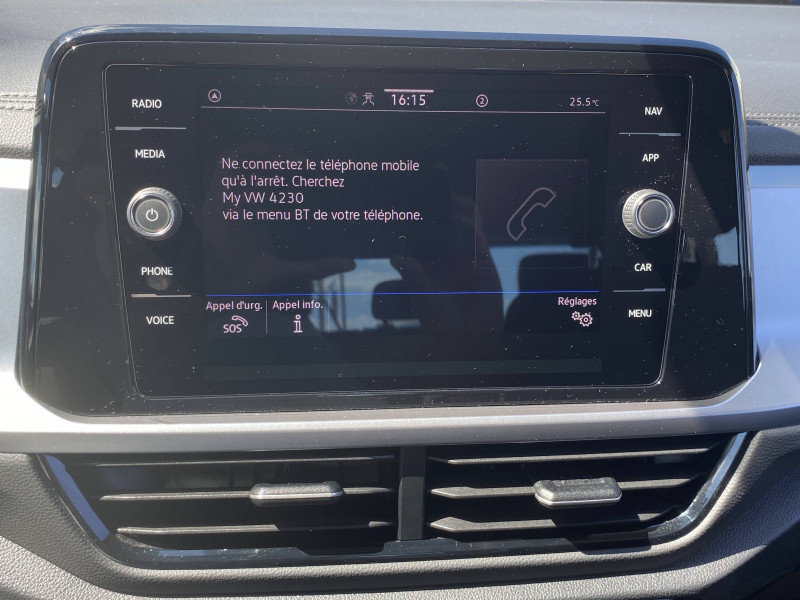 Caméra de recul Rear view avec visualisation de la zone située à l'AR du véhicule sur l'écran de la radio ou de la radionavigation / Climatisation automatique tactile Climatronic bi-zone avec filtre anti-allergène, réglable séparément pour le conducteur et le passager AV / Frein de stationnement électromécanique avec fonction d'immobilisation en pente "Auto Hold" et assistant de démarrage en côte / Jantes en alliage léger 16'' Chester / Light Assist : Régulation automatique des feux de route / Pack Visibilité Allumage automatique des feux avec fonction 'Coming home / Leaving home', Rétroviseur intérieur jour/nuit automatique, Capteur de pluie avec essuie-glace automatique / Park Assist - assistant aux manoeuvres de stationnement y compris système d'aide au stationnement avec signaux d'avertissement en cas d'obstacles à l'AV et à l'AR / Projecteurs à LED Plus : projecteurs LED haute performance avec feux de jour à LED feux de braquage et éclairage tous temps et réglage dynamique du site des projecteurs / Sign Assist: Reconnaissance des panneaux de signalisation et affichage sur l'ordinateur de bord et l'écran du système de radionavigation / Système d'aide au stationnement - signaux d'avertissement en cas d´obstacles AV et AR / Système Navigation & Infotainment "Discover Media" avec Services de streaming et radio via Internet, via carte eSIM intégrée avec écran couleur tactile 8 / 2 interfaces USB C à l'AV et 2 ports USB-C de recharge à l'AR / 2 lampes de lecture à l'AV / ACC : Le Régulateur de vitesse adaptatif avec limiteur de vitesse (ACC) / Accoudoir central à l'AV réglable en longueur, avec compartiment de rangement / App-Connect sans fil / Application décorative Gris Etain métallisé pour tableau de bord / Appuie-tête AR (3) et ceintures de sécurité 3 points (3) sur la banquette AR / Appuis lombaires à l'AV et dossier de siège passager AV entièrement rabattable / Avertisseur de non bouclage des ceintures de sécurité AV et AR / Boîte de rangement sous le siège passager AV / Catadioptres dans toutes les portières / Ceintures de sécurité AV 3 points, à enrouleur avec prétensionneurs, réglables en hauteur / Compartiment de rangement pour manuel d'utilisation sous siège conducteur / Correcteur électronique de trajectoire ESP, système d'antiblocage de roues ABS, EDL, EDTC, antipatinage électronique ASR et stabilisation de la remorque / Câble adaptateur USB-C vers USB-A / Diffuseur AR avec insert argent / Digital Cockpit : combiné d'instruments digital 8" / Essuie-glaces AV/AR avec commande d'intermittence et lave-glace / Fatigue Détection : système de détection de fatigue du conducteur qui analyse le comportement du conducteur et recommande un temps de repos par l'apparition d'un message visuel et sonore / Feux AR de brouillard des 2 côtés, feux de recul des 2 côtés / Front Assist avec fonction de secours en ville et détecteur de piéton / Insert argent sur le haut des vitres, allant des portières AV jusqu'à l'AR du véhicule / Interface Bluetooth pour téléphone mains libres / Keyless Access: Système de verrouillage/dévérrouillage sans clé et démarrage avec bouton Start/Stop / Lampes de lecture AV/AR / Lane Assist - Assistant au maintien dans la voie avec correction de trajectoire / Oeillets d'arrimage ISOFIX (dispositif pour fixation de 2 sièges-enfants sur la banquette AR) / Pare-chocs peints dans la couleur de carrosserie / Plancher de coffre à bagages réglable en hauteur et amovible / Poignées de portes et rétroviseurs extérieurs dans la teinte de la carrosserie / Projecteurs antibrouillard AV avec éclairage statique d'intersection / Préparation pour "VW Connect" vous permet d'obtenir des informations sur votre véhicule directement sur votre smartphone. Application totalement gratuite et facile à utiliser. Produit 100% compatible avec votre Volkswagen et garantie constructeur préservée. Aperçu de toutes les données de votre véhicule et des prochaines maintenances à effectuer. Sécurité totale des données grâce à un cryptage. Nous ne traiterons pas vos données. / Rampes de pavillon noires / Roue de secours à encombrement réduit avec cric / Rétroviseur extérieur asphérique côté conducteur / Rétroviseur extérieur convexe côté passager / Système de détection de la signalisation routière / Système de protection proactive des occupants / Système Start/Stop avec récupération d'énergie au freinage / Tableau de bord moussé / Tapis de sol AV et AR / Témoin d'alerte pour niveau de liquide lave-glace / Vitres athermiques teintées vertes sur les côtés et à AR
