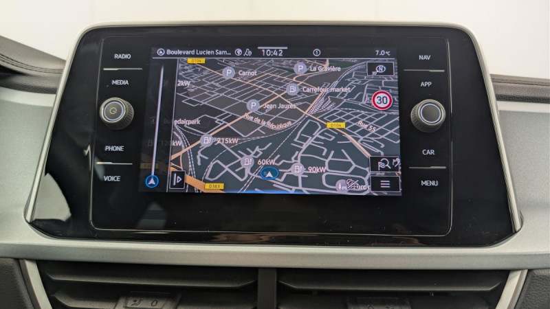 Fatigue Detection : système de détection de fatigue du conducteur qui analyse le comportement du conducteur et recommande un temps de repos par l'apparition d'un message visuel et sonore / Système Start/Stop avec récupération d'énergie au freinage / Oeillets d'arrimage ISOFIX (dispositif pour fixation de 2 sièges-enfants sur la banquette AR) / Sign Assist: Reconnaissance des panneaux de signalisation et affichage sur l'ordinateur de bord et l'écran du système de radionavigation / Front Assist avec fonction de secours en ville et détecteur de piéton / Frein de stationnement électromécanique avec fonction d'immobilisation en pente "Auto Hold" et assistant de démarrage en côte / Light Assist : Régulation automatique des feux de route / Lane Assist - Assistant au maintien dans la voie avec correction de trajectoire / App-Connect sans fil - affichage et contrôle via l?écran tactile de la voiture, du contenu, des fonctions et des applications compatibles présents sur le Smartphone (compatibilité avec les systèmes Apple CarPlay, Apple CarPlay sans fil, Android Auto, MirrorLink). Seuls les contenus validés et utilisables en «main libre» peuvent fonctionner. / Digital Cockpit : combiné d'instruments digital 8" / Climatisation automatique tactile Climatronic bi-zone avec filtre anti-allergène, réglable séparément pour le conducteur et le passager AV / Interface Bluetooth pour téléphone mains libres / 2 interfaces USB-C AV et 2 ports USB-C de recharge AR / ACC : Le Régulateur de vitesse adaptatif avec limiteur de vitesse (ACC) / Accoudoir central à l'AV réglable en longueur, avec compartiment de rangement / Appuis lombaires à l'AV et dossier de siège passager AV entièrement rabattable / Vitres athermiques teintées vertes sur les côtés et à AR / Projecteurs à LED Plus : projecteurs LED haute performance avec feux de jour à LED feux de braquage et éclairage tous temps et réglage dynamique du site des projecteurs / Sellerie en tissu "Tracks Uni new" Noir Titane / Gris / Plancher de coffre à bagages réglable en hauteur et amovible / Système Navigation & Infotainment "Discover Media" / Park Assist - assistant aux manoeuvres de stationnement y compris système d?aide au stationnement avec signaux d?avertissement en cas d?obstacles à l?AV et à l?AR / Pack Visibilité : Rétroviseur intérieur jour/nuit automatique Allumage automatique des feux avec fonctions "Coming Home - Leaving Home" / Rampes de pavillon noires / Caméra de recul Rear view avec visualisation de la zone située à l'AR du véhicule sur l'écran de la radio ou de la radionavigation ou écran central pour vous faciliter les manoeuvres de recul et de stationnement / Chargeur de téléphone par induction compartiment de rangement spécifique au téléphone dans la console centrale /