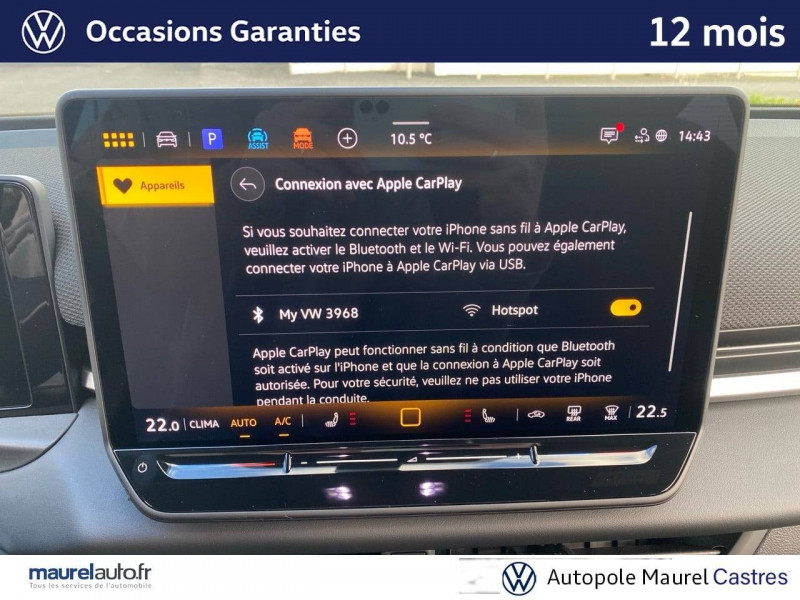 Allumage automatique des projecteurs avec feux de jour à LED et fonction "Coming/Leaving Home" / Assistant de stationnement 'Park Assist Plus' y compris système d'aide au stationnement / Blocs de feux AR à LED 3D / Boîte de vitesse automatique (DSG7) / Climatisation automatique 'Air Care Climatronic' 3 zones avec filtre allergène / Jantes 18" Coventry / Light Assist: Activation ou désactivation automatique des feux de route en fonction des sources lumineuses en présence (dès 60 km/h) / Pack R-Line extérieur / Projecteurs LED PLUS - Logo Volkswagen lumineux AV et AR - Feux de braquage et éclairage tous temps - Contrôle dynamique de la portée des phares, avec feu de virage / Rétroviseur intérieur à réglage jour/nuit automatique / Rétroviseurs extérieurs électriques, chauffants, avec inclinaison automatique côté passager / Seuils de portes AV en aluminium / Système de navigation 'Discover Pro' - Commande vocale - Digital Cockpit Pro - Système de navigation avec écran de 32,7 cm (12,9 pouces) - 6 haut-parleurs / Système de navigation 'Discover Pro' - Commande vocale - Digital Cockpit Pro - Système de navigation avec écran de 32,7 cm (12,9 pouces) - 6 haut-parleurs / Volant multifonction cuir avec palettes au volant / 2 prises USB-C et 1 prise de chargement USB-C à l'AR / 6 HPs / ACC : Le Régulateur de vitesse adaptatif et prédictif avec limiteur de vitesse (ACC) adapte la vitesse en fonction des limitations de vitesse detectées et du parcours / Alarme antivol avec protection volumétrique, Back-up-Horn et protection soulèvement / App-Connect sans fil affichage et contrôle via l'écran tactile du véhicule, du contenu, des fonctions et des applications compatibles présents sur le Smartphone (compatibilité avec les systèmes Apple CarPlay et Android Auto). Fonction sans fil uniquement disponible avec Apple CarPlay / Appuis lombaires, réglage pneumatique des 2 côtés / Assistant de changement de voie "Side Assist" / Assistant de maintien de voie 'Lane Assist' peut détecter, à partir de 60 km/h, si votre véhicule quitte involontairement sa propre voie et corrige la trajectoire par une action sur la direction / Bandeau lumineux AV/AR avec logo Volkswagen rétroéclairé / Ciel de pavillon Noir / Commande de sélection du mode de conduite : Athmosphère / Correcteur électronique de trajectoire ESP, système d'antiblocage de roues ABS, EDL, EDTC, antipatinage électronique ASR et stabilisation de la remorque / Dossier de banquette AR rabattable de manière asymétrique, avec accoudoir central / Eclairage d'ambiance 30 couleurs / Eclairage périmétrique avec projection de logo / Ecrous antivol avec protection antivol étendue / Fatigue Detection : système de détection de fatigue du conducteur qui analyse le comportement du conducteur et recommande un temps de repos par l'apparition d'un message visuel et sonore / Front Assist avec fonction de secours en ville et détecteur de piéton / Garantie constructeur de 2 ans kilométrage illimité / Interface téléphonique avec fonction de charge inductive / Kit de dépannage : compresseur 12 V et produit d'étanchéité de pneu / Miroirs de courtoisie dans les pare-soleils / Oeillets d'arrimage ISOFIX (dispositif pour fixation de 2 sièges-enfants sur la banquette AR) / Pare-chocs peints dans la couleur de carrosserie / Plancher de coffre à bagages réglable sur 2 hauteurs, pour surface de chargement plate / Préparation pour "VW Connect" vous permet d'obtenir des informations sur votre véhicule directement sur votre smartphone. Accès au concessionnaire Volkswagen le plus proche, Aperçu de toutes les données de votre véhicule et des prochaines maintenances à effectuer, Application totalement gratuite et facile à utiliser, Produit 100% compatible avec votre Volkswagen et garantie constructeur préservée, Sécurité totale des données grâce à un cryptage / Pédalier en acier inoxydable brossé / Rampes de pavillon argent anodisées / Selection de profil de conduite / Sièges sport chauffants à l'AV avec appui-tête intégré / Système "Start-Stop" avec dispositif de récupération de l'énergie au freinage / Système d'Infotainment avec écran de 32,7 cm (12,9 ") / Système de détection de la signalisation routière / Système de fermeture et de démarrage sans clé "Keyless Access" / Système de protection proactive des occupants avertisseur de non bouclage des ceintures de sécuritéà l'AV et à l'AR / Tapis de sol textile AV et AR / Volant chauffant