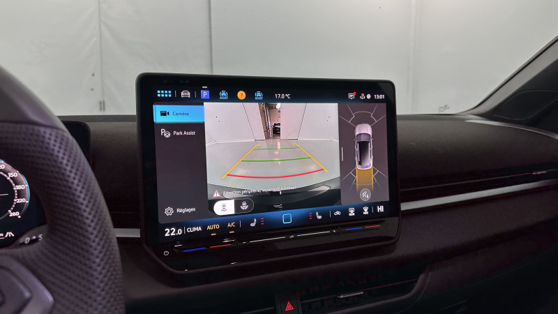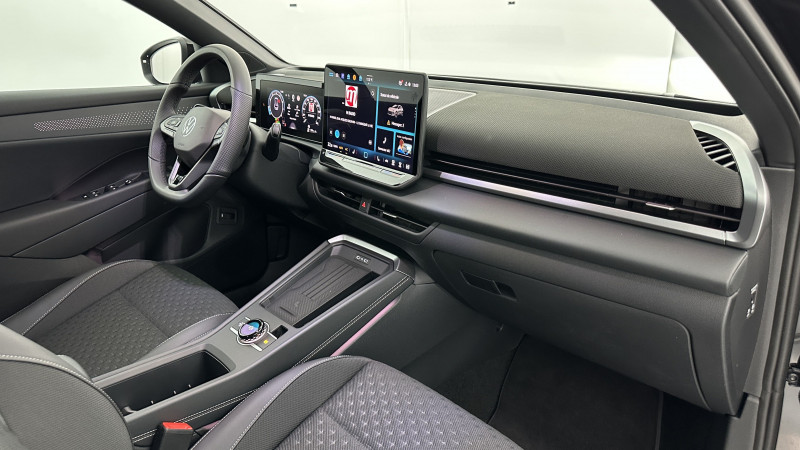 Commande de sélection du mode de conduite / Alarme antivol avec protection volumétrique / Assistant de stationnement ?Park Assist Plus? / Eclairage d?ambiance 30 couleurs / Digital Cockpit Pro / Système de fermeture et de démarrage sans clé Keyless Access / Bandeau lumineux à l?avant et à l?arrière avec logo Volkswagen rétroéclair / Pack R-Line extérieur / Sellerie spécifique R-line / Pédalier en acier inoxydable brossé / Ciel de pavillon noir / Volant sport multifonction chauffant en cuir, avec palettes / Sièges sport chauffants à l?avant (avec appui-tête intégré) / Seuils de porte à l?avant en alu / Régulateur de vitesse adaptatif et prédictif ACC avec limiteur de vitesse / Dossier de siège du passager avant entièrement rabattable / Appuis lombaires, réglage pneumatique des 2 côtés / Plancher de coffre à bagages réglable sur 2 hauteurs / Interface téléphonique avec fonction de chargement inductive / Système de navigation et d?Infotainment ?Discover Pro? avec écran de 12,9 pouces (sur activation dans la boutique) / App-Connect sans fil : affichage et contrôle via l?écran tactile du véhicule de l' Apple CarPlay? et Android Auto? / Front Assist? avec fonction de secours en ville et détection des piétons / Kit de dépannage : compresseur 12 volts et produit d?étanchéité de pneu / Système de détection de signalisation routière /