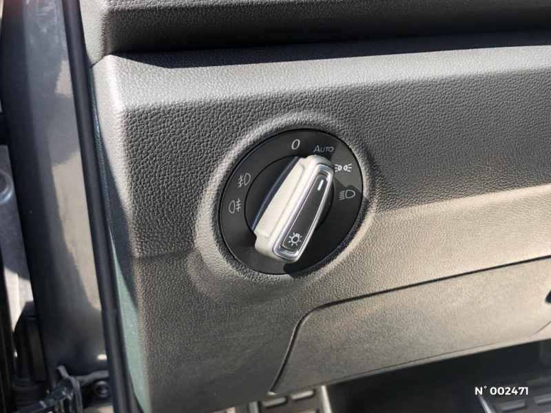 Eclairage d'ambiance intérieure / Dossier de banquette AR rabattable 2/3 -1/3 avec accoudoirs central / Eléments chromés (contour buses de ventilation, boutons vitres/rétroviseurs/allumage phares, levier de vitesse) / Fatigue Detection : système de détection de fatigue du conducteur qui analyse le comportement du conducteur et recommande un temps de repos par l'apparition d'un message visuel et sonore / Frein de stationnement électromécanique avec fonction d'immobilisation en pente "Auto Hold" Le véhicule se maintien automatiquement en pente et une simple action qur l'accélérateur suffit à désactiver le frein / Tapis de sol AV/AR / Allumage automatique des feux avec fonctions "Coming Home - Leaving Home" / Vitres athermiques teintées vertes / Volant multifonctions cuir et pommeau de levier de vitesses en cuir / Rétroviseur intérieur jour/nuit automatique / Hill-Hold : Assistant au démarrage en côte grâce à une fonction anti-recul / Insert argent sur le haut des vitres / Interface Bluetooth / Interface USB compatible Apple / Jantes en alliage léger 17" "Dublin" / Kit de dépannage : compresseur 12 V et produit d'étanchéité de pneu / Oeillets d'arrimage ISOFIX (dispositif pour fixation de 2 sièges-enfants sur la banquette AR) / Ordinateur de bord multifonction avec affichage de la température extérieurs, contrôle des éléments audios, de navigation, et du téléphone (en fonction des options choisies) / Pare-chocs AR avec inserts chromés / Pare-chocs AV avec sabot argent / Pare-chocs peint dans la couleur de la carrosserie / Peinture unie Gris Urano / ParkPilot: Aide au stationnement AV/AR avec signaux sonores en cas d'obstacle / Plancher de coffre modulable / Poignées de portes et rétroviseurs extérieurs dans la teinte de la carrosserie / Projecteurs antibrouillard AV avec éclairage statique d'intersection / Rampes de pavillon noires / Rétroviseurs extérieurs asphérique côté conducteur / Régulateur de vitesse adaptatif ACC : détecte dans les limites du systéme et l´aide d´un capteur radar les véhicules qui précèdent et maintient la distance en intervenant sur les freins et l'accélérateur (régulation active de 30 à 160 km/h pour boîte manuelle, de 0 à 160 km/h pour boîte DSG ; jusqu'à l'arrêt du véhicule uniquement avec DSG). Le conducteur peut calibrer la distance souhaitée par rapport aux autres automobilistes selon quatre niveaux / Sellerie spécifique "Cushion" / Système Navigation & Infotainment "Discover Media" avec Car-Net "Guide & Inform" 36 mois / Verrouillage centraliséà distance, 2 clés pliantes de radiocommande fournies / Start-Stop avec système de récupération d'énergie au freinage / Système Front Assist avec fonction de secours en ville et détection des piétons / Tiroir de rangement sous siège passager AV / Pédalier en acier brossé / Accoudoir central AV + prise 12 V sur console centrale AR / Airbags frontaux AV conducteur et passager (Airbag passager désactivable par clé) / Applications décoratives spécifiques / Avertisseur de non bouclage des ceintures de sécurité AV et AR / Appuis-tête (3) et ceintures de sécuritéà 3 points (3) sur la banquette AR / Car-Net "App-Connect" En combinaison avec Discover Media / Ceintures de sécurité AV 3 points à enrouleur réglables en hauteur avec prétensionneurs / Catadioptres dans toutes les portières / Caméra de recul Rear view avec visualisation de la zone située à l'AR du véhicule sur l'écran de la radio ou de la radionavigation / Correcteur électronique de trajectoire ESP, système d'antiblocage de roues ABS, EDL, EDTC, antipatinage électronique ASR et stabilisation de la remorque / Coques de rétroviseurs extérieurs Noires / Climatisation automatique Climatronic bi-zone avec filtre anti-allergène, réglable séparément pour conducteur et passager AV / Détecteur d'angle mort "Blind Spot Detection" avec assistant de sortie de stationnement / Compartiment de rangement pour manuel d'utilisation sous siège conducteur / Direction électromécanique à assistance variable en fonction de la vitesse / Diffuseur AR avec insert argent / Dynamic Lane Assist: Assistant de maintien de trajectoire qui corrige, dans la limite du système, le mouvement du volant AV que le véhicule dépasse invonlontairement la bande de roulement. Système actif à partir de 65 km/h