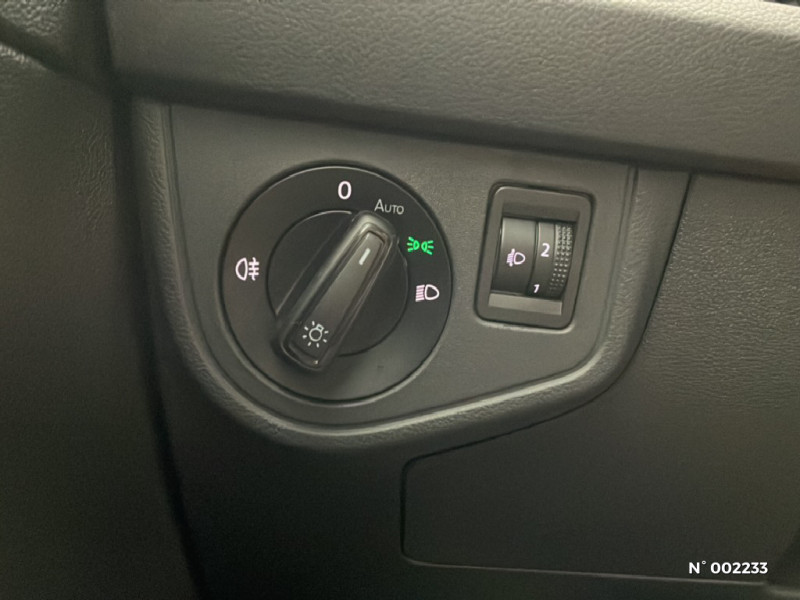 Poignée de frein à main en cuir / 2 interfaces USB-C à l'AV / App-Connect sans fil - affichage et contrôle via l'écran tactile de la voiture, du contenu, des fonctions et des applications compatibles présents sur le Smartphone (compatibilité avec les systèmes Apple CarPlay, Apple CarPlay sans fil, Android Auto, MirrorLink). Seuls les contenus validés et utilisables en 'main libre» peuvent fonctionner. / Rear Assist : Caméra de recul avec visualisation de la zone située à l'AR du véhicule sur l'écran de la radio ou de la radionavigation / Lampes de lecture AV/AR / Correcteur électronique de trajectoire ESP avec amplificateur de freinage d'urgence, système d'antiblocage des roues ABS, antipatinage électronique ASR, blocage électronique de différentiel EDS, régulateur électronique de couple d'inertie MSR, aide au démarrage en côte 'Hill-Hold' / Câble adaptateur USB-C vers USB-A / Accoudoir central AV réglable en longueur avec compartiment de rangement et 2 ports USB-C de recharge AR / Front Assist avec detecteur de piétons système de freinage automatique en cas de détection d'obstacle / Pare-chocs peints dans la couleur de carrosserie / Avertisseur sonore et lumineux de non-extinction des phares et de non bouclage des ceintures de sécuritéà l'AV et à l'AR / Inserts décoratifs "Piere de lave" sur le tableau de bord et les revêtements de porte à l'AV / Start-Stop avec système de récupération d'énergie au freinage / Appuis lombaires réglables AV / Rétroviseur intérieur à réglage jour/nuit automatique / Lane Assist - Assistant au maintien dans la voie avec correction de trajectoire / Jantes en alliage léger 6Jx16 "Belmopan", pneumatiques 205/60 R16 à résistance au roulement optimisé / Travel Assist : Assistant de conduite semi-autonome / Digital Cockpit : combiné d'instruments digital 8" / Airbags frontaux AV conducteur et passager (Airbag passager désactivable par clé) / Allumage automatique des projecteurs avec feux de jour à LED et fonction "Coming/Leaving Home" / Boîte de rangement sous le siège passager AV / Rétroviseurs extérieurs couleur carrosserie / Ecrous antivol / Système Navigation & Infotainment "Discover Media" / Roue de secours 15'' à encombrement réduit, outillage de bord et cric (vitesse limitée à 80 km/h) / Fatigue Detection : système de détection de fatigue du conducteur qui analyse le comportement du conducteur et recommande un temps de repos par l'apparition d'un message visuel et sonore / Eclairage du coffre à bagages / Interface Bluetooth pour portable / Oeillets d'arrimage ISOFIX (dispositif pour fixation de 2 sièges enfants sur les places extérieures de la banquette AR et 1 siège enfant sur le siège passager AV) / Essuie-glaces AV/AR avec commande d'intermittence et lave-glace / Appuis-tête (3) et ceintures de sécuritéà 3 points (3) sur la banquette AR / Préparation pour We Connect et We Connect Plus / Tableau de bord moussé / Sellerie en tissu "Slash Stoff" / Pommeau du levier de vitesse cuir / Banquette et dossier AR asymétriques, rabattables 1/3 et 2/3 avec plancher de coffre à bagages réglable en 2 hauteurs / Light Assist : Régulation automatique des feux de route / Rampes de pavillon noires / Témoin de niveau du lave-glace / Tapis de sol AV/AR / Climatisation manuelle "Climatic"