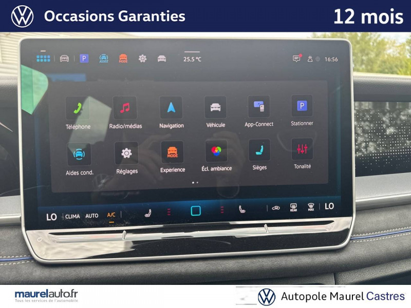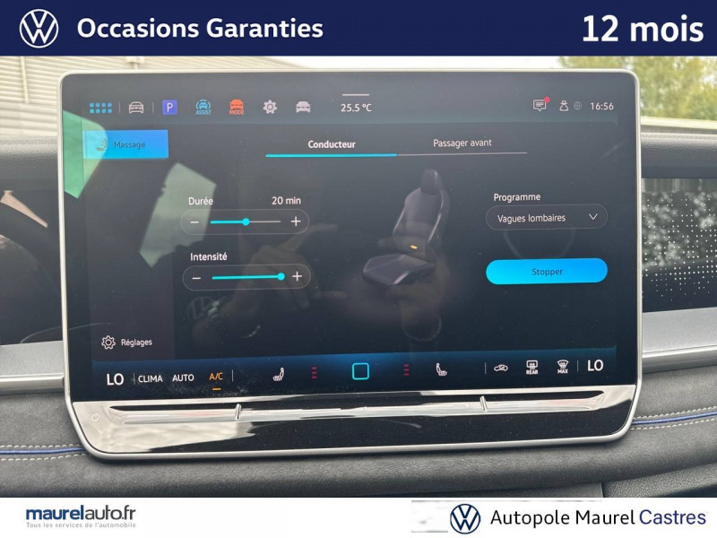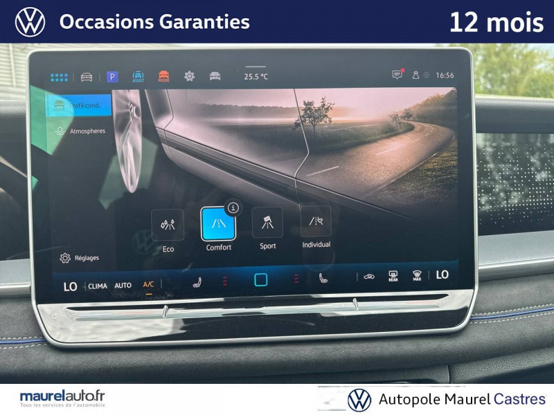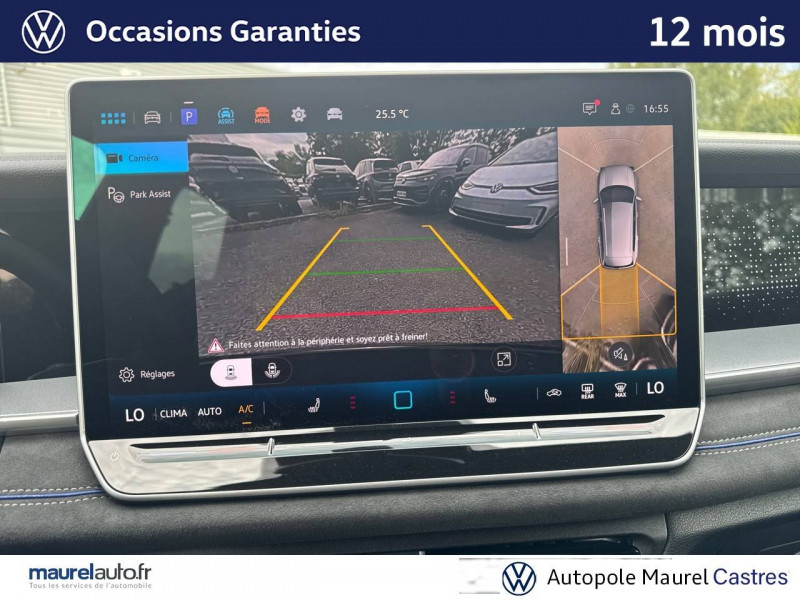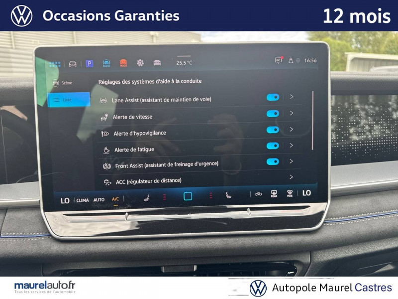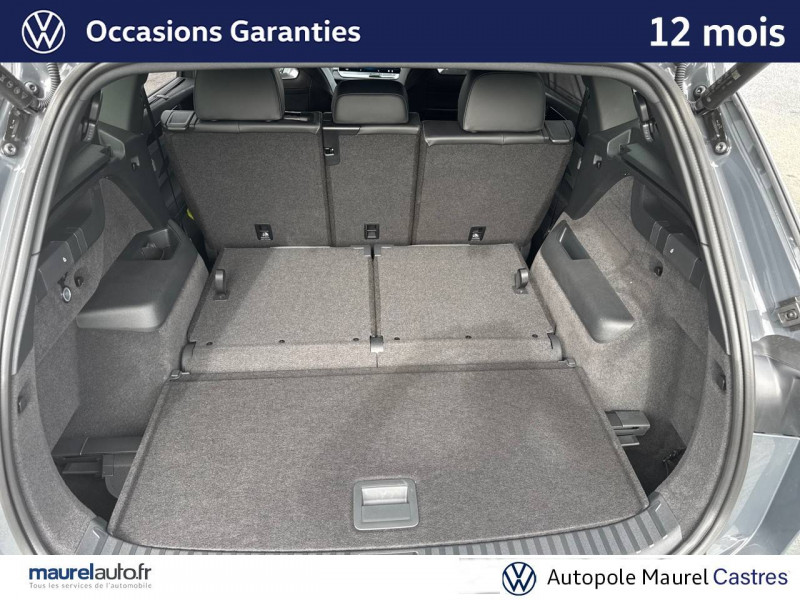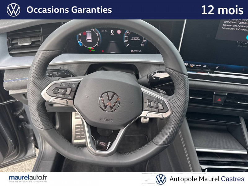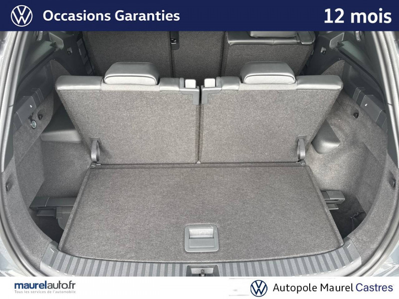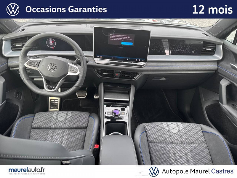 2 interfaces USB-C AV et prise 12V dans la console centrale / 2 prises de chargement USB-C dans la console centrale AR, capacité de charge jusqu'à 45W / 7 places assises / 8 HP / Airbag conducteur et passager AV avec désactivation de l'airbag du passager AV / Airbags de tête pour passagers AV/AR / Airbags rideaux et latéraux AV/AR, airbag central / Alarme antivol avec protection volumétrique / Allumage automatique des projecteurs avec feux de jour à LED et fonction "Coming/Leaving Home" / App-Connect sans fil - affichage et contrôle via l'écran tactile de la voiture, du contenu, des fonctions et des applications compatibles présents sur le Smartphone (compatibilité avec les systèmes Apple CarPlay, Apple CarPlay sans fil, Android Auto, MirrorLink). Seuls les contenus validés et utilisables en «main libre» peuvent fonctionner. / Appuie-tête à sécurité optimisée AV / Appui lombaire, réglage pneumatique des 2 côtés / Assistant aux manoeuvres de stationnement "Park Assist Pro" / Assistant de freinage d'urgence Front Assist avec système de détection des piétons et cyclistes / Assistant de maintien sur la voie Lane Assist / Assistant d'intersection: système de surveillance périmétrique des intersections. Ce système freine automatiquement le véhicule en cas d'urgence lors d'une intersection / Avertissement de sortie de véhicule: lorsque le conducteur veut sortir du véhicule mais qu'un cycliste ou véhicule s'approche par derrière, le conducteur est averti (le témoin d'aide au changement de voie s'allume sur le rétroviseur, un signal sonore est émis et l'éclairage de la porte passe au rouge) / Bandeau lumineux AV/AR avec logo Volkswagen rétroéclairé / Banquette AR coulissante et dossier divisés, rabattables / Blocs de feux AR à LED 3D / Boîtiers de rétroviseurs extérieurs et poignées de porte dans la teinte du véhicule / Ciel de pavillon Noir Titane / Commande vocale IDA / Détection d'angles morts "Side Assist" avec assistance de sortie de stationnement / Déverrouillage à distance pour le dossier de banquette AR / Dispositif start/stop / Drive Experience Control: Sélecteur de profil de conduite avec écran OLED tactile - Permet d'ajuster le volume, le profil de conduite ainsi que les "Atmosphères" - Appuyer sur le sélecteur pour afficher les profils de conduite, passez votre doigt sur l'écran tactile pour basculer sur le choix des "Atmosphères" - Des "Atmosphères" sont déja paramétrées dans le véhicule mais vous pouvez créer vos propres atmosphères en définissant une playlist, un affichage Digital Cockpit, un éclairage d'ambiance, un niveau sonore et une tonalité / Driving Experience Control: réglage du volume et sélection du profil de conduite / Eclairage d'ambiance étendu / Eclairage périmétrique avec projection de logo / Ecrous antivol avec protection antivol étendue / Feux de braquage et éclairage tous temps / Frein de stationnement électronique y compris fonction Auto Hold / Hayon à ouverture pilotée par capteurs et fermeture électrique différée, avec déverrouillage à distance / Interface Bluetooth pour portable / Interface téléphonique "Comfort" avec fonction de chargement inductive pour 2 téléphones avec compartiment réfrigéré / Jantes en alliage léger 19" "Coventry" 8,5Jx19", pneus auto-colmatants 255/45 R19 / Light Assist: Activation ou désactivation automatique des feux de route en fonction des sources lumineuses en présence (dès 60 km/h) / Logo éclairé AV/AR / Miroirs de courtoisie éclairés dans les pare-soleil / Oeillets de retenue ISOFIX pour sièges pour enfants sur sièges AR extérieurs et sur siège passager AV, compatibles i-Size / Pack R-Line extérieur / Pédalier en acier inoxydable / Plancher de coffre / Prise 12V dans le coffre à bagages / Projecteurs LED Plus (projecteurs à LED avec feux de jour à LED, feux antibrouillard intégrés, régulation des feux de route "Light Assist", éclairage statique d'intersection) / Rampes de pavillon en argent anodisé / Rétroviseur intérieur à réglage jour/nuit automatique / Rétroviseurs extérieurs à réglage, rabattement et dégivrage électriques, avec fonction mémoire / Sellerie en Tissu et Microfleece "ArtVelours" / Service d'appel d'urgence e-Call / Seuils de portes AV en aluminium / Sièges AV avec fonction massage avec réglage lombaire pneumatique 4 points et fonction de massage pneumatique par 3 points de pression / Sièges AV réglables en hauteur, siège ergoActive du côté conducteur / Sièges AV Sport avec appuie-tête intégré / Stores pare-soleil pour vitres AR / Suppression siège passager rabattable / Système Audio & Infotainment "Ready 2 Discover" avec "Services de streaming et radio via Internet" via carte eSIM intégrée / Système de détection de la signalisation routière / Système de fermeture et de démarrage sans clé "Keyless Access" / Système Navigation & Infotainment "Discover Media" / Tableau de bord Digital Cockpit 10" / Tapis de sol en textile / Technologie Car2X: peut communiquer avec d'autres véhicules par Wi-Fi p. (autres usagers de la route, véhicules de chantier ou dépannage) pour avertir le conducteur et transmettre ces avertissements à d'autres véhicules équipés de la fonction Car2X / Volant sport multifonction en cuir, avec palettes