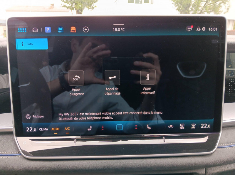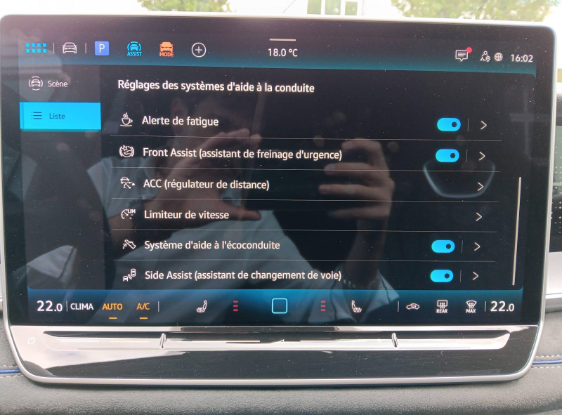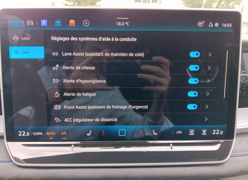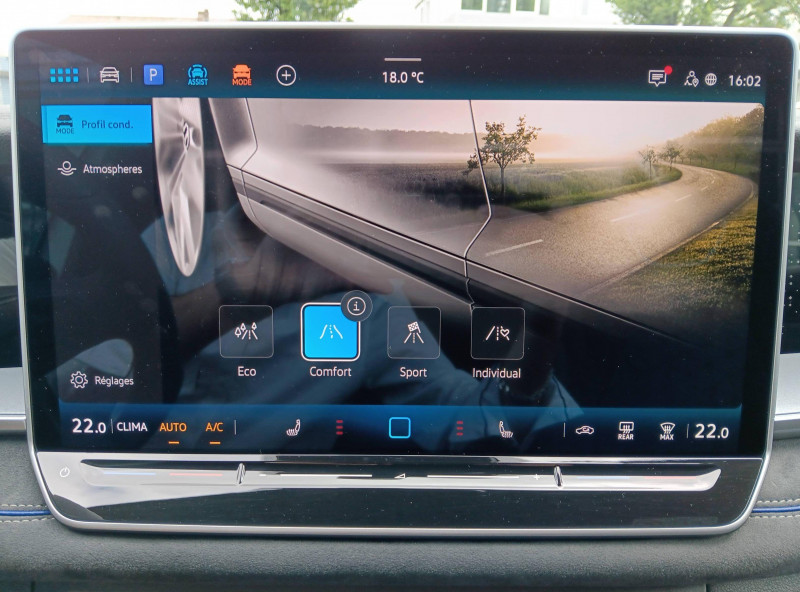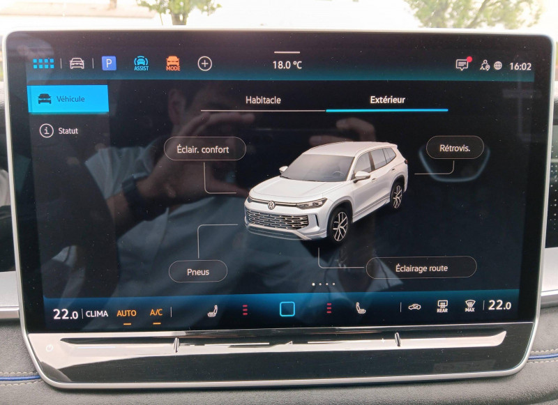 Allumage automatique des projecteurs avec feux de jour à LED et fonction "Coming/Leaving Home" / Assistant aux manoeuvres de stationnement "Park Assist Pro" / Assistant d'intersection: système de surveillance périmétrique des intersections. Ce système freine automatiquement le véhicule en cas d'urgence lors d'une intersection / Avertissement de sortie de véhicule: lorsque le conducteur veut sortir du véhicule mais qu'un cycliste ou véhicule s'approche par derrière, le conducteur est averti (le témoin d'aide au changement de voie s'allume sur le rétroviseur, un signal sonore est émis et l'éclairage de la porte passe au rouge) / Blocs de feux AR à LED 3D / Boîte de vitesse automatique (DSG7) / Drive Experience Control: Sélecteur de profil de conduite avec écran OLED tactile - Permet d'ajuster le volume, le profil de conduite ainsi que les "Atmosphères" - Appuyer sur le sélecteur pour afficher les profils de conduite, passez votre doigt sur l'écran tactile pour basculer sur le choix des "Atmosphères" - Des "Atmosphères" sont déja paramétrées dans le véhicule mais vous pouvez créer vos propres atmosphères en définissant une playlist, un affichage Digital Cockpit, un éclairage d'ambiance, un niveau sonore et une tonalité / Détection d'angles morts "Side Assist" avec assistance de sortie de stationnement / Frein de stationnement électronique y compris fonction Auto Hold / Jantes en alliage léger 19" "Coventry" 8,5Jx19", pneus auto-colmatants 255/45 R19 / Light Assist: Activation ou désactivation automatique des feux de route en fonction des sources lumineuses en présence (dès 60 km/h) / Pack Intérieur/Extérieur R-Line / Projecteurs LED Plus (projecteurs à LED avec feux de jour à LED, feux antibrouillard intégrés, régulation des feux de route "Light Assist", éclairage statique d'intersection) / Rétroviseur intérieur à réglage jour/nuit automatique / Seuils de portes AV en aluminium / Volant sport multifonction en cuir, avec palettes / 2 interfaces USB-C AV et prise 12V dans la console centrale / 2 prises de chargement USB-C dans la console centrale AR, capacité de charge jusqu'à 45W / 5 places assises / 8 HP / Airbag conducteur et passager AV avec désactivation de l'airbag du passager AV / Airbags de tête pour passagers AV/AR / Airbags rideaux et latéraux AV/AR, airbag central / Alarme antivol avec protection volumétrique / App-Connect sans fil - affichage et contrôle via l'écran tactile de la voiture, du contenu, des fonctions et des applications compatibles présents sur le Smartphone (compatibilité avec les systèmes Apple CarPlay, Apple CarPlay sans fil, Android Auto, MirrorLink). Seuls les contenus validés et utilisables en «main libre» peuvent fonctionner. / Appui lombaire, réglage pneumatique des 2 côtés / Appuie-tête à sécurité optimisée AV / ASR / Assistant de freinage d'urgence Front Assist avec système de détection des piétons et cyclistes / Assistant de maintien sur la voie Lane Assist / Bandeau lumineux AV/AR / Banquette AR coulissante et dossier divisés, rabattables / Boîtiers de rétroviseurs extérieurs et poignées de porte dans la teinte du véhicule / Ciel de pavillon Noir Titane / Commande vocale IDA / Dispositif start/stop / Déverrouillage à distance pour le dossier de banquette AR / Eclairage d'ambiance étendu / Eclairage périmétrique avec projection de logo / Ecrous antivol avec protection antivol étendue / Feux de braquage et éclairage tous temps / Garantie constructeur de 2 ans kilométrage illimité / Hayon à ouverture pilotée par capteurs et fermeture électrique différée, avec déverrouillage à distance / Interface Bluetooth pour portable / Interface téléphonique "Comfort" avec fonction de chargement inductive pour 2 téléphones avec compartiment réfrigéré / Logo éclairé AV/AR / Miroirs de courtoisie éclairés dans les pare-soleil / Oeillets de retenue ISOFIX pour sièges pour enfants sur sièges AR extérieurs et sur siège passager AV, compatibles i-Size / Plancher de coffre / Prise 12V dans le coffre à bagages / Pédalier en acier inoxydable / Rampes de pavillon en argent anodisé / Régulateur de vitesse adaptatif et prédictif ACC avec limiteur de vitesse / Rétroviseurs extérieurs à réglage, rabattement et dégivrage électriques, avec fonction mémoire / Service d'appel d'urgence e-Call / Sièges AV avec fonction massage avec réglage lombaire pneumatique 4 points et fonction de massage pneumatique par 3 points de pression / Sièges AV réglables en hauteur, siège ergoActive du côté conducteur / Sièges AV Sport avec appuie-tête intégré / Stores pare-soleil pour vitres AR / Système Audio & Infotainment "Ready 2 Discover" avec "Services de streaming et radio via Internet" via carte eSIM intégrée / Système de détection de la signalisation routière / Système de fermeture et de démarrage sans clé "Keyless Access" / Tableau de bord Digital Cockpit 10" / Tapis de sol en textile / Technologie Car2X: peut communiquer avec d'autres véhicules par Wi-Fi p. (autres usagers de la route, véhicules de chantier ou dépannage) pour avertir le conducteur et transmettre ces avertissements à d'autres véhicules équipés de la fonction Car2X