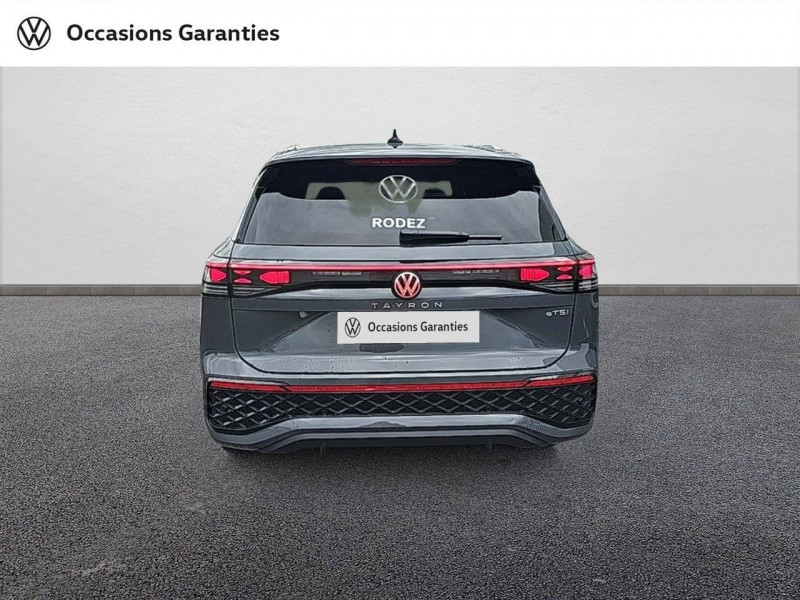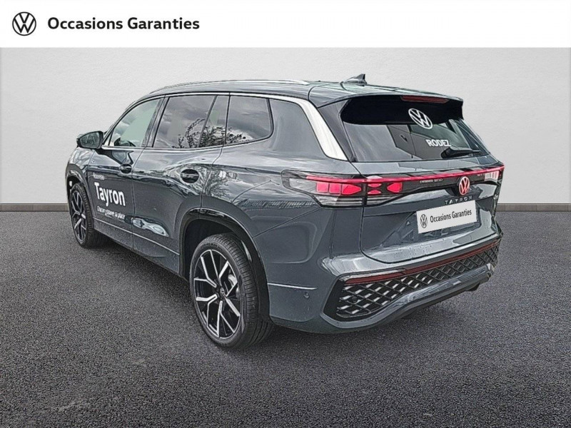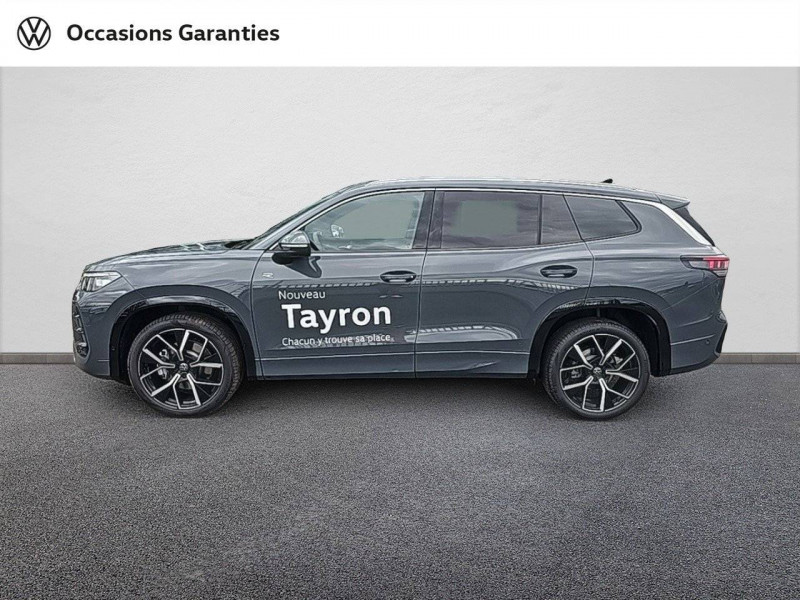 Allumage automatique des projecteurs avec feux de jour à LED et fonction "Coming/Leaving Home" / Assistant aux manoeuvres de stationnement "Park Assist Pro" / Assistant d'intersection: système de surveillance périmétrique des intersections Ce système freine automatiquement le véhicule en cas d'urgence lors d'une intersection / Avertissement de sortie de véhicule lorsque le conducteur veut sortir du véhicule mais qu'un cycliste ou véhicule s'approche par derrière, le conducteur est averti (le témoin d'aide au changement de voie s'allume sur le rétroviseur, un signal sonore est émis et l'éclairage de la porte passe au rouge) / Blocs de feux AR à LED 3D / Drive Experience Control: Sélecteur de profil de conduite avec écran OLED tactile Permet d'ajuster le volume, le profil de conduite ainsi que les, «Atmosphères», Appuyer sur le sélecteur pour afficher les profils de conduite, passez votre doigt sur l'écran tactile pour basculer sur le choix des ?Atmosphères', Des ?Atmosphères' sont déja paramétrées dans le véhicule mais vous pouvez créer vos propres atmosphères en définissant une playlist, un affichage Digital Cockpit, un éclairage d'ambiance, un niveau sonore et une tonalité / Détection d'angles morts "Side Assist" avec assistance de sortie de stationnement / Frein de stationnement électronique y compris fonction Auto Hold / Jantes en alliage léger 19" "Coventry" 8,5Jx19", pneus auto-colmatants 255/45 R19 / Pack R-Line extérieur / Projecteurs LED Plus (projecteurs à LED avec feux de jour à LED, feux antibrouillard intégrés, régulation des feux de route 'Light Assist', éclairage statique d'intersection) / Rétroviseur intérieur à réglage jour/nuit automatique / Seuils de portes AV en Aluminium / Système Navigation & Infotainment "Discover Media" / Volant sport multifonction en cuir, avec palettes / 2 interfaces USB C à l'AV et prise 12 V dans la console centrale / 2 prises de chargement USB-C dans la console centrale AR, capacité de charge jusqu'à 45 W / 7 places assises / 8 HP / Airbag conducteur et passager AV avec désactivation de l'airbag du passager AV / Airbags de tête pour passagers AV et AR / Airbags rideaux et latéraux à l'AV et à l'AR, airbag central / Alarme antivol avec protection volumétrique / App-Connect sans fil / Appui lombaire, réglage pneumatique des 2 côtés / Appuie-tête à sécurité optimisée AV / Assistant de freinage d'urgence Front Assist avec système de détection des piétons et cyclistes / Assistant de maintien de voie Lane Assist / Bandeau lumineux à l'AV et à l'AR / Banquette AR coulissante et dossier divisés, rabattables / Boîtiers de rétroviseurs extérieurs et poignées de porte dans la teinte du véhicule / Ciel de toit Noir Titane / Commande vocale IDA / Dispositif start/stop / Driving Experience Control: réglage du volume et sélection du profil de conduite / Déverrouillage à distance pour le dossier de banquette AR / Eclairage d'ambiance étendu / Eclairage périmétrique avec projection de logo / Ecrous antivol avec protection antivol étendue / Feux de braquage et éclairage tous temps / Hayon à ouverture pilotée par capteurs et fermeture électrique différée, avec déverrouillage à distance / Interface Bluetooth pour portable / Interface téléphonique "Comfort" avec fonction de chargement inductive pour 2 téléphones avec compartiment réfrigéré / Light Assist : Activation ou désactivation des feux de route en fonction des sources lumineuses en présence (dès 60 km/h) / Logo éclairé l'AV et à l'AR / Miroirs de courtoisie éclairés dans les pare-soleil / Oeillets de retenue ISOFIX pour sièges pour enfants sur sièges AR extérieurs et sur siège passager AV, compatibles i-Size / Plancher de coffre / Prise 12V dans le coffre à bagages / Pédalier en acier inoxydable / Rampes de pavillon en argent anodisé / Rétroviseurs extérieurs avec fonction mémoire / Service d'appel d'urgence eCall / Sièges AV avec fonction massage avec réglage lombaire pneumatique quatres points et fonction de massage pneumatique par trois points de pression / Sièges AV réglables en hauteur, siège ergoActive du côté conducteur / Sièges Sport à l'AV avec appuie-tête intégré / Stores pare-soleil pour vitres AR / Suppression siège passager rabattable / Système Audio & Infotainment Ready 2 Discover avec Services de streaming et radio via Internet via carte eSIM intégrée / Système de détection de la signalisation routière / Système de fermeture et de démarrage sans clé«Keyless Access» / Tableau de bord Digital Cockpit 10" / Tapis de sol en textile / Technologie Car2X le Tayron peut communiquer avec d'autres véhicules par Wi-Fi (autres usagers de la route, véhicules de chantier ou dépannage) pour avertir le conducteur et transmettre ces avertissements à d'autres véhicules équipés de la fonction Car2X