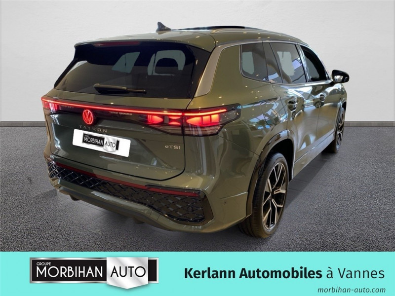 2 interfaces USB C à l'AV et prise 12 V dans la console centrale / 2 prises de chargement USB-C dans la console centrale AR, capacité de charge jusqu'à 45 W / 7 places assises / 8 HP / Airbag conducteur et passager AV avec désactivation de l'airbag du passager AV / Airbags de tête pour passagers AV et AR / Airbags rideaux et latéraux à l'AV et à l'AR, airbag central / Alarme antivol avec protection volumétrique / Allumage automatique des projecteurs avec feux de jour à LED et fonction "Coming/Leaving Home" / App-Connect sans fil / Appuie-tête à sécurité optimisée AV / Appui lombaire, réglage pneumatique des 2 côtés / Assistant aux manoeuvres de stationnement "Park Assist Pro" / Assistant de freinage d'urgence Front Assist avec système de détection des piétons et cyclistes / Assistant de maintien de voie Lane Assist / Assistant d'intersection: système de surveillance périmétrique des intersections Ce système freine automatiquement le véhicule en cas d'urgence lors d'une intersection / Avertissement de sortie de véhicule lorsque le conducteur veut sortir du véhicule mais qu'un cycliste ou véhicule s'approche par derrière, le conducteur est averti (le témoin d'aide au changement de voie s'allume sur le rétroviseur, un signal sonore est émis et l'éclairage de la porte passe au rouge) / Bandeau lumineux AV/AR avec logo Volkswagen rétroéclairé / Banquette AR coulissante et dossier divisés, rabattables / Blocs de feux AR à LED 3D / Boîtiers de rétroviseurs extérieurs et poignées de porte dans la teinte du véhicule / Ciel de pavillon Noir Titane / Commande vocale IDA / Détection d?angles morts "Side Assist" avec assistance de sortie de stationnement / Déverrouillage à distance pour le dossier de banquette AR / Dispositif start/stop / Drive Experience Control: Sélecteur de profil de conduite avec écran OLED tactile Permet d?ajuster le volume, le profil de conduite ainsi que les, «Atmosphères», Appuyer sur le sélecteur pour afficher les profils de conduite, passez votre doigt sur l?écran tactile pour basculer sur le choix des ?Atmosphères?, Des ?Atmosphères? sont déja paramétrées dans le véhicule mais vous pouvez créer vos propres atmosphères en définissant une playlist, un affichage Digital Cockpit, un éclairage d?ambiance, un niveau sonore et une tonalité / Driving Experience Control: réglage du volume et sélection du profil de conduite / Eclairage d'ambiance étendu / Eclairage périmétrique avec projection de logo / Ecrous antivol avec protection antivol étendue / Feux de braquage et éclairage tous temps / Frein de stationnement électronique y compris fonction Auto Hold / Hayon à ouverture pilotée par capteurs et fermeture électrique différée, avec déverrouillage à distance / Interface Bluetooth pour portable / Interface téléphonique "Comfort" avec fonction de chargement inductive pour 2 téléphones avec compartiment réfrigéré / Jantes en alliage léger 19" "Coventry" 8,5Jx19", pneus auto-colmatants 255/45 R19 / Jantes en alliage léger 20" "Leeds" 8Jx20", pneus auto-colmatants 255/40 R20 / Light Assist: Activation ou désactivation des feux de route en fonction des sources lumineuses en présence (dès 60 km/h) / Logo éclairé l'AV et à l'AR / Miroirs de courtoisie éclairés dans les pare-soleil / Oeillets de retenue ISOFIX pour sièges pour enfants sur sièges AR extérieurs et sur siège passager AV, compatibles i-Size / Pack d'aides à la conduite 'IQ.DRIVE' Système de vision périmétrique Area view, Assistant de conduite semi-autonome 'Travel Assist', Protection proactive des occupants / Pack Family - Verrouillage électrique des portes AR, commande depuis le siège conducteur - Système de gestion des bagages - Prise 230 V dans le coffre à bagages / Pack Hiver Sièges chauffants, volant chauffant / Pack R-Line extérieur / Pédalier en acier inoxydable / Plancher de coffre / Prise 12V dans le coffre à bagages / Projecteurs IQ.LIGHT HD - Matrix LED: Eclairage à technologie LED avec adaptation dynamique du faisceau lumineux en fonction des sources lumineuses, Projecteurs AV matriciels à LED avec feux de jour à LED et clignotants défilants, Feux AR LED avec clignotants AR défilants, Bandeau lumineux à l?AV et à l?AR, Réglage dynamique du site des phares, Dynamic Light Assist sans lave-phare (Régulation du faisceau lumineux permettant un usage permanent des feux de route tout en préservant les zones qui risquent d'éblouir les autres automobilistes (à partir de 60 km/h)) / Projecteurs LED Plus (projecteurs à LED avec feux de jour à LED, feux antibrouillard intégrés, régulation des feux de route 'Light Assist', éclairage statique d'intersection) / Rampes de pavillon en argent anodisé / Rétroviseur intérieur à réglage jour/nuit automatique / Rétroviseurs extérieurs à réglage, rabattement et dégivrage électriques avec fonction mémoire / Sellerie en Tissu et Microfleece "ArtVelours" / Service d'appel d'urgence eCall / Seuils de portes AV en Aluminium / Sièges AV avec fonction massage avec réglage lombaire pneumatique quatres points et fonction de massage pneumatique par trois points de pression / Sièges AV réglables en hauteur, siège ergoActive du côté conducteur / Sièges Sport AV avec appuie-tête intégré / Stores pare-soleil pour vitres AR / Suppression siège passager rabattable / Système Audio & Infotainment Ready 2 Discover avec Services de streaming et radio via Internet via carte eSIM intégrée / Système de détection de la signalisation routière / Système de fermeture et de démarrage sans clé«Keyless Access» / Système Navigation & Infotainment "Discover Media" / Système Navigation & Infotainment 'Discover Pro' avec écran tactile 15" et affichage tête haute / Tableau de bord Digital Cockpit 10" / Tapis de sol en textile / Technologie Car2X le Tayron peut communiquer avec d?autres véhicules par Wi-Fi (autres usagers de la route, véhicules de chant