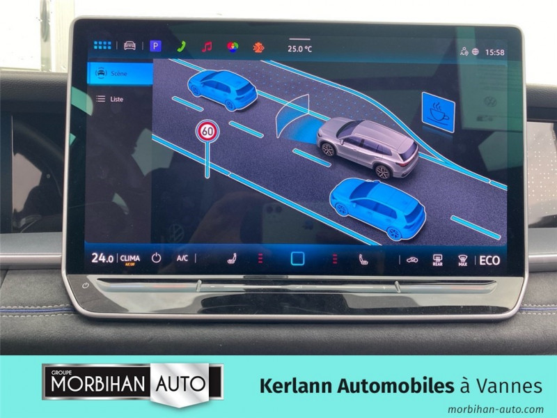 2 interfaces USB C à l'AV et prise 12 V dans la console centrale / 2 prises de chargement USB-C dans la console centrale AR, capacité de charge jusqu'à 45 W / 5 places assises / 8 HP / Airbag conducteur et passager AV avec désactivation de l'airbag du passager AV / Airbags de tête pour passagers AV et AR / Airbags rideaux et latéraux à l'AV et à l'AR, airbag central / Alarme antivol avec protection volumétrique / Allumage automatique des projecteurs avec feux de jour à LED et fonction "Coming/Leaving Home" / App-Connect sans fil / Appuie-tête à sécurité optimisée AV / Appui lombaire, réglage pneumatique des 2 côtés / Assistant aux manoeuvres de stationnement "Park Assist Pro" / Assistant de freinage d'urgence Front Assist avec système de détection des piétons et cyclistes / Assistant de maintien de voie Lane Assist / Assistant d'intersection: système de surveillance périmétrique des intersections Ce système freine automatiquement le véhicule en cas d'urgence lors d'une intersection / Avertissement de sortie de véhicule lorsque le conducteur veut sortir du véhicule mais qu'un cycliste ou véhicule s'approche par derrière, le conducteur est averti (le témoin d'aide au changement de voie s'allume sur le rétroviseur, un signal sonore est émis et l'éclairage de la porte passe au rouge) / Badge "eHybrid" sur le hayon à l'AR du véhicule / Bandeau lumineux à l'AV et à l'AR / Banquette AR coulissante et dossier divisés, rabattables / Blocs de feux AR à LED 3d / Boîtiers de rétroviseurs extérieurs et poignées de porte dans la teinte du véhicule / Câble de recharge pour borne domestique Wallbox ou borne publique compatible (11 kW) (mode 3, type 2/type 2) / Câble de recharge pour prise de courant domestique (1.8 kW) (mode 2, type 2) / Ciel de toit Noir Titane / Commande vocale IDA / Détection d?angles morts "Side Assist" avec assistance de sortie de stationnement / Déverrouillage à distance pour le dossier de banquette AR / Dispositif start/stop / Drive Experience Control : Sélecteur de profil de conduite avec écran OLED tactile Permet d?ajuster le volume, le profil de conduite ainsi que les, «Atmosphères», Appuyer sur le sélecteur pour afficher les profils de conduite, passez votre doigt sur l?écran tactile pour basculer sur le choix des ?Atmosphères?, Des ?Atmosphères? sont déja paramétrées dans le véhicule mais vous pouvez créer vos propres atmosphères en définissant une playlist, un affichage Digital Cockpit, un éclairage d?ambiance, un niveau sonore et une tonalité / Driving Experience Control : réglage du volume et sélection du profil de conduite / Eclairage d'ambiance étendu / Eclairage périmétrique avec projection de logo / Ecrous antivol avec protection antivol étendue / Feux de braquage et éclairage tous temps / Frein de stationnement électronique y compris fonction Auto Hold / Générateur de son à basse vitesse "e-sound" / Hayon à ouverture pilotée par capteurs et fermeture électrique différée, avec déverrouillage à distance / Interface Bluetooth pour portable / Interface téléphonique "Comfort" avec fonction de chargement inductive pour 2 téléphones avec compartiment réfrigéré / Jantes en alliage léger 19" "Coventry" 8,5Jx19", pneus auto-colmatants 255/45 R19 / Jantes en alliage léger 20" "Leeds" 8Jx20", pneus auto-colmatants 255/40 R20 / Light Assist : Activation ou désactivation des feux de route en fonction des sources lumineuses en présence (dès 60 km/h) / Logo éclairé l'AV et à l'AR / Miroirs de courtoisie éclairés dans les pare-soleil / Oeillets de retenue ISOFIX pour sièges pour enfants sur sièges AR extérieurs et sur siège passager AV, compatibles i-Size / Pack d'aides à la conduite 'IQ.DRIVE' Système de vision périmétrique Area view, Assistant de conduite semi-autonome 'Travel Assist', Protection proactive des occupants / Pack Hiver Plus / Pack intérieur 5 places (supprime la 3ème rangée de sièges) / Pack R-Line extérieur / Pédalier en acier inoxydable / Plancher de coffre / Prise 12V dans le coffre à bagages / Projecteurs IQ.LIGHT HD - Matrix LED: Eclairage à technologie LED avec adaptation dynamique du faisceau lumineux en fonction des sources lumineuses, Projecteurs AV matriciels à LED avec feux de jour à LED et clignotants défilants, Feux AR LED avec clignotants AR défilants, Bandeau lumineux à l?AV et à l?AR, Réglage dynamique du site des phares, Dynamic Light Assist sans lave-phare (Régulation du faisceau lumineux permettant un usage permanent des feux de route tout en préservant les zones qui risquent d'éblouir les autres automobilistes (à partir de 60 km/h)) / Projecteurs LED Plus (projecteurs à LED avec feux de jour à LED, feux antibrouillard intégrés, régulation des feux de route 'Light Assist', éclairage statique d'intersection) / Rampes de pavillon en argent anodisé / Rétroviseur intérieur à réglage jour/nuit automatique / Rétroviseurs extérieurs avec fonction mémoire / Sellerie en Tissu et Microfleece "ArtVelours" / Service d'appel d'urgence eCall / Seuils de portes AV en Aluminium / Sièges AV avec fonction massage avec réglage lombaire pneumatique quatres points et fonction de massage pneumatique par trois points de pression / Sièges AV réglables en hauteur, siège ergoActive du côté conducteur / Sièges Sport à l'AV avec appuie-tête intégré / Stores pare-soleil pour vitres AR / Suppression siège passager rabattable / Système Audio & Infotainment Ready 2 Discover avec Services de streaming et radio via Internet via carte eSIM intégrée / Système de détection de la signalisation routière / Système de fermeture et de démarrage sans clé«Keyless Access» / Système de suspension DCC Pro: Le contrôle électronique actif réagit en permanence a l?état de la route et a la situation de conduite et prend en compte la direction, le freinage et l?accélération, L?amortissement idéal est calculé pour chaque roue, 