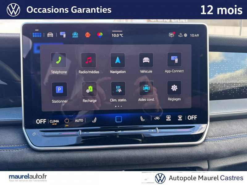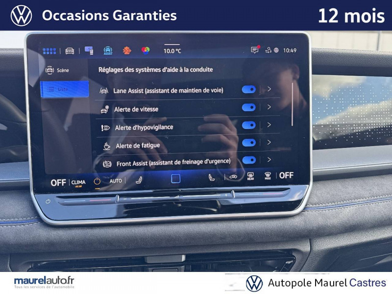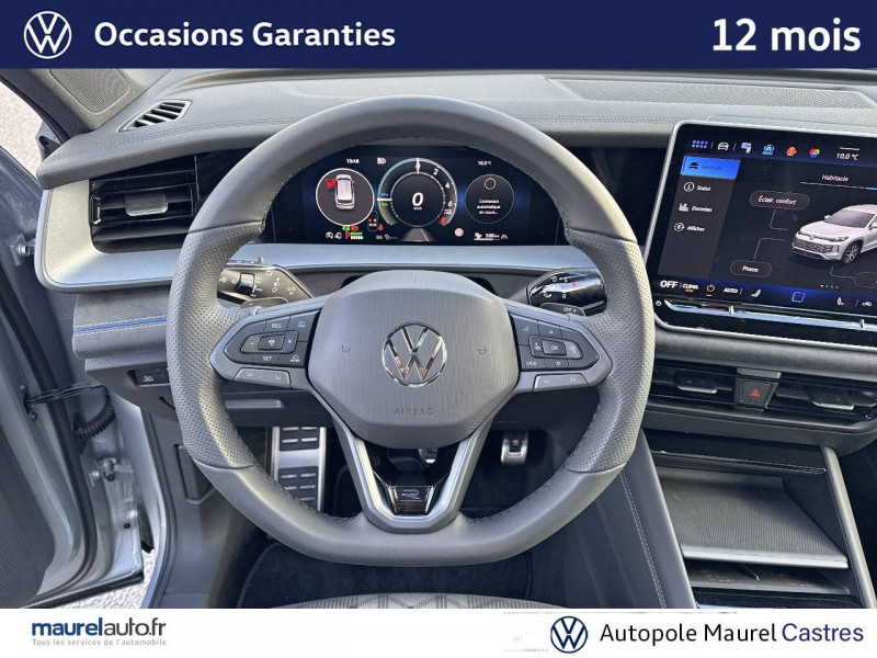 Allumage automatique des projecteurs avec feux de jour à LED et fonction "Coming/Leaving Home" / Assistant aux manoeuvres de stationnement "Park Assist Pro" / Assistant d'intersection: système de surveillance périmétrique des intersections. Ce système freine automatiquement le véhicule en cas d'urgence lors d'une intersection / Avertissement de sortie de véhicule: lorsque le conducteur veut sortir du véhicule mais qu'un cycliste ou véhicule s'approche par derrière, le conducteur est averti (le témoin d'aide au changement de voie s'allume sur le rétroviseur, un signal sonore est émis et l'éclairage de la porte passe au rouge) / Blocs de feux AR à LED 3D / Boîte de vitesse automatique (DSG6) / Drive Experience Control: Sélecteur de profil de conduite avec écran OLED tactile - Permet d'ajuster le volume, le profil de conduite ainsi que les "Atmosphères" - Appuyer sur le sélecteur pour afficher les profils de conduite, passez votre doigt sur l'écran tactile pour basculer sur le choix des "Atmosphères" - Des "Atmosphères" sont déja paramétrées dans le véhicule mais vous pouvez créer vos propres atmosphères en définissant une playlist, un affichage Digital Cockpit, un éclairage d'ambiance, un niveau sonore et une tonalité / Détection d'angles morts "Side Assist" avec assistance de sortie de stationnement / Frein de stationnement électronique y compris fonction Auto Hold / Jantes en alliage léger 19" "Coventry" 8,5Jx19", pneus auto-colmatants 255/45 R19 / Light Assist: Activation ou désactivation automatique des feux de route en fonction des sources lumineuses en présence (dès 60 km/h) / Pack intérieur 5 places - Suppression de la 3ème rangée de sièges / Pack Intérieur/Extérieur R-Line / Projecteurs LED Plus (projecteurs à LED avec feux de jour à LED, feux antibrouillard intégrés, régulation des feux de route "Light Assist", éclairage statique d'intersection) / Rétroviseur intérieur à réglage jour/nuit automatique / Seuils de portes AV en aluminium / Volant sport multifonction en cuir, avec palettes / 2 interfaces USB-C AV et prise 12V dans la console centrale / 2 prises de chargement USB-C dans la console centrale AR, capacité de charge jusqu'à 45W / 5 places assises / 8 HP / Airbag conducteur et passager AV avec désactivation de l'airbag du passager AV / Airbags de tête pour passagers AV/AR / Airbags rideaux et latéraux AV/AR, airbag central / Alarme antivol avec protection volumétrique / App-Connect sans fil - affichage et contrôle via l'écran tactile de la voiture, du contenu, des fonctions et des applications compatibles présents sur le Smartphone (compatibilité avec les systèmes Apple CarPlay, Apple CarPlay sans fil, Android Auto, MirrorLink). Seuls les contenus validés et utilisables en «main libre» peuvent fonctionner. / Appui lombaire, réglage pneumatique des 2 côtés / Appuie-tête à sécurité optimisée AV / ASR / Assistant de freinage d'urgence Front Assist avec système de détection des piétons et cyclistes / Assistant de maintien sur la voie Lane Assist / Badge "eHybrid" sur le hayon à l'AR du véhicule / Bandeau lumineux AV/AR / Banquette AR coulissante et dossier divisés, rabattables / Boîtiers de rétroviseurs extérieurs et poignées de porte dans la teinte du véhicule / Ciel de pavillon Noir Titane / Commande vocale IDA / Câble de recharge pour borne domestique Wallbox ou borne publique compatible (11kW) (mode 3, type 2/type 2) / Câble de recharge pour prise de courant domestique (1,8kW) (mode 2, type 2) / Dispositif start/stop / Double chargeur à induction / Déverrouillage à distance pour le dossier de banquette AR / Eclairage d'ambiance 10 couleurs / Eclairage d'ambiance étendu / Eclairage périmétrique avec projection de logo / Ecrous antivol avec protection antivol étendue / Feux de braquage et éclairage tous temps / Garantie constructeur de 2 ans kilométrage illimité / Générateur de son à basse vitesse "e-sound" / Hayon à ouverture pilotée par capteurs et fermeture électrique différée, avec déverrouillage à distance / Interface Bluetooth pour portable / Interface téléphonique "Comfort" avec fonction de chargement inductive pour 2 téléphones avec compartiment réfrigéré / Logo éclairé AV/AR / Miroirs de courtoisie éclairés dans les pare-soleil / Oeillets de retenue ISOFIX pour sièges pour enfants sur sièges AR extérieurs et sur siège passager AV, compatibles i-Size / Plancher de coffre / Prise 12V dans le coffre à bagages / Pédalier en acier inoxydable / Rampes de pavillon en argent anodisé / Régulateur de vitesse adaptatif et prédictif ACC avec limiteur de vitesse / Rétroviseurs extérieurs à réglage, rabattement et dégivrage électriques, avec fonction mémoire / Service d'appel d'urgence e-Call / Sièges AV avec fonction massage avec réglage lombaire pneumatique 4 points et fonction de massage pneumatique par 3 points de pression / Sièges AV réglables en hauteur, siège ergoActive du côté conducteur / Sièges AV Sport avec appuie-tête intégré / Stores pare-soleil pour vitres AR / Système Audio & Infotainment "Ready 2 Discover" avec "Services de streaming et radio via Internet" via carte eSIM intégrée / Système de détection de la signalisation routière / Système de fermeture et de démarrage sans clé "Keyless Access" / Système de suspension DCC Pro: Le contrôle électronique actif réagit en permanence a l'état de la route et à la situation de conduite et prend en compte la direction, le freinage et l'accélération - L'amortissement idéal est calculé pour chaque roue, et ajusté par les amortisseurs en quelques fractions de seconde. Le conducteur a la possibilité de personnaliser le systeme DCC sur des réglages précis, de très confortable a très sportif - Un confort de conduite optimal, une dynamique de conduite exceptionnelle et un sentiment de sécurité accru sur des chaussées en mauvais état / Tableau de bord Digital