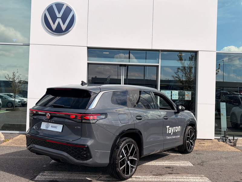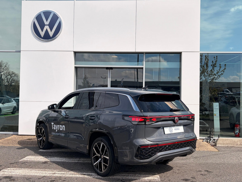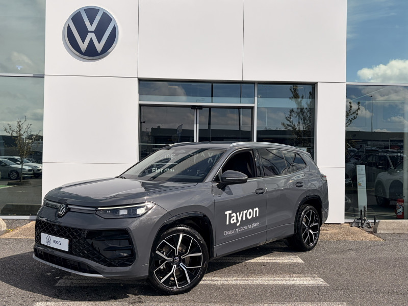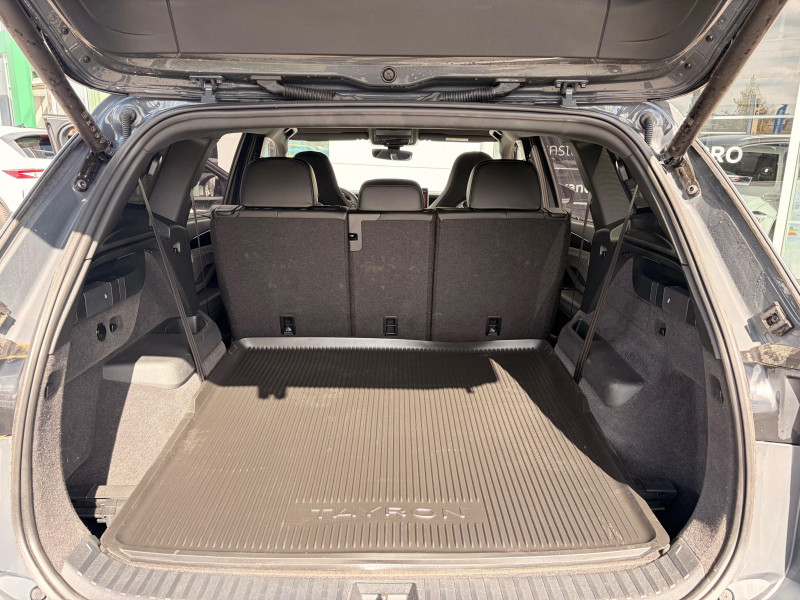 Allumage automatique des projecteurs avec feux de jour à LED et fonction "Coming/Leaving Home" / Assistant aux manoeuvres de stationnement "Park Assist Pro" / Assistant d'intersection: système de surveillance périmétrique des intersections Ce système freine automatiquement le véhicule en cas d'urgence lors d'une intersection / Avertissement de sortie de véhicule lorsque le conducteur veut sortir du véhicule mais qu'un cycliste ou véhicule s'approche par derrière, le conducteur est averti (le témoin d'aide au changement de voie s'allume sur le rétroviseur, un signal sonore est émis et l'éclairage de la porte passe au rouge) / Blocs de feux AR à LED 3D / Drive Experience Control: Sélecteur de profil de conduite avec écran OLED tactile Permet d'ajuster le volume, le profil de conduite ainsi que les, «Atmosphères», Appuyer sur le sélecteur pour afficher les profils de conduite, passez votre doigt sur l'écran tactile pour basculer sur le choix des ?Atmosphères', Des ?Atmosphères' sont déja paramétrées dans le véhicule mais vous pouvez créer vos propres atmosphères en définissant une playlist, un affichage Digital Cockpit, un éclairage d'ambiance, un niveau sonore et une tonalité / Détection d'angles morts "Side Assist" avec assistance de sortie de stationnement / Frein de stationnement électronique y compris fonction Auto Hold / Jantes en alliage léger 19" "Coventry" 8,5Jx19", pneus auto-colmatants 255/45 R19 / Pack R-Line extérieur / Projecteurs LED Plus (projecteurs à LED avec feux de jour à LED, feux antibrouillard intégrés, régulation des feux de route 'Light Assist', éclairage statique d'intersection) / Rétroviseur intérieur à réglage jour/nuit automatique / Seuils de portes AV en Aluminium / Système Navigation & Infotainment "Discover Media" / Volant sport multifonction en cuir, avec palettes / 2 interfaces USB C à l'AV et prise 12 V dans la console centrale / 2 prises de chargement USB-C dans la console centrale AR, capacité de charge jusqu'à 45 W / 7 places assises / 8 HP / Airbag conducteur et passager AV avec désactivation de l'airbag du passager AV / Airbags de tête pour passagers AV et AR / Airbags rideaux et latéraux à l'AV et à l'AR, airbag central / Alarme antivol avec protection volumétrique / App-Connect sans fil / Appui lombaire, réglage pneumatique des 2 côtés / Appuie-tête à sécurité optimisée AV / Assistant de freinage d'urgence Front Assist avec système de détection des piétons et cyclistes / Assistant de maintien de voie Lane Assist / Bandeau lumineux à l'AV et à l'AR / Banquette AR coulissante et dossier divisés, rabattables / Boîtiers de rétroviseurs extérieurs et poignées de porte dans la teinte du véhicule / Ciel de toit Noir Titane / Commande vocale IDA / Dispositif start/stop / Driving Experience Control: réglage du volume et sélection du profil de conduite / Déverrouillage à distance pour le dossier de banquette AR / Eclairage d'ambiance étendu / Eclairage périmétrique avec projection de logo / Ecrous antivol avec protection antivol étendue / Feux de braquage et éclairage tous temps / Hayon à ouverture pilotée par capteurs et fermeture électrique différée, avec déverrouillage à distance / Interface Bluetooth pour portable / Interface téléphonique "Comfort" avec fonction de chargement inductive pour 2 téléphones avec compartiment réfrigéré / Light Assist : Activation ou désactivation des feux de route en fonction des sources lumineuses en présence (dès 60 km/h) / Logo éclairé l'AV et à l'AR / Miroirs de courtoisie éclairés dans les pare-soleil / Oeillets de retenue ISOFIX pour sièges pour enfants sur sièges AR extérieurs et sur siège passager AV, compatibles i-Size / Plancher de coffre / Prise 12V dans le coffre à bagages / Pédalier en acier inoxydable / Rampes de pavillon en argent anodisé / Rétroviseurs extérieurs avec fonction mémoire / Service d'appel d'urgence eCall / Sièges AV avec fonction massage avec réglage lombaire pneumatique quatres points et fonction de massage pneumatique par trois points de pression / Sièges AV réglables en hauteur, siège ergoActive du côté conducteur / Sièges Sport à l'AV avec appuie-tête intégré / Stores pare-soleil pour vitres AR / Suppression siège passager rabattable / Système Audio & Infotainment Ready 2 Discover avec Services de streaming et radio via Internet via carte eSIM intégrée / Système de détection de la signalisation routière / Système de fermeture et de démarrage sans clé«Keyless Access» / Tableau de bord Digital Cockpit 10" / Tapis de sol en textile / Technologie Car2X le Tayron peut communiquer avec d'autres véhicules par Wi-Fi (autres usagers de la route, véhicules de chantier ou dépannage) pour avertir le conducteur et transmettre ces avertissements à d'autres véhicules équipés de la fonction Car2X