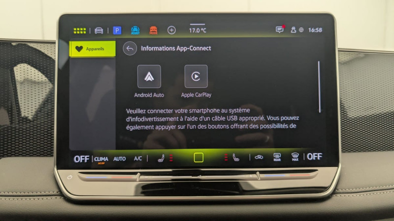 Interface Bluetooth pour téléphone portable / Sellerie en tissu / Système Navigation & Infotainment "Discover Media" / Rétroviseur intérieur à réglage jour/nuit automatique / Allumage automatique des projecteurs avec feux de jour à LED et fonction "Coming/Leaving Home" / Volant multifonction cuir avec palettes au volant / Light Assist: Activation ou désactivation automatique des feux de route en fonction des sources lumineuses en présence (dès 60 km/h) / App-Connect sans fil / Assistant de maintien sur la voie Lane Assist / Assistant de freinage d'urgence Front Assist avec système de détection des piétons et cyclistes / Kit de crevaison - Compresseur 12V et produit de colmatage des pneus / Dispositif start/stop / Frein de stationnement électronique y compris fonction Auto Hold / Système de détection de la signalisation routière / Airbag conducteur et passager AV avec désactivation de l'airbag du passager AV / Eclairage d'ambiance 10 couleurs / Tableau de bord Digital Cockpit 10" / Climatisation "Air Care Climatronic" 3 zones / Détection d'angles morts "Side Assist" avec assistance de sortie de stationnement / Interface téléphonique "Comfort" avec fonction de chargement inductive pour 2 téléphones avec compartiment réfrigéré / Airbags rideaux et latéraux AV/AR, airbag central / Oeillets de retenue ISOFIX pour sièges pour enfants sur sièges AR extérieurs et sur siège passager AV, compatibles i-Size / 2 prises USB-C à l'AV, et prise 12 V dans la console centrale / Prise 12V dans le coffre à bagages / 2 prises de chargement USB-C dans la console centrale AR, capacité de charge jusqu'à 45W / Appui lombaire, réglage pneumatique des 2 côtés / Déverrouillage à distance pour le dossier de banquette AR / Commande vocale IDA / Drive Experience Control: Sélecteur de profil de conduite avec écran OLED tactile - Permet d'ajuster le volume, le profil de conduite ainsi que les "Atmosphères" - Appuyer sur le sélecteur pour afficher les profils de conduite, passez votre doigt sur l'écran tactile pour basculer sur le choix des "Atmosphères" - Des "Atmosphères" sont déja paramétrées dans le véhicule mais vous pouvez créer vos propres atmosphères en définissant une playlist, un affichage Digital Cockpit, un éclairage d'ambiance, un niveau sonore et une tonalité / Plancher de coffre / Assistant d'intersection: système de surveillance périmétrique des intersections. Ce système freine automatiquement le véhicule en cas d'urgence lors d'une intersection / Avertissement de sortie de véhicule: lorsque le conducteur veut sortir du véhicule mais qu'un cycliste ou véhicule s'approche par derrière, le conducteur est averti (le témoin d'aide au changement de voie s'allume sur le rétroviseur, un signal sonore est émis et l'éclairage de la porte passe au rouge) / Dossier de siège passager AV entièrement rabattable / / Véhicules équivalents: 3008, Q5