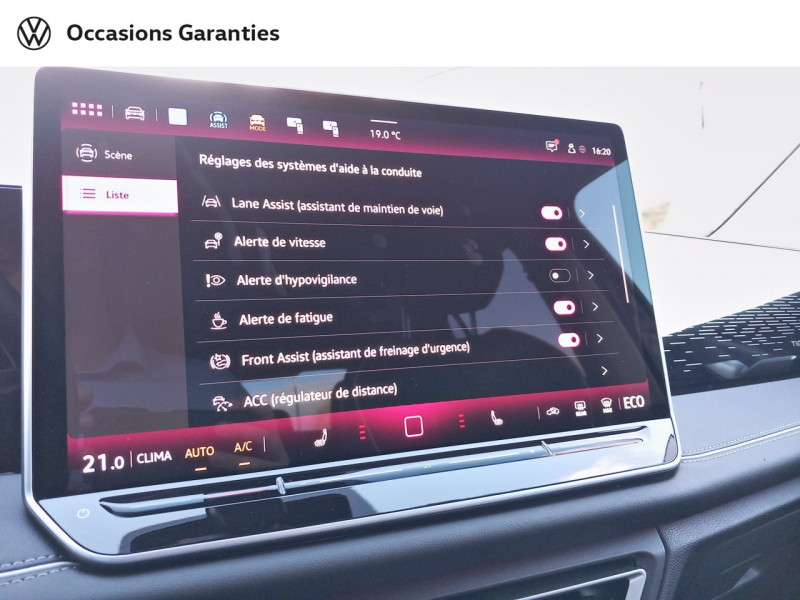 Allumage automatique des projecteurs avec feux de jour à LED et fonction "Coming/Leaving Home" / Assistant d'intersection: système de surveillance périmétrique des intersections. Ce système freine automatiquement le véhicule en cas d'urgence lors d'une intersection / Avertissement de sortie de véhicule: lorsque le conducteur veut sortir du véhicule mais qu'un cycliste ou véhicule s'approche par derrière, le conducteur est averti (le témoin d'aide au changement de voie s'allume sur le rétroviseur, un signal sonore est émis et l'éclairage de la porte passe au rouge) / Blocs de feux AR à LED 3D / Climatisation "Air Care Climatronic" 3 zones / Drive Experience Control: Sélecteur de profil de conduite avec écran OLED tactile - Permet d'ajuster le volume, le profil de conduite ainsi que les "Atmosphères" - Appuyer sur le sélecteur pour afficher les profils de conduite, passez votre doigt sur l'écran tactile pour basculer sur le choix des "Atmosphères" - Des "Atmosphères" sont déja paramétrées dans le véhicule mais vous pouvez créer vos propres atmosphères en définissant une playlist, un affichage Digital Cockpit, un éclairage d'ambiance, un niveau sonore et une tonalité / Frein de stationnement électronique y compris fonction Auto Hold / Jantes en alliage léger 18" "Napoli" 7.5Jx18", pneus auto-colmatants 235/55 R18 / Projecteurs IQ.LIGHT HD - Matrix LED: Eclairage à technologie LED avec adaptation dynamique du faisceau lumineux en fonction des sources lumineuses en présence - Projecteurs AV matriciels à LED avec feux de jour à LED et clignotants défilants - Feux AR LED avec clignotants AR défilants - Bandeau lumineux AV/AR - Réglage dynamique du site des phares - Dynamic Light Assist sans lave-phare (Régulation du faisceau lumineux permettant un usage permanent des feux de route tout en préservant les zones qui risquent d'éblouir les autres automobilistes (à partir de 60 km/h)) / Rétroviseur intérieur à réglage jour/nuit automatique / Seuils de portes AV en aluminium / Système Navigation & Infotainment "Discover Media" / Volant multifonction cuir avec palettes au volant / 2 prises de chargement USB-C dans la console centrale AR, capacité de charge jusqu'à 45W / 2 prises USB-C à l'AV, et prise 12 V dans la console centrale / 8 HP / Airbag conducteur et passager AV avec désactivation de l'airbag du passager AV / Airbags de tête pour passagers AV/AR avec Airbags latéraux AV / Airbags rideaux et latéraux AV/AR, airbag central / App-Connect sans fil / Appui lombaire, réglage pneumatique des 2 côtés / Appuie-tête à sécurité optimisée AV / Assistant de freinage d'urgence Front Assist avec système de détection des piétons et cyclistes / Assistant de maintien sur la voie Lane Assist / Badge "eHybrid" sur le hayon à l'AR du véhicule / Bandeau lumineux AV/AR avec logo Volkswagen rétroéclairé / Banquette AR coulissante et dossier divisés, rabattables / Boitiers des rétroviseurs extérieurs et poignées de porte dans la teinte du véhicule / Clignotant séquentiel / Commande vocale IDA / Câble de recharge pour borne domestique Wallbox ou borne publique compatible (11kW) (mode 3, type 2/type 2) / Câble de recharge pour prise de courant domestique (1,8 kW) (mode 2, type 2) / Dispositif start/stop / Dossier de siège passager AV entièrement rabattable / Déverrouillage à distance pour le dossier de banquette AR / Eclairage d'ambiance étendu à 30 couleurs / Eclairage périmétrique avec projection de logo / Ecrous antivol avec protection antivol étendue / Feux de braquage et éclairage tous temps / Générateur de son à basse vitesse "e-sound" / Interface Bluetooth pour téléphone portable / Interface téléphonique "Comfort" avec fonction de chargement inductive pour 2 téléphones avec compartiment réfrigéré / Kit de crevaison - Compresseur 12V et produit de colmatage des pneus / Miroirs de courtoisie éclairés dans les pare-soleils / Oeillets de retenue ISOFIX pour sièges pour enfants sur sièges AR extérieurs et sur siège passager AV, compatibles i-Size / Plancher de coffre / Prise 12V dans le coffre à bagages / Rampes de pavillon anodisées / Régulation dynamique des feux de route "Dynamic Light Assist" / Service d'appel d'urgence e-Call / Siège conducteur ErgoActive / Sièges AV avec réglage lombaire pneumatique quatre points / Sièges AV massant avec fonction massage et fonction de massage pneumatique par trois points de pression / Suppression siège passager rabattable / Système de détection de la signalisation routière / Système de suspension DCC Pro: Le contrôle électronique actif réagit en permanence a l'état de la route et à la situation de conduite et prend en compte la direction, le freinage et l'accélération - L'amortissement idéal est calculé pour chaque roue, et ajusté par les amortisseurs en quelques fractions de seconde. Le conducteur a la possibilité de personnaliser le systeme DCC sur des réglages précis, de très confortable a très sportif - Un confort de conduite optimal, une dynamique de conduite exceptionnelle et un sentiment de sécurité accru sur des chaussées en mauvais état / Tableau de bord Digital Cockpit 10" / Tapis de sol en textile / Trappe de recharge AV gauche du véhicule / Verrouillage centralisé, avec radiocommande et 2 clés pliantes