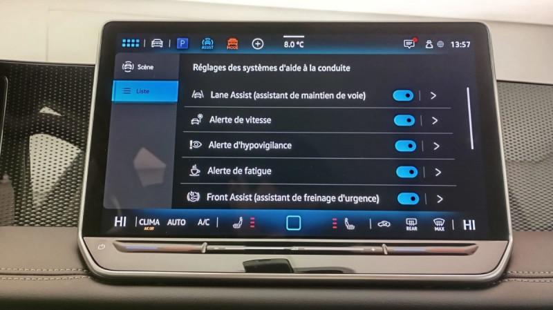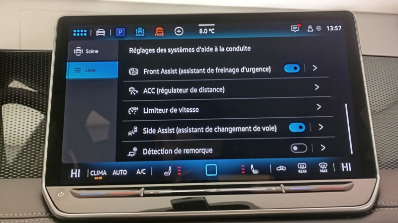 Interface Bluetooth pour téléphone portable / Airbag de tête pour passagers AV et AR avec Airbags latéraux AV / Sellerie en tissu / Rétroviseur intérieur à réglage jour/nuit automatique / Allumage automatique des projecteurs avec feux de jour à LED et fonction "Coming/Leaving Home" / Volant multifonction cuir avec palettes au volant / Light Assist : Activation ou désactivation des feux de route en fonction des sources lumineuses en présence (dès 60 km/h) / App-Connect sans fil / Assistant de maintien de voie Lane Assist / Assistant de freinage d'urgence Front Assist avec système de détection des piétons et cyclistes / Kit de crevaison: compresseur 12 V et produit de colmatage des pneus / Dispositif start/stop / Frein de stationnement électronique y compris fonction Auto Hold / Système de détection de la signalisation routière / Airbag conducteur et passager AV avec désactivation de l?airbag du passager AV / Eclairage d'ambiance - 10 couleurs / Tableau de bord Digital Cockpit 10" / Climatisation "Air Care Climatronic" 3 zones / Détection d?angles morts "Side Assist" avec assistance de sortie de stationnement / Airbags rideaux et latéraux à l'AV et à l'AR, airbag central / Oeillets de retenue ISOFIX pour sièges pour enfants sur sièges AR extérieurs et sur siège passager AV, compatibles i-Size / Appui lombaire, réglage pneumatique des 2 côtés / Drive Experience Control : Sélecteur de profil de conduite avec écran OLED tactile Permet d?ajuster le volume, le profil de conduite ainsi que les, «Atmosphères», Appuyer sur le sélecteur pour afficher les profils de conduite, passez votre doigt sur l?écran tactile pour basculer sur le choix des ?Atmosphères?, Des ?Atmosphères? sont déja paramétrées dans le véhicule mais vous pouvez créer vos propres atmosphères en définissant une playlist, un affichage Digital Cockpit, un éclairage d?ambiance, un niveau sonore et une tonalité / Assistant d'intersection: système de surveillance périmétrique des intersections Ce système freine automatiquement le véhicule en cas d'urgence lors d'une intersection / Avertissement de sortie de véhicule lorsque le conducteur veut sortir du véhicule mais qu'un cycliste ou véhicule s'approche par derrière, le conducteur est averti (le témoin d'aide au changement de voie s'allume sur le rétroviseur, un signal sonore est émis et l'éclairage de la porte passe au rouge) / Dossier du siège passager AV entièrement rabattable / / Véhicules équivalents: 3008, Q5