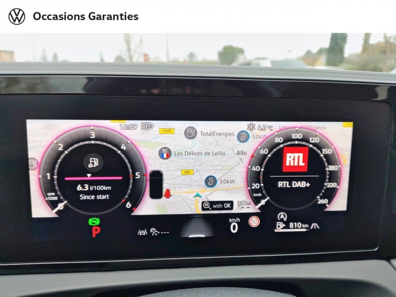 Allumage automatique des projecteurs avec feux de jour à LED et fonction "Coming/Leaving Home" / Assistant d'intersection: système de surveillance périmétrique des intersections. Ce système freine automatiquement le véhicule en cas d'urgence lors d'une intersection / Avertissement de sortie de véhicule: lorsque le conducteur veut sortir du véhicule mais qu'un cycliste ou véhicule s'approche par derrière, le conducteur est averti (le témoin d'aide au changement de voie s'allume sur le rétroviseur, un signal sonore est émis et l'éclairage de la porte passe au rouge) / Blocs de feux AR à LED 3D / Boîte de vitesse automatique (DSG7) / Climatisation "Air Care Climatronic" 3 zones / Drive Experience Control: Sélecteur de profil de conduite avec écran OLED tactile - Permet d'ajuster le volume, le profil de conduite ainsi que les "Atmosphères" - Appuyer sur le sélecteur pour afficher les profils de conduite, passez votre doigt sur l'écran tactile pour basculer sur le choix des "Atmosphères" - Des "Atmosphères" sont déja paramétrées dans le véhicule mais vous pouvez créer vos propres atmosphères en définissant une playlist, un affichage Digital Cockpit, un éclairage d'ambiance, un niveau sonore et une tonalité / Frein de stationnement électronique y compris fonction Auto Hold / Jantes en alliage léger 18" "Napoli" 7.5Jx18", pneus 235/55 R18 / Projecteurs IQ.LIGHT HD - Matrix LED: Eclairage à technologie LED avec adaptation dynamique du faisceau lumineux en fonction des sources lumineuses en présence - Projecteurs AV matriciels à LED avec feux de jour à LED et clignotants défilants - Feux AR LED avec clignotants AR défilants - Bandeau lumineux AV/AR - Réglage dynamique du site des phares - Dynamic Light Assist sans lave-phare (Régulation du faisceau lumineux permettant un usage permanent des feux de route tout en préservant les zones qui risquent d'éblouir les autres automobilistes (à partir de 60 km/h)) / Rétroviseur intérieur à réglage jour/nuit automatique / Seuils de portes AV en aluminium / Système de protection proactive des occupants fermeture automatique des vitres et du toit ouvrant et resserrage des ceintures en cas de détection d'un danger imminent / Système Navigation & Infotainment "Discover Media" / Volant multifonction cuir avec palettes au volant / 2 prises de chargement USB-C dans la console centrale AR, capacité de charge jusqu'à 45W / 2 prises USB-C à l'AV, et prise 12 V dans la console centrale / 8 HP / Airbag conducteur et passager AV avec désactivation de l'airbag du passager AV / Airbags de tête pour passagers AV/AR avec Airbags latéraux AV / Airbags rideaux et latéraux AV/AR, airbag central / Alarme antivol avec protection volumétrique / App-Connect sans fil / Appui lombaire, réglage pneumatique des 2 côtés / Appuie-tête à sécurité optimisée AV / Assistant de conduite semi-autonome Travel Assist combine le régulateur de distance ACC, l'assistant de maintien dans la voie Lane Assist, l'assistant au changement de voie Side Assist et l'Emergency Assist. Dans les limites inhérentes au systeme, le véhicule peut ainsi maintenir la distance que vous avez sélectionnée par rapport aux véhicules qui vous précedent et maintenir sur la position au centre de la voie / Assistant de freinage d'urgence Front Assist avec système de détection des piétons et cyclistes / Assistant de maintien sur la voie Lane Assist / Bandeau lumineux AV/AR avec logo Volkswagen rétroéclairé / Banquette AR coulissante et dossier divisés, rabattables / Boitiers des rétroviseurs extérieurs et poignées de porte dans la teinte du véhicule / Caméra ´Area View:´ Contrôlez votre environnement à 360° et les obstacles grâce à ses 4 caméras dont les images sont diffusées en temps réel sur votre système d'infotainment / Clignotant séquentiel / Commande vocale IDA / Contrôle de la traction (TCS) / Dispositif start/stop / Dossier de siège passager AV entièrement rabattable / Déverrouillage à distance pour le dossier de banquette AR / Eclairage d'ambiance étendu à 30 couleurs / Eclairage périmétrique avec projection de logo / Ecrous antivol avec protection antivol étendue / Feux de braquage et éclairage tous temps / Hayon à ouverture pilotée par capteurs et fermeture électrique différée, avec déverrouillage à distance / Interface Bluetooth pour téléphone portable / Interface téléphonique "Comfort" avec fonction de chargement inductive pour 2 téléphones avec compartiment réfrigéré / Kit de crevaison - Compresseur 12V et produit de colmatage des pneus / Miroirs de courtoisie éclairés dans les pare-soleils / Oeillets de retenue ISOFIX pour sièges pour enfants sur sièges AR extérieurs et sur siège passager AV, compatibles i-Size / Park Assist Pro avec fonction mémoire / Plancher de coffre / Prise 12V dans le coffre à bagages / Rampes de pavillon anodisées / Régulation dynamique des feux de route "Dynamic Light Assist" / Service d'appel d'urgence e-Call / Siège conducteur ErgoActive / Sièges AV avec réglage lombaire pneumatique quatre points / Sièges AV massant avec fonction massage et fonction de massage pneumatique par trois points de pression / Suppression siège passager rabattable / Système de détection de la signalisation routière / Système de fermeture et de démarrage sans clé "Keyless Access" / Tableau de bord Digital Cockpit 10" / Tapis de sol en textile / Verrouillage centralisé, avec radiocommande et 2 clés pliantes / Volant chauffant