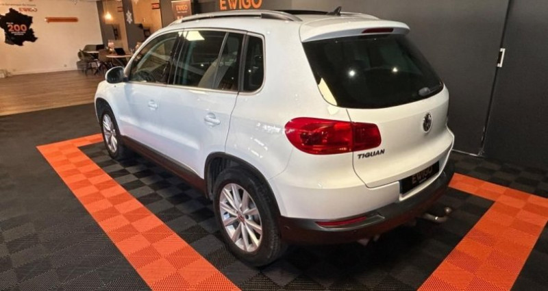 Volkswagen Tiguan 2.0 TDI 110 BLUEMOTION crossover, suv, blanc, 6 cv, 5 portes, première mise en circulation le 16/01/2015. - NOS SERVICES ET PRESTATIONS COMPLÉMENTAIRES - - Visite virtuelle : avant de vous déplacer, visualisez votre futur véhicule sous toutes ses coutures . Contactez-nous pour en voir plus ! - Extension de garantie jusqu'à 60 mois. - Solutions de Financement de 12 à 84 mois. - Livraison dans toute la France métropolitaine (sur devis). - Reprise possible de votre ancien véhicule. - Les informations délivrées par cette annonce sont non contractuelles et données à titre indicatif. Packs disponibles (véhicules éligibles au Label) - Pack Clés en Main - 691 € TTC(¹)(²) Démarches (hors carte grise) | 1/4 de carburant | Nettoyage First | Garantie 6 mois | Label inclus? - Pack Sérénité - 891 € TTC(¹)(²) Démarches (hors carte grise) | 1/2 de carburant | Nettoyage Confort | Garantie 12 mois | Label inclus? - Pack Prestige - 1.091 € TTC(¹)(²) Démarches (hors carte grise) | Plein complet | Nettoyage Prestige | Garantie 12 mois | Label inclus? + Surprise du chef - (¹) Les véhicules non éligibles au Label bénéficient de tarifs préférentiels. Veuillez contacter votre conseiller pour obtenir les conditions tarifaires applicables. (²) Tarif pour les véhicules deux roues motrices dont la valeur de vente est inférieure à 60 000 € TTC. - Véhicule visible sur rendez vous 5 places OPTIONS ET ÉQUIPEMENTS : Audio - Télécommunications : - Bluetooth - GPS - commandes vocales - radio numérique - système de navigation Conduite : - Boîte de vitesse manuelle - Frein de parking électrique - allumage automatique des feux - régulateur de vitesse Extérieur : - Capteurs d'aide au stationnement arrière - Capteurs d'aide au stationnement avant - attelage - jantes : aluminium - jantes alliage - rétroviseurs électriques - système d'aide au stationnement - toit ouvrant - toit ouvrant panoramique - toit ouvrant électrique Intérieur : - Volant alu/cuir - Porte gobelet avant - accoudoir central - banquette 1/3 - 2/3 - climatisation : multi zone - climatisation multi zone - direction assistée - fermeture centralisée - ordinateur de bord - verrouillage à distance - vitres surteintées - vitres électriques - volant réglable hauteur - volant réglable profondeur Pack : - Intérieur tissu - Tableau de bord cuir - GPS couleur - détecteur de lumière - nombre de rapports : 6 vitesses - volant multifonctions - volant réglable Sécurité : - Airbags - Antibrouillards avant - Aide au demarrage en pente - ESP - airbag coté passager - airbags latéraux - fixations ISOFIX - phares antibrouillard Autres équipements et informations : - Double des clés - Classe Crit'air : 2 - Phares AV de jour - Puissance kilowatt : 81 kw - dimension des jantes : 17 pouces - puissance réelle : 110 ch - émission CO2 : 138 g/km Référence annonce : d158809