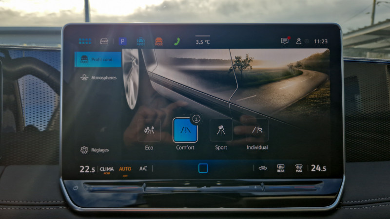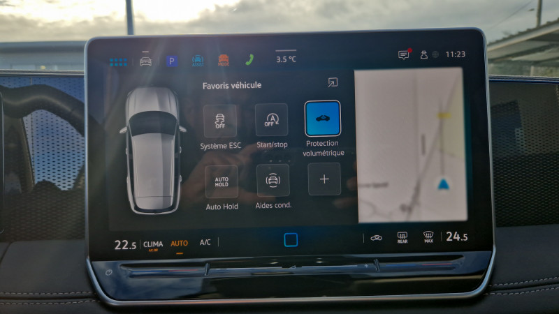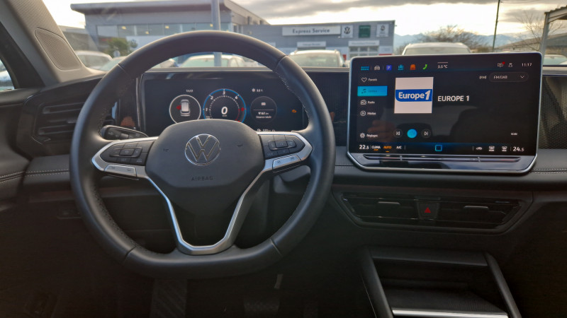 Allumage automatique des projecteurs avec feux de jour à LED et fonction "Coming/Leaving Home" / Assistant d'intersection: système de surveillance périmétrique des intersections. Ce système freine automatiquement le véhicule en cas d'urgence lors d'une intersection / Avertissement de sortie de véhicule: lorsque le conducteur veut sortir du véhicule mais qu'un cycliste ou véhicule s'approche par derrière, le conducteur est averti (le témoin d'aide au changement de voie s'allume sur le rétroviseur, un signal sonore est émis et l'éclairage de la porte passe au rouge) / Blocs de feux AR à LED 3D / Climatisation "Air Care Climatronic" 3 zones / Drive Experience Control: Sélecteur de profil de conduite avec écran OLED tactile - Permet d'ajuster le volume, le profil de conduite ainsi que les "Atmosphères" - Appuyer sur le sélecteur pour afficher les profils de conduite, passez votre doigt sur l'écran tactile pour basculer sur le choix des "Atmosphères" - Des "Atmosphères" sont déja paramétrées dans le véhicule mais vous pouvez créer vos propres atmosphères en définissant une playlist, un affichage Digital Cockpit, un éclairage d'ambiance, un niveau sonore et une tonalité / Détection d'angles morts "Side Assist" avec assistance de sortie de stationnement / Frein de stationnement électronique y compris fonction Auto Hold / Jantes en alliage léger 17" "Venezia" 7Jx17", pneus 215/65 R17 / Light Assist: Activation ou désactivation automatique des feux de route en fonction des sources lumineuses en présence (dès 60 km/h) / Projecteurs LED Plus (projecteurs à LED avec feux de jour à LED, feux antibrouillard intégrés, régulation des feux de route "Light Assist", éclairage statique d'intersection) / Rétroviseur intérieur à réglage jour/nuit automatique / Système Navigation & Infotainment "Discover Media" / Volant multifonction cuir avec palettes au volant / 2 prises de chargement USB-C dans la console centrale AR, capacité de charge jusqu'à 45W / 2 prises USB-C à l'AV, et prise 12 V dans la console centrale / 8 HP / Airbag conducteur et passager AV avec désactivation de l'airbag du passager AV / Airbags de tête pour passagers AV/AR avec Airbags latéraux AV / Airbags rideaux et latéraux AV/AR, airbag central / App-Connect sans fil / Appui lombaire, réglage pneumatique des 2 côtés / Appuie-tête à sécurité optimisée AV / Assistant de freinage d'urgence Front Assist avec système de détection des piétons et cyclistes / Assistant de maintien sur la voie Lane Assist / Bandeau lumineux AV/AR avec logo Volkswagen rétroéclairé / Banquette AR coulissante et dossier divisés, rabattables / Boitiers des rétroviseurs extérieurs et poignées de porte dans la teinte du véhicule / Commande vocale IDA / Dispositif start/stop / Dossier de siège passager AV entièrement rabattable / Déverrouillage à distance pour le dossier de banquette AR / Eclairage d'ambiance 10 couleurs / Eclairage périmétrique avec projection de logo / Ecrous antivol avec protection antivol étendue / Feux de braquage et éclairage tous temps / Interface Bluetooth pour téléphone portable / Interface téléphonique "Comfort" avec fonction de chargement inductive pour 2 téléphones avec compartiment réfrigéré / Kit de crevaison - Compresseur 12V et produit de colmatage des pneus / Miroirs de courtoisie éclairés dans les pare-soleils / Oeillets de retenue ISOFIX pour sièges pour enfants sur sièges AR extérieurs et sur siège passager AV, compatibles i-Size / Plancher de coffre / Prise 12V dans le coffre à bagages / Service d'appel d'urgence e-Call / Système de détection de la signalisation routière / Tableau de bord Digital Cockpit 10" / Tapis de sol en textile / Verrouillage centralisé, avec radiocommande et 2 clés pliantes