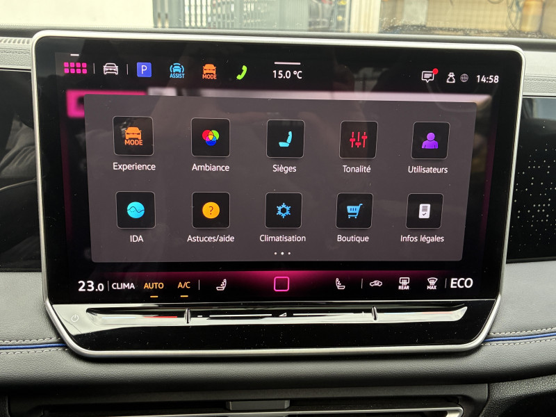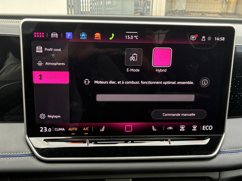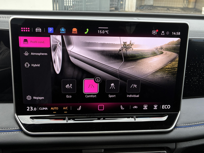 Allumage automatique des projecteurs avec feux de jour à LED et fonction "Coming/Leaving Home" / Assistant d'intersection: système de surveillance périmétrique des intersections. Ce système freine automatiquement le véhicule en cas d'urgence lors d'une intersection / Avertissement de sortie de véhicule: lorsque le conducteur veut sortir du véhicule mais qu'un cycliste ou véhicule s'approche par derrière, le conducteur est averti (le témoin d'aide au changement de voie s'allume sur le rétroviseur, un signal sonore est émis et l'éclairage de la porte passe au rouge) / Blocs de feux AR à LED 3D / Boîte de vitesse automatique (DSG6) / Climatisation "Air Care Climatronic" 3 zones / Drive Experience Control: Sélecteur de profil de conduite avec écran OLED tactile - Permet d'ajuster le volume, le profil de conduite ainsi que les "Atmosphères" - Appuyer sur le sélecteur pour afficher les profils de conduite, passez votre doigt sur l'écran tactile pour basculer sur le choix des "Atmosphères" - Des "Atmosphères" sont déja paramétrées dans le véhicule mais vous pouvez créer vos propres atmosphères en définissant une playlist, un affichage Digital Cockpit, un éclairage d'ambiance, un niveau sonore et une tonalité / Détection d'angles morts "Side Assist" avec assistance de sortie de stationnement / Frein de stationnement électronique y compris fonction Auto Hold / Jantes en alliage léger 19" "Coventry" 8.5Jx19", pneus 255/45 R19 / Pack R-Line extérieur / Projecteurs LED Plus (projecteurs à LED avec feux de jour à LED, feux antibrouillard intégrés, régulation des feux de route "Light Assist", éclairage statique d'intersection) / Pédalier en Aluminium / Rétroviseur intérieur à réglage jour/nuit automatique / Seuils de portes AV en aluminium / Système Navigation & Infotainment "Discover Media" / Volant multifonction cuir avec palettes au volant / 2 prises de chargement USB-C dans la console centrale AR, capacité de charge jusqu'à 45W / 2 prises USB-C à l'AV, et prise 12 V dans la console centrale / 8 HP / Airbag conducteur et passager AV avec désactivation de l'airbag du passager AV / Airbags de tête pour passagers AV/AR avec Airbags latéraux AV / Airbags rideaux et latéraux AV/AR, airbag central / App-Connect sans fil / Appui lombaire, réglage pneumatique des 2 côtés / Appuie-tête à sécurité optimisée AV / Assistant de freinage d'urgence Front Assist avec système de détection des piétons et cyclistes / Assistant de maintien sur la voie Lane Assist / Badge "eHybrid" sur le hayon à l'AR du véhicule / Bandeau lumineux AV/AR avec logo Volkswagen rétroéclairé / Banquette AR coulissante et dossier divisés, rabattables / Boitiers des rétroviseurs extérieurs et poignées de porte dans la teinte du véhicule / Ciel de pavillon Noir Titane / Commande vocale IDA / Contrôle de la traction (TCS) / Câble de recharge pour borne domestique Wallbox ou borne publique compatible (11kW) (mode 3, type 2/type 2) / Câble de recharge pour prise de courant domestique (1,8 kW) (mode 2, type 2) / Dossier de siège passager AV entièrement rabattable / Double chargeur à induction / Déverrouillage à distance pour le dossier de banquette AR / Eclairage d'ambiance étendu à 30 couleurs / Eclairage périmétrique avec projection de logo / Ecrous antivol avec protection antivol étendue / Feux de braquage et éclairage tous temps / Générateur de son à basse vitesse "e-sound" / Interface Bluetooth pour téléphone portable / Interface téléphonique "Comfort" avec fonction de chargement inductive pour 2 téléphones avec compartiment réfrigéré / Kit de crevaison - Compresseur 12V et produit de colmatage des pneus / Miroirs de courtoisie éclairés dans les pare-soleils / Oeillets de retenue ISOFIX pour sièges pour enfants sur sièges AR extérieurs et sur siège passager AV, compatibles i-Size / Ouverture et fermeture du coffre mains-libres "Easy Open/Easy Close" / Plancher de coffre / Prise 12V dans le coffre à bagages / Pédalier en acier inoxydable / Rampes de pavillon argent anodisées / Rétroviseurs extérieurs à réglage, rabattement et dégivrage électriques, avec fonction mémoire / Service d'appel d'urgence e-Call / Siège conducteur ErgoActive / Sièges AV avec réglage lombaire pneumatique quatre points / Sièges AV massant avec fonction massage et fonction de massage pneumatique par trois points de pression / Sièges AV Sport avec appui-tête intégré / Suppression siège passager rabattable / Système de détection de la signalisation routière / Système de suspension DCC Pro: Le contrôle électronique actif réagit en permanence a l'état de la route et à la situation de conduite et prend en compte la direction, le freinage et l'accélération - L'amortissement idéal est calculé pour chaque roue, et ajusté par les amortisseurs en quelques fractions de seconde. Le conducteur a la possibilité de personnaliser le systeme DCC sur des réglages précis, de très confortable a très sportif - Un confort de conduite optimal, une dynamique de conduite exceptionnelle et un sentiment de sécurité accru sur des chaussées en mauvais état / Tableau de bord Digital Cockpit 10" / Tapis de sol en textile / Trappe de recharge AV gauche du véhicule / Verrouillage centralisé, avec radiocommande et 2 clés pliantes